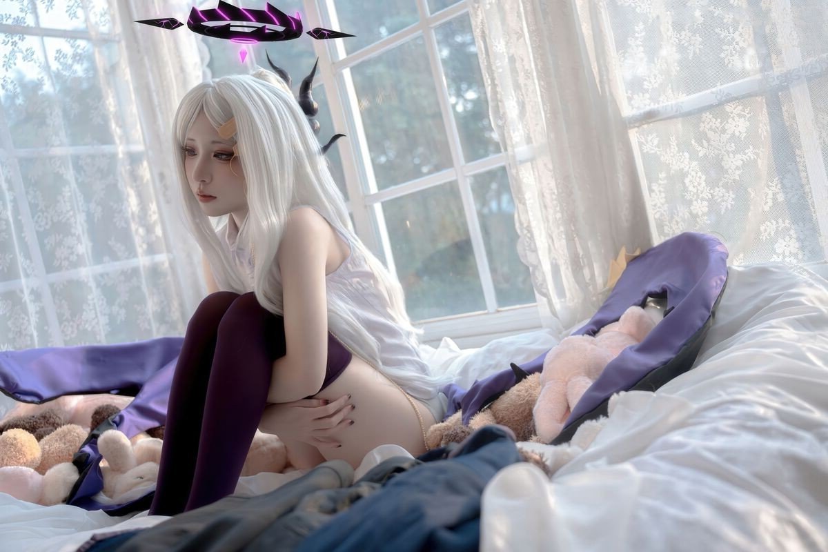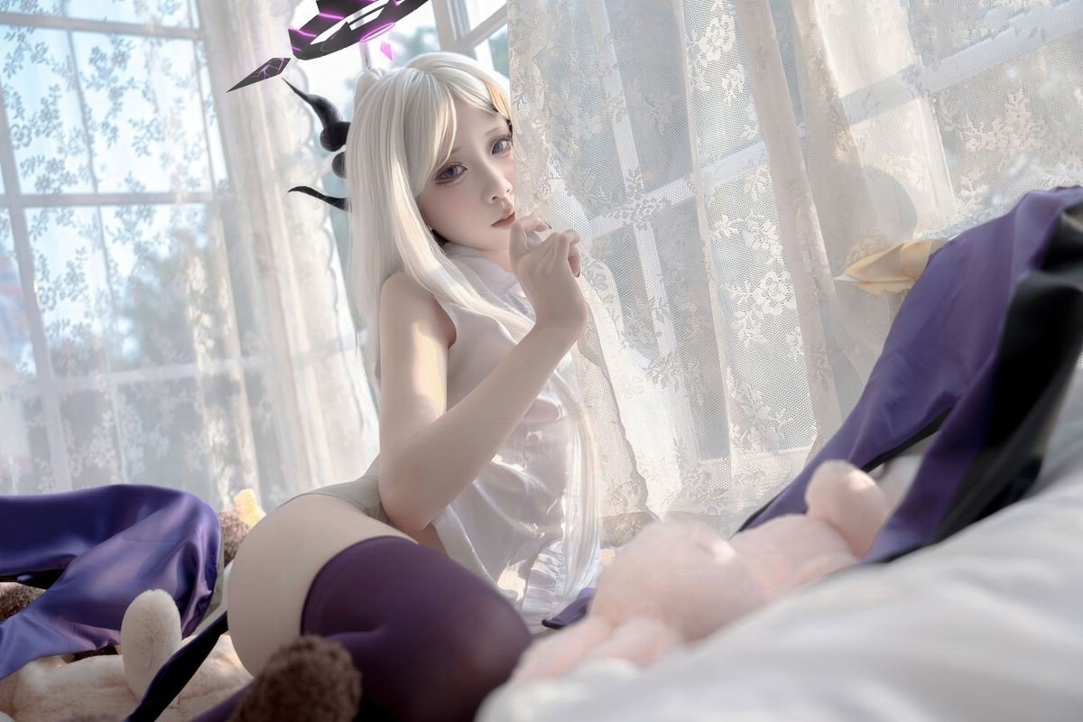 Immerse yourself in the captivating world of cosplay with Hina Jiao as she beautifully embodies Kyūma Sora in this alluring self-portrait collection. Dressed in a pristine white cheongsam adorned with intricate patterns, Hina Jiao radiates an elegant yet undeniably charming aura, perfectly capturing the essence of the character. Her gentle gaze, signature platinum blonde hair, and natural pose on the soft bedding create a picture of serene beauty. This photoshoot not only showcases meticulous attention to costume and makeup but also skillfully conveys emotion, making it impossible to look away. It is undoubtedly a remarkable piece of cosplay art, highlighting Hina Jiao's exceptional talent.#HinaJiao #Kyuma #Cosplay #Sora #Cheongsam