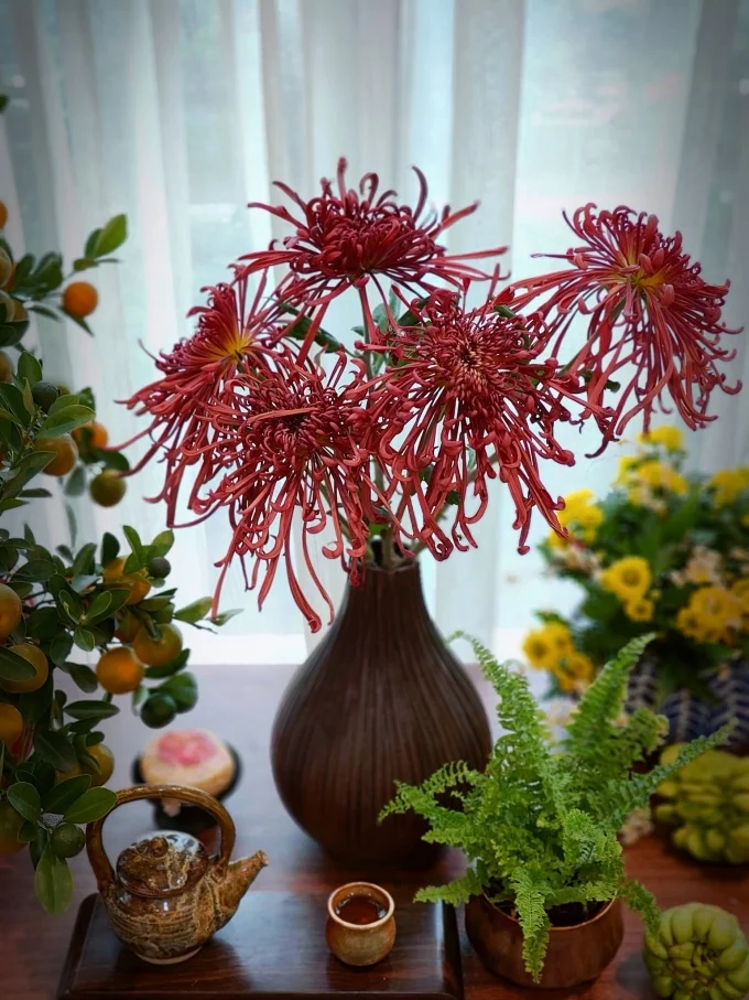 Discover the timeless elegance of Ancient Chrysanthemums, a floral heritage that brings a soul-stirring aesthetic to any home. In the heart of Hanoi, floral enthusiast Dao Ly reveals the secrets to keeping these vintage blooms vibrant for up to 25 days, transforming a simple bouquet into a masterpiece of longevity.The secret to a 'picture-perfect' arrangement starts with meticulous preparation. By carefully stripping the lower leaves and ensuring only clean stems touch the water, you prevent bacterial growth—the key to maintaining freshness for over three weeks. This variety is beloved not just for its unique twisted petals and muted, sophisticated palettes, but for its incredible durability during the festive season.