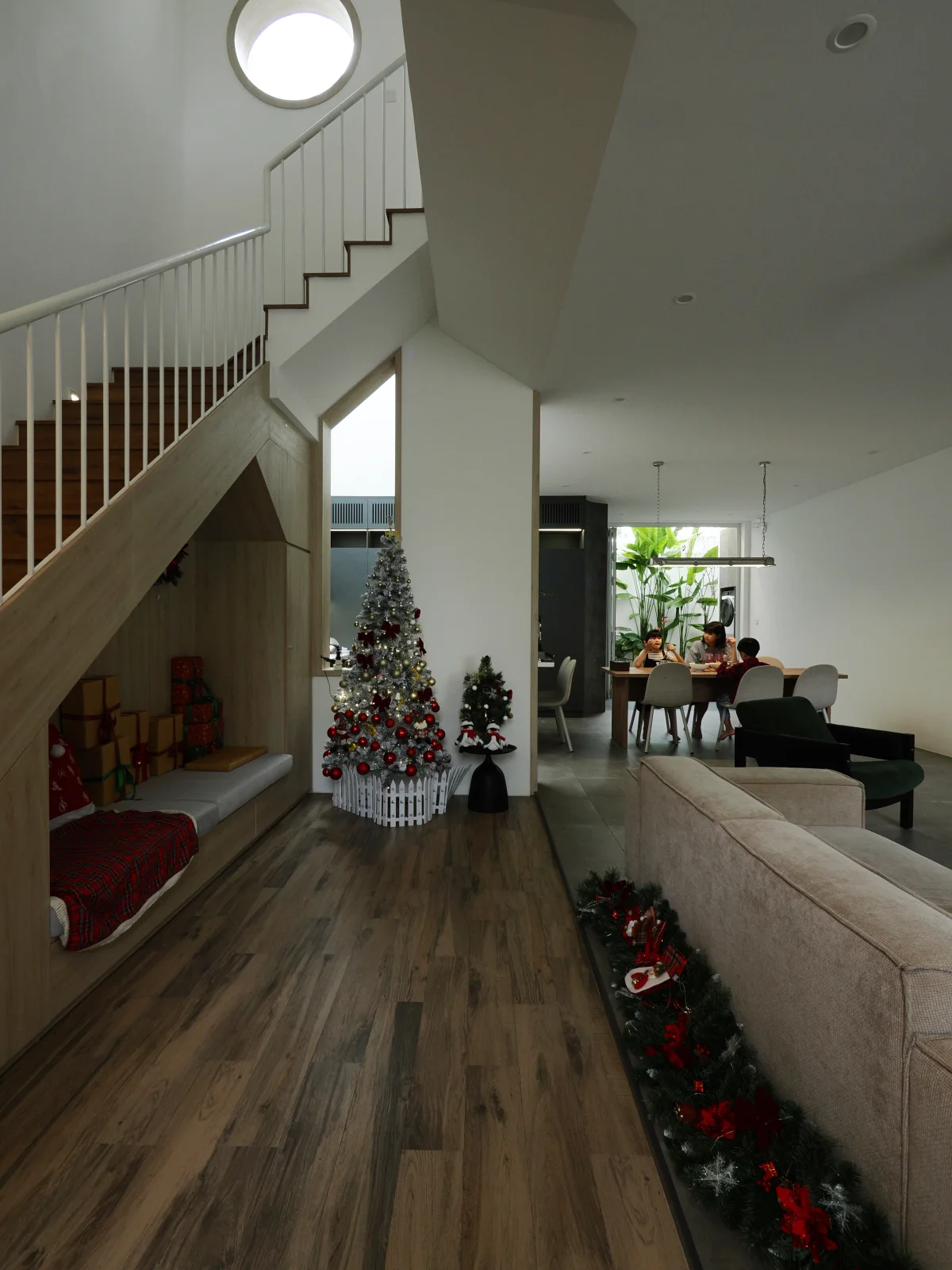 In the heart of Da Nang, a coastal city known for its vibrant energy, lies a sanctuary that redefines the concept of a 'townhouse.' Spanning 235 square meters, this architectural gem isn't just about walls and roofs; it’s a masterclass in emotional design, focusing on the most vital element of any home: human connection.The first thing that strikes you is the sheer sense of breathability. In urban environments where space is often cramped, this house utilizes strategic 'voids' and two internal courtyards to invite the outside in. Imagine waking up to soft, dappled sunlight filtering through leaves, dancing across warm wooden floors. This isn't just aesthetics—it's functional art. These open spaces act as the lungs of the house, ensuring a constant flow of fresh air and creating a visual bridge between different floors.