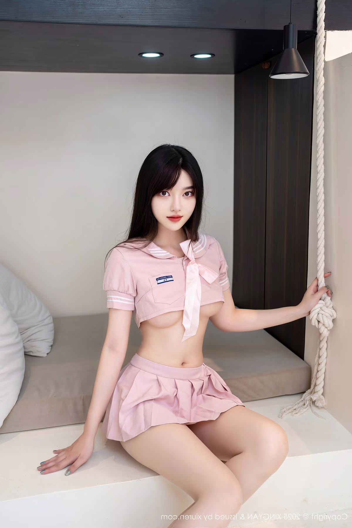 This captivating image from the XingYan星颜社 Vol.364 collection beautifully showcases model Bai Lu Lulu. She exudes a sweet and alluring charm dressed in a soft pink outfit reminiscent of a playful yet seductive JK uniform. Every curve and line of Bai Lu Lulu's figure is gracefully highlighted creating an irresistible appeal. Her direct gaze into the camera is full of expression inviting viewers to delve deeper into this stunning photoshoot. The long dark hair and natural pose further enhance her captivating presence. This collection captures Bai Lu Lulu's elegance fresh beauty and vibrant spirit promising a truly memorable visual experience for admirers.