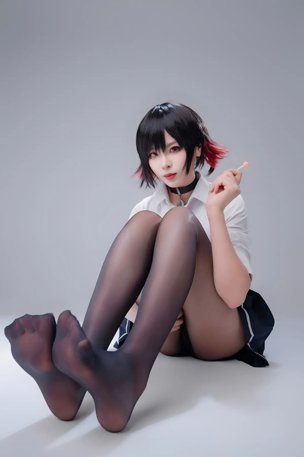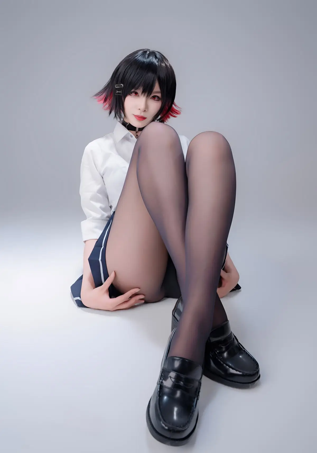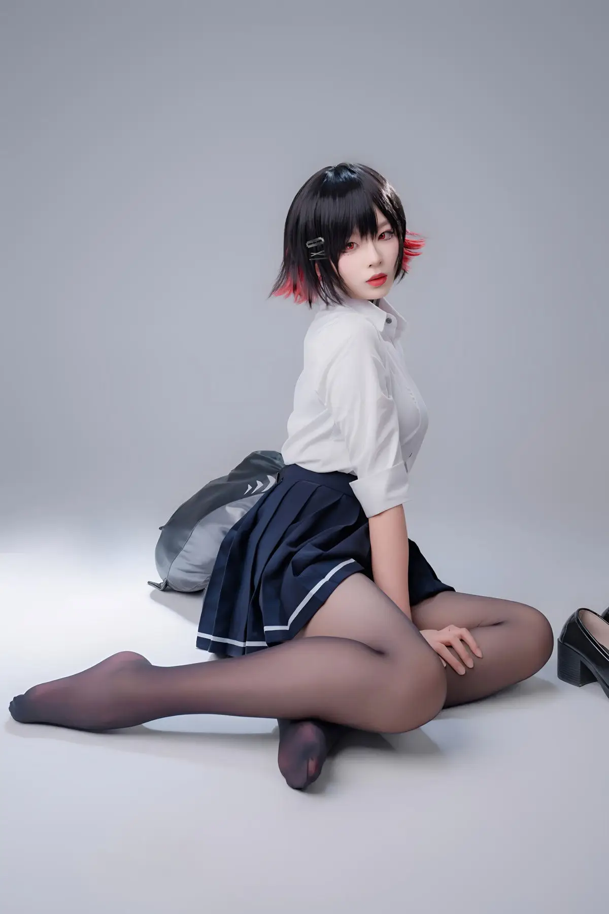 Immerse yourself in the captivating world of cosplay with Coser Xuan Xiao Xue Jie in the Shark Girl JK Part02 photo set. In this striking image, Xuan Xiao Xue Jie embodies a compelling JK schoolgirl persona, blending the innocent charm of a school uniform with the formidable power emanating from the sharp weapon she wields. Her short, dark, stylish hair, piercing gaze, and elegantly styled uniform paired with black tights create an enigmatic yet alluring figure. This is a segment from a special photo series where Xuan Xiao Xue Jie showcases her versatility and creativity in the art of costume play, promising to keep viewers utterly enchanted.