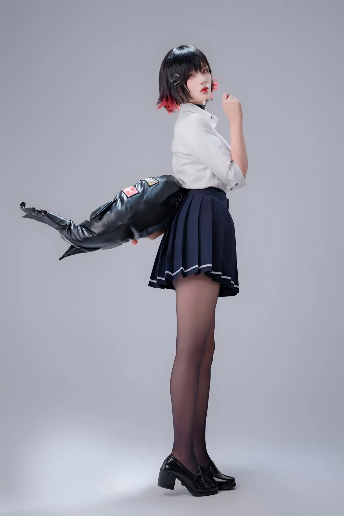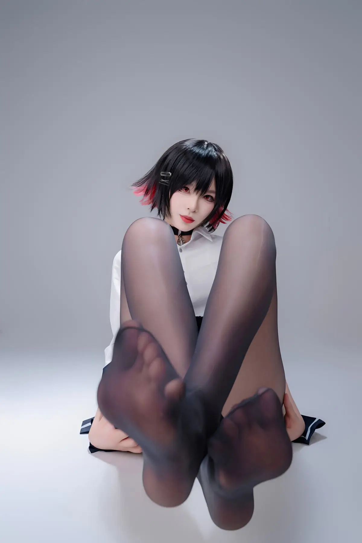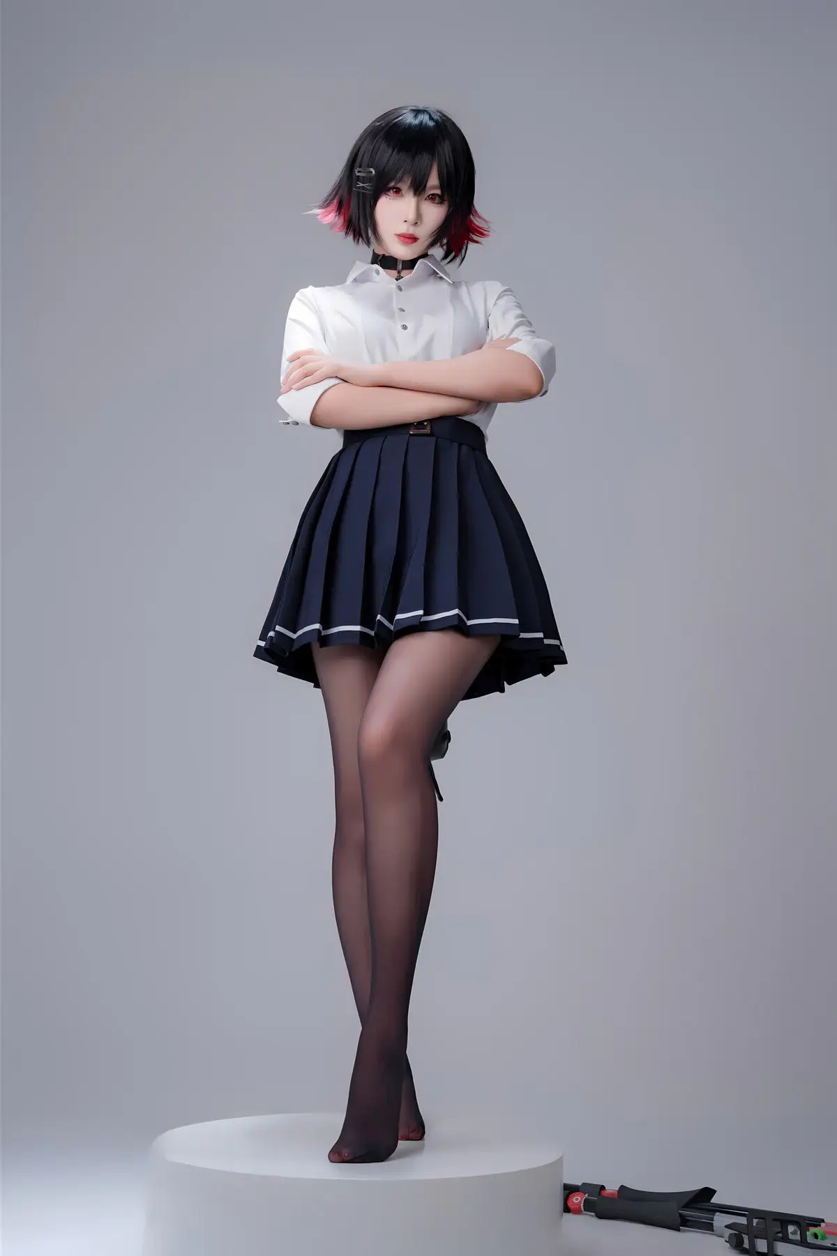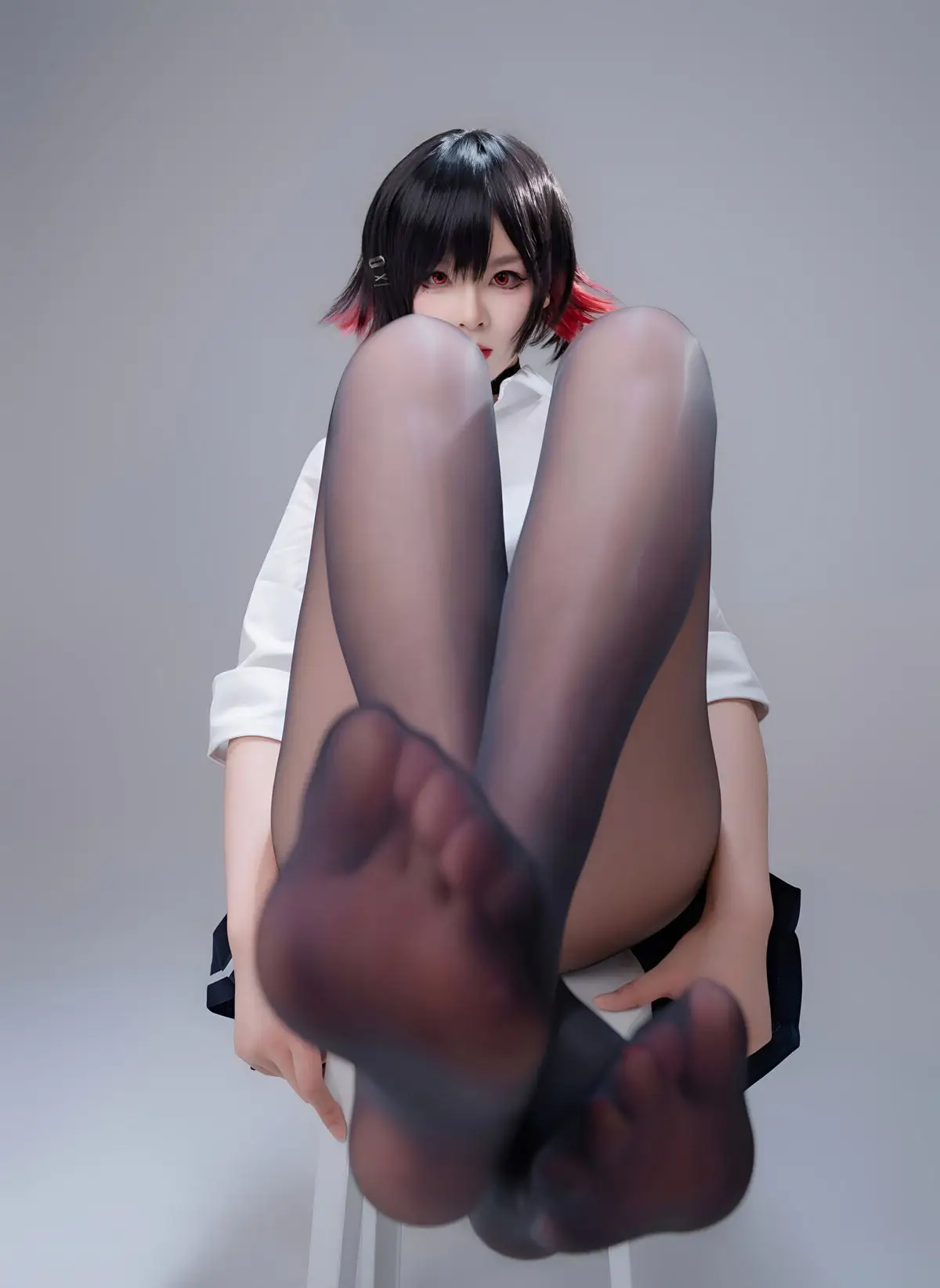 Immerse yourself in the captivating world of cosplay with Coser Xuan Xiao Xue Jie in the Shark Girl JK Part02 photo set. In this striking image, Xuan Xiao Xue Jie embodies a compelling JK schoolgirl persona, blending the innocent charm of a school uniform with the formidable power emanating from the sharp weapon she wields. Her short, dark, stylish hair, piercing gaze, and elegantly styled uniform paired with black tights create an enigmatic yet alluring figure. This is a segment from a special photo series where Xuan Xiao Xue Jie showcases her versatility and creativity in the art of costume play, promising to keep viewers utterly enchanted.