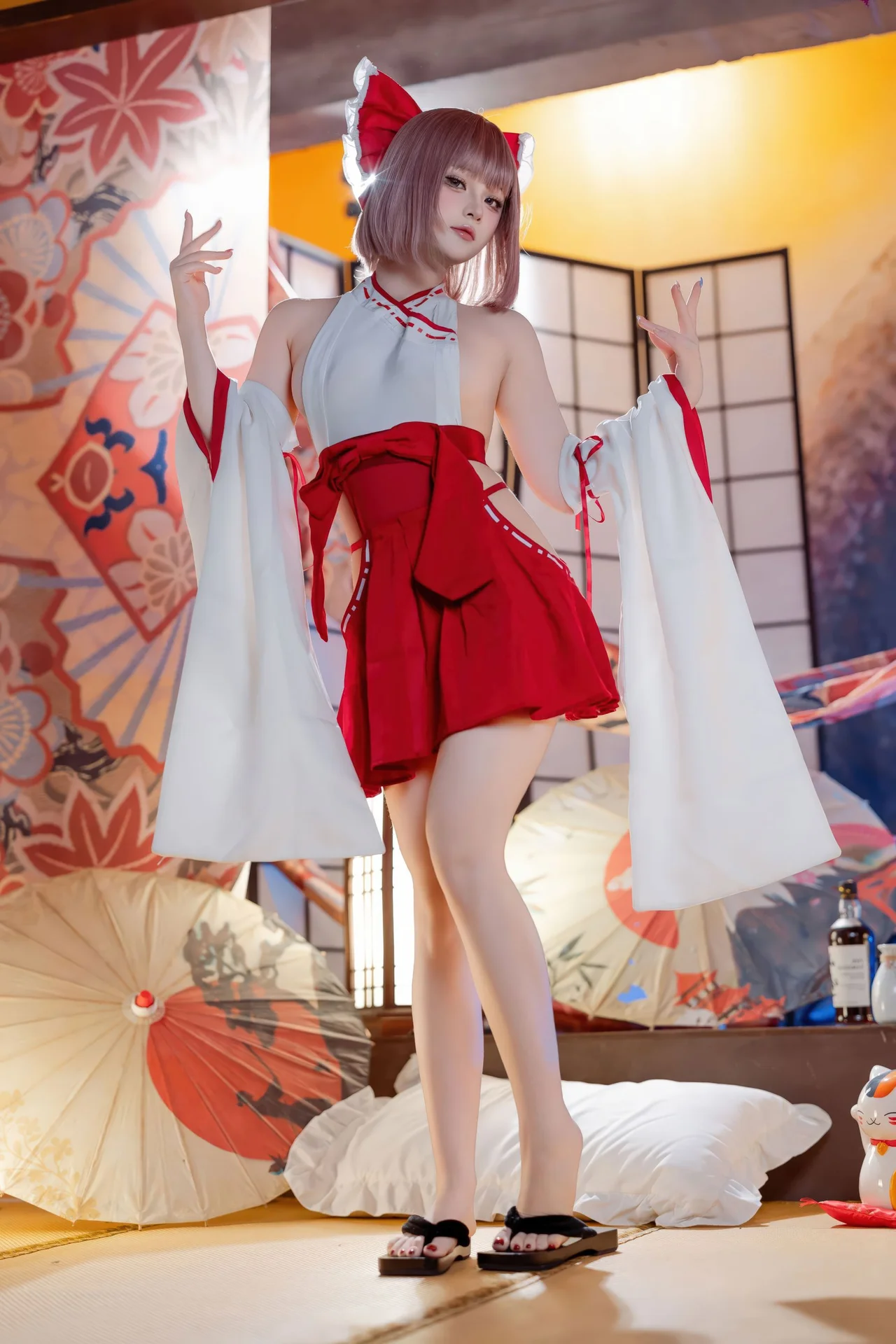 Step into a realm of purity and mystery with this stunning collection inspired by the traditional Japanese Miko (Shrine Maiden). More than just a fashion gallery, this is an inspiring visual narrative where ancient cultural elements are reimagined through a sophisticated modern lens.In Japanese culture, the Miko represents a bridge between the human and spiritual worlds, symbolizing divine purity. This series masterfully preserves the vibrant red of the Hakama and the pristine white of the Kimono, creating a powerful yet harmonious contrast. The unique twist lies in the creative 'Cat Girl' (Nekomimi) interpretation, adding a whimsical, fantasy-driven flair that resonates with contemporary artistic trends.