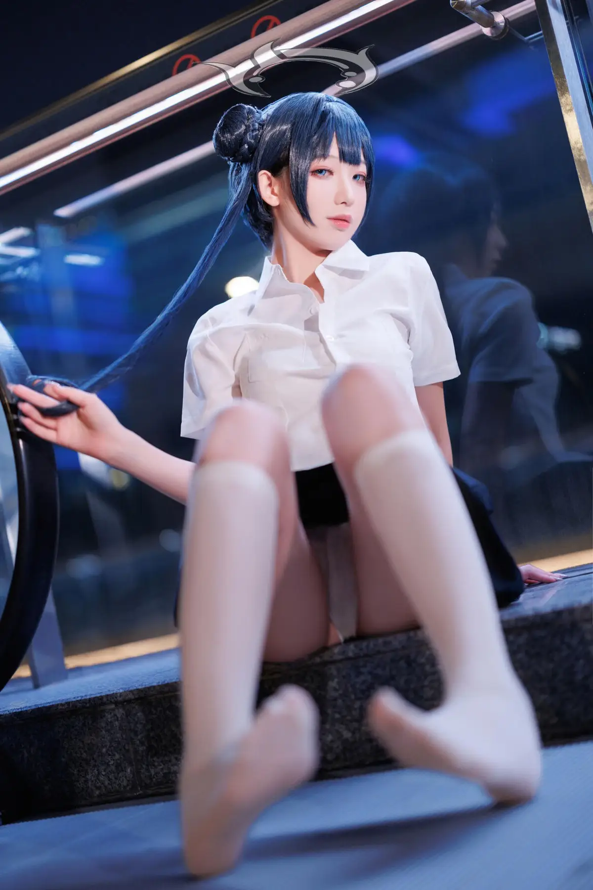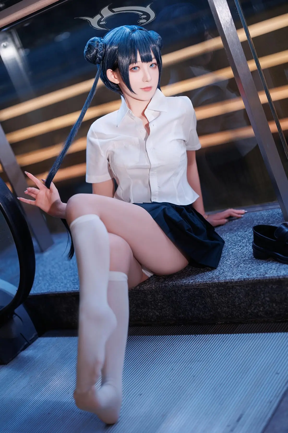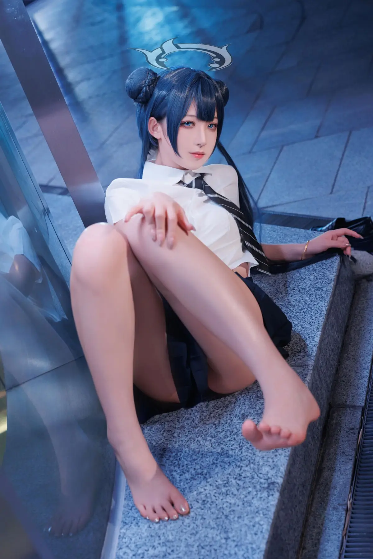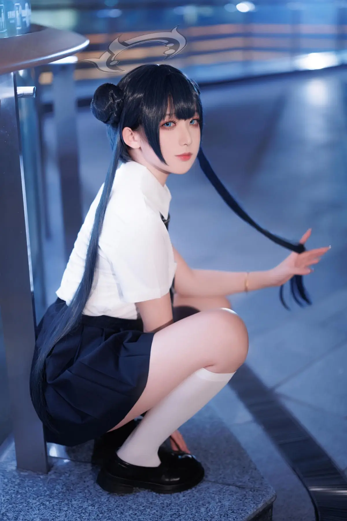 This photo series features Coser Feng Jiang Jiang V in a stunning Hisaki JK portrayal She dons the familiar Japanese school uniform a crisp white shirt and a dark pleated skirt exuding an elegant and youthful charm Her natural pose on the stone ledge combined with the mystical blue urban night lighting creates a modern yet romantic ambiance The cosers gaze radiates innocence yet is equally captivating drawing every eye Feng Jiang Jiang Vs cosplay style is highly regarded for its meticulous attention to detail and professional demeanor This collection not only showcases the adorable essence of the Hisaki JK character but also celebrates the dynamic and vibrant beauty of youth offering a delightful visual experience for viewers#CoserFengJiangJiangV #HisakiJK #JKCosplay #SchoolGirlUniform #JapaneseFashion