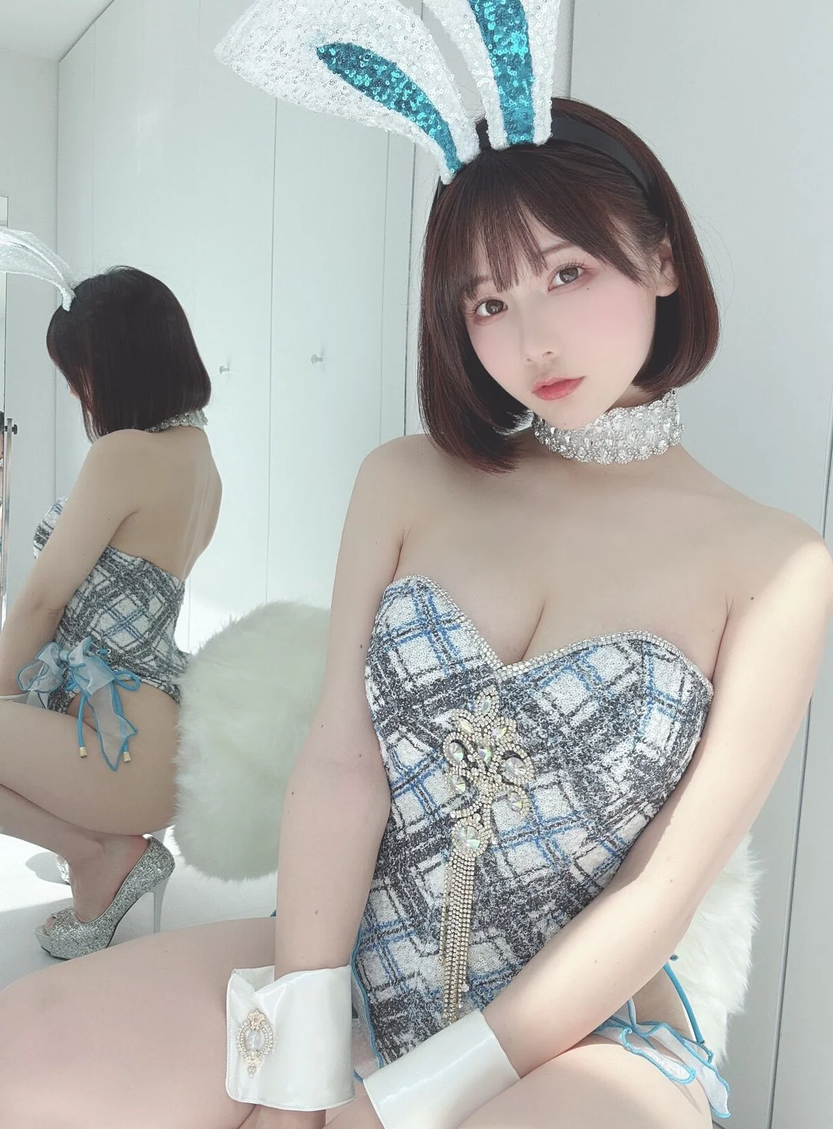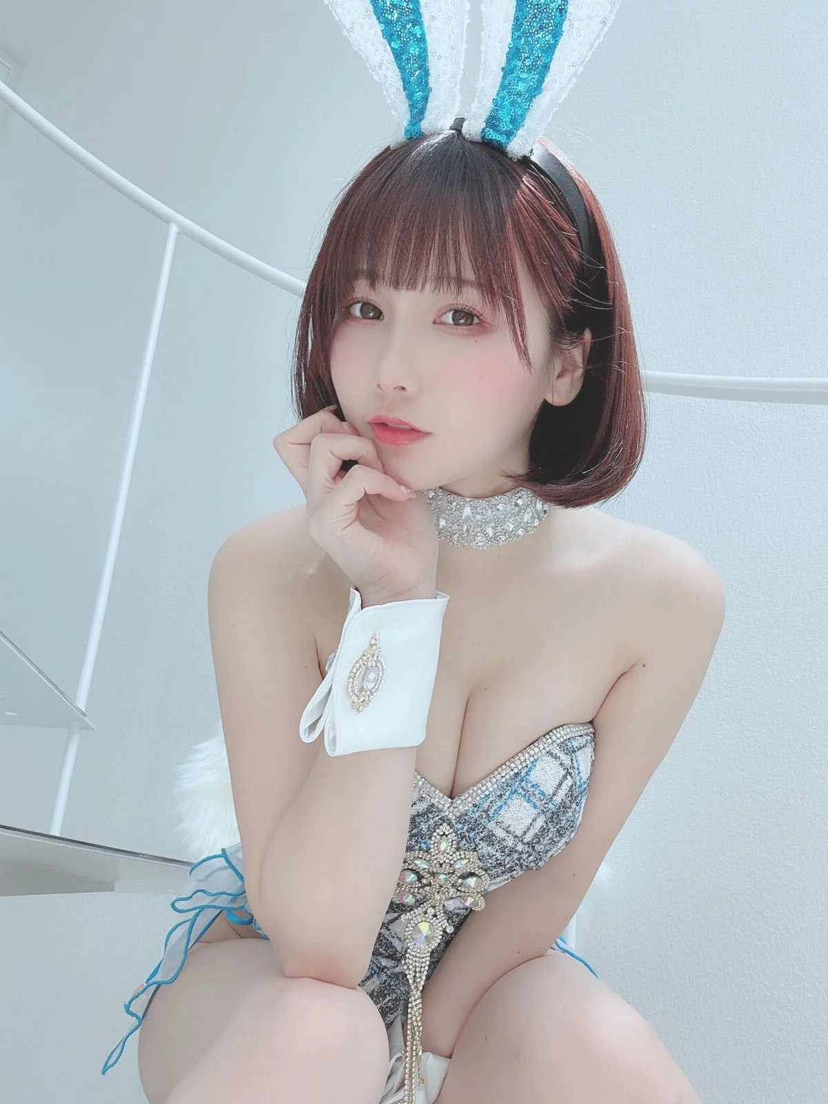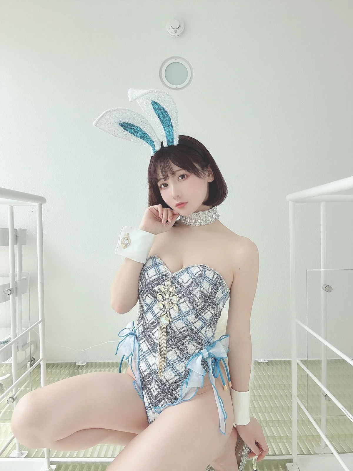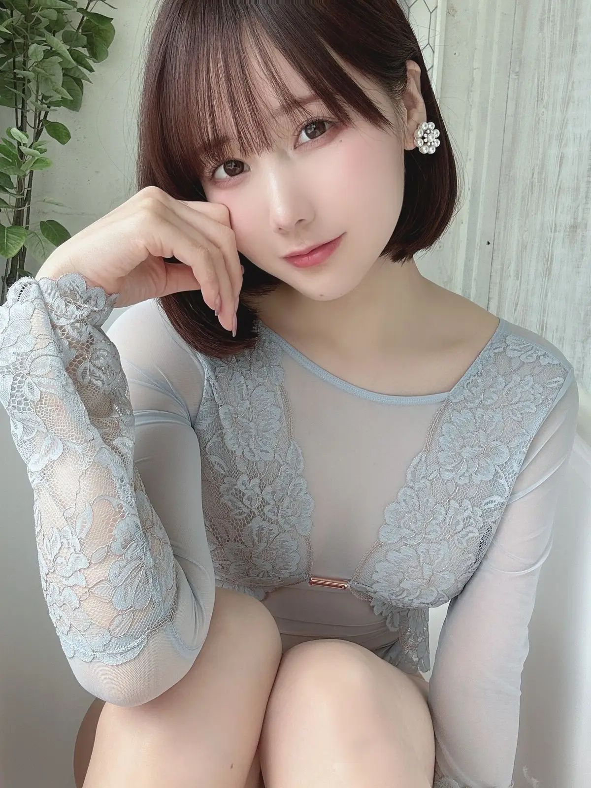 In this captivating image, Coser Ken Ken (けん研 けんけん) radiates a serene and alluring beauty. Her gentle gaze and subtle smile invite viewers in, while her short, stylish hair and delicate sheer lace top in a soft blue-grey hue highlight her graceful charm. Every detail, from the pearl earring to her elegant pose, contributes to an aura of sophistication and subtle allure. This picture is part of her exclusive 2023.05 Fantia Part03 collection, promising an exquisite blend of artistry and emotion for her devoted fans. Ken Ken’s natural elegance paired with a tastefully sensual fashion choice makes her a compelling focal point.#Coser #KenKen #Fantia #AsianBeauty #LaceFashion #SubtleAllure