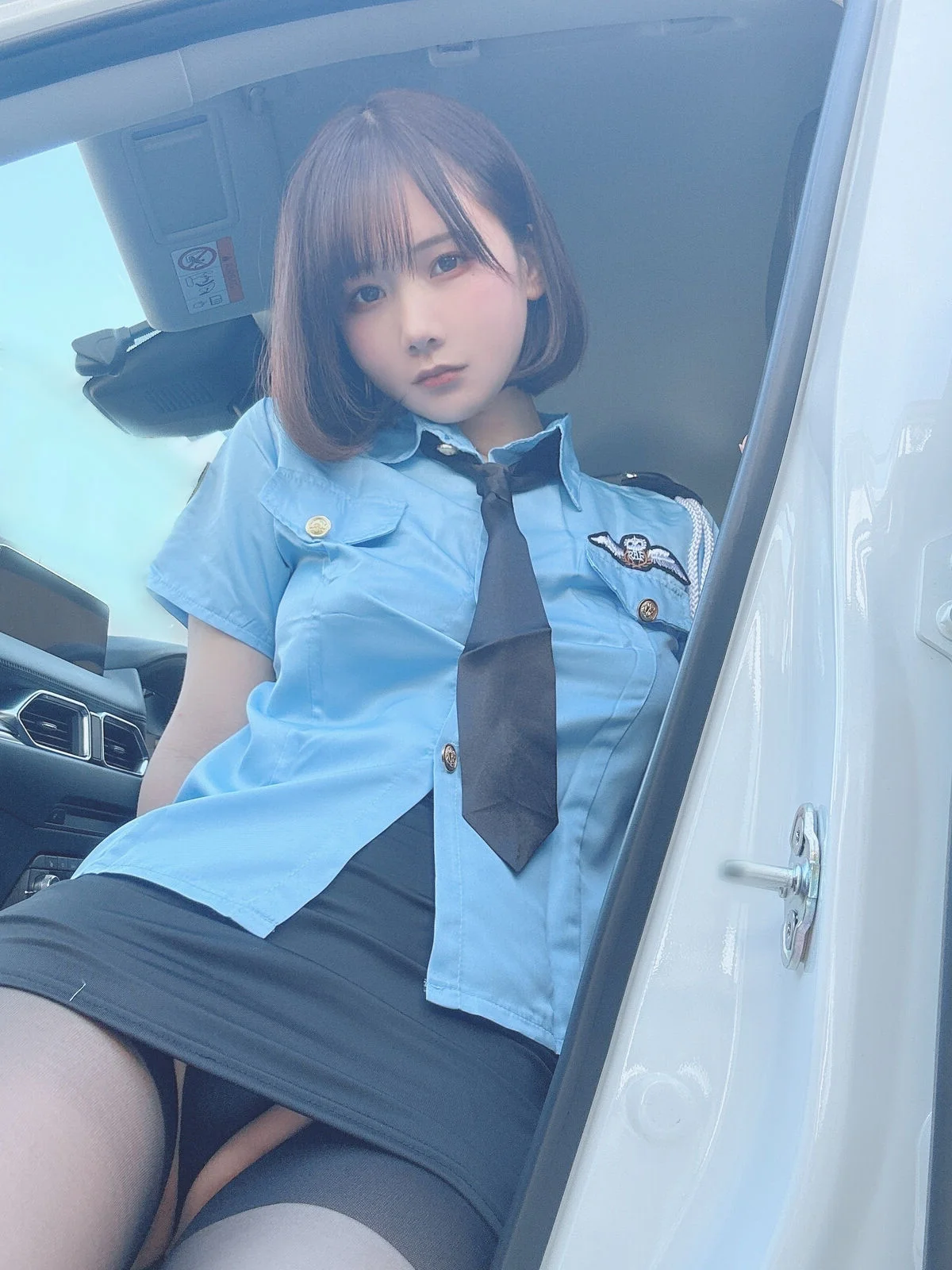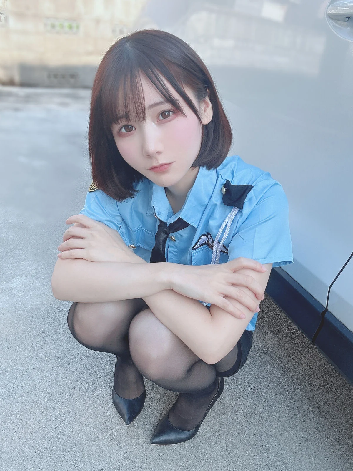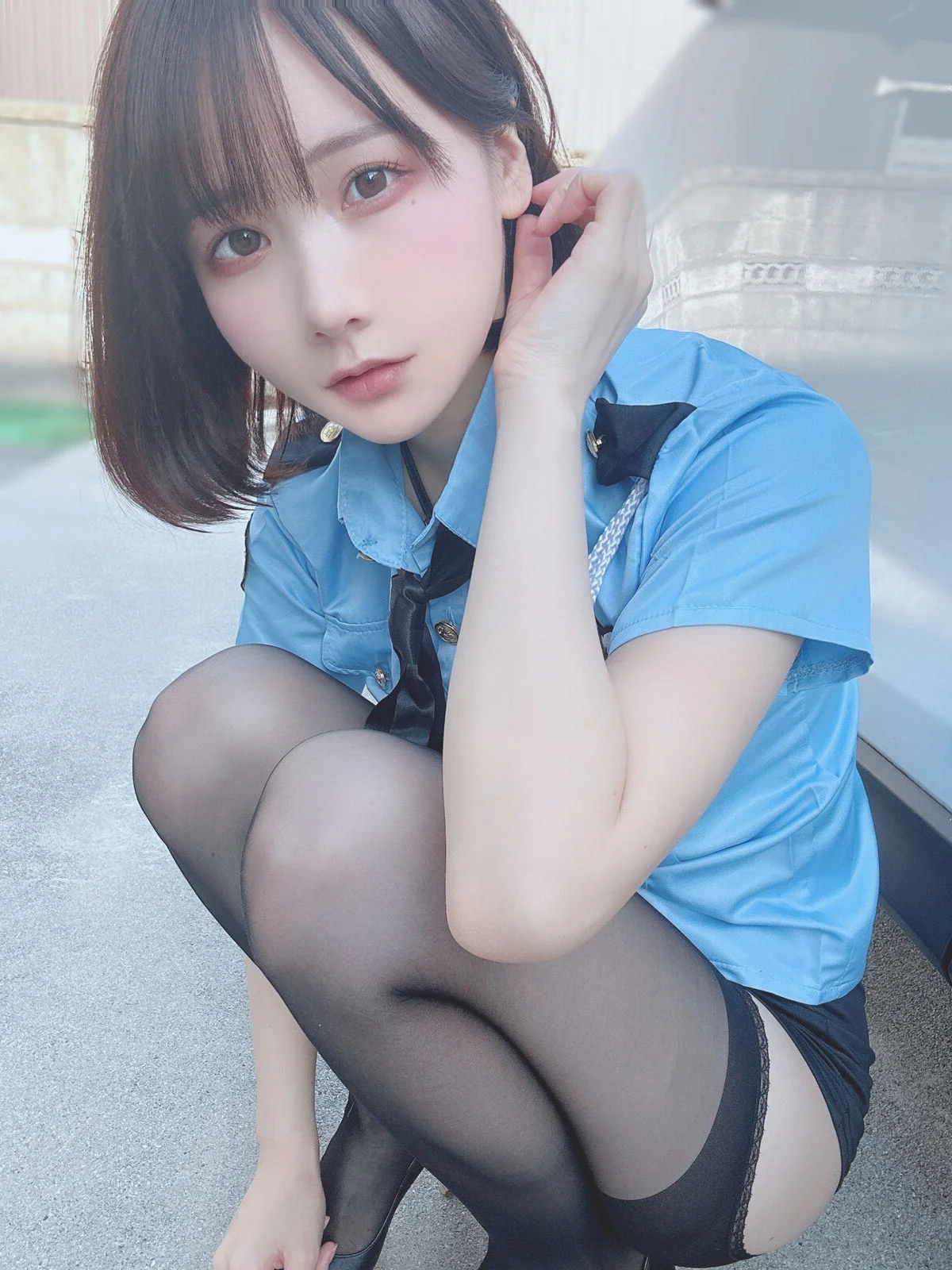 This image features Coser@けん研 けんけん, a familiar face from the Fantia 2023.11 Part01 collection, in an incredibly cute and playful police girl cosplay. With a gentle smile, clear eyes, and rosy cheeks, she exudes an innocent yet captivating charm. The familiar blue police uniform is subtly paired with a dark tie and sheer stockings, creating an image that is both serious and gracefully alluring. Her graceful sitting pose and neat short hair further highlight her youthful energy dynamism and distinctive style. This is undoubtedly a beloved moment, showcasing the coser's skill and confident aura, drawing all eyes to her.#Coser #Kenken #Fantia2023 #PoliceGirl #CosplayFashion #CuteCoser