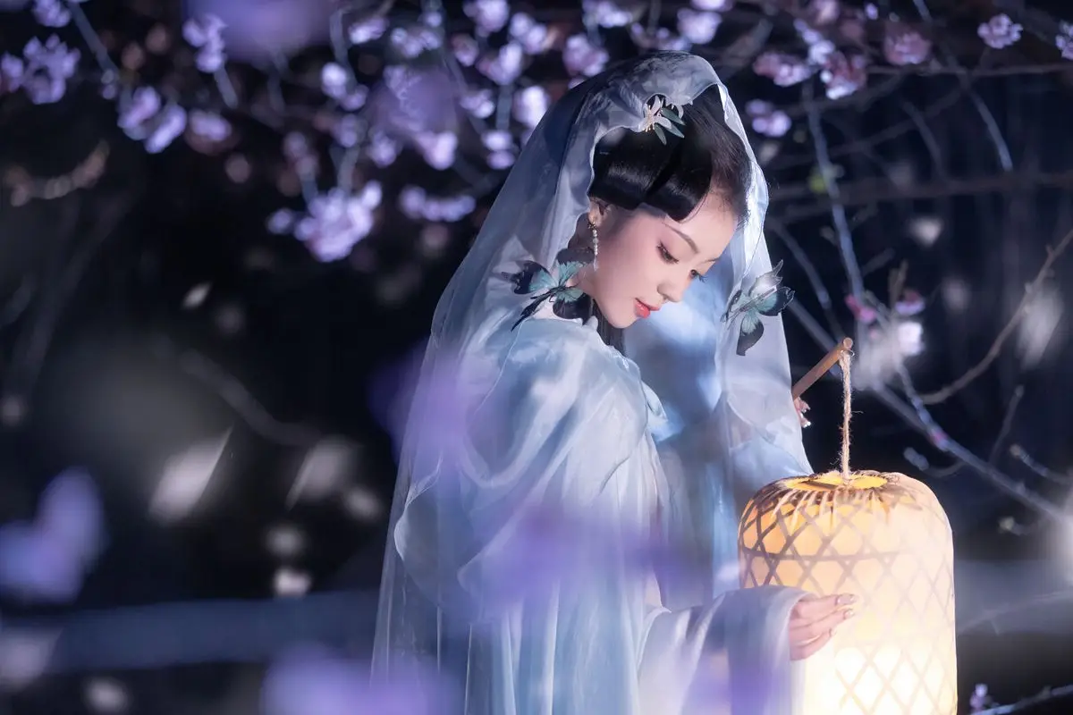 The YiTuYu Vol.8623 collection proudly presents the captivating beauty of Qi Ni Si Mao. In this enchanting image Qi Ni Si Mao embodies a classical muse adorned in exquisite flowing traditional attire. The warm glow emanating from the intricately woven lantern she cradles illuminates her delicate features creating an ethereal and romantic ambiance. Behind her shimmering blossoms subtly emerge from the darkness further enhancing her otherworldly grace. Every detail from her elegantly styled hair to her profound eyes exudes poise and sophistication. This photograph transcends a mere image it is an artistic narrative celebrating the harmonious blend of human beauty and nature inviting viewers into a dreamlike world.#QiNiSiMao #AsianMuse #TraditionalAttire #LanternLight #EtherealBeauty