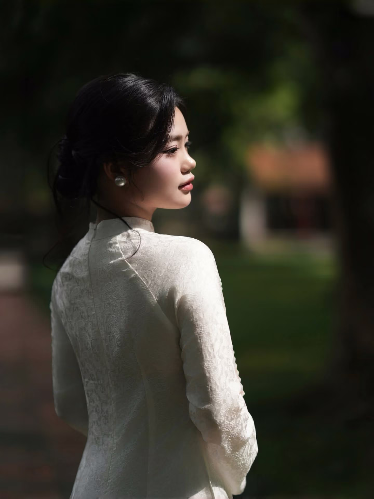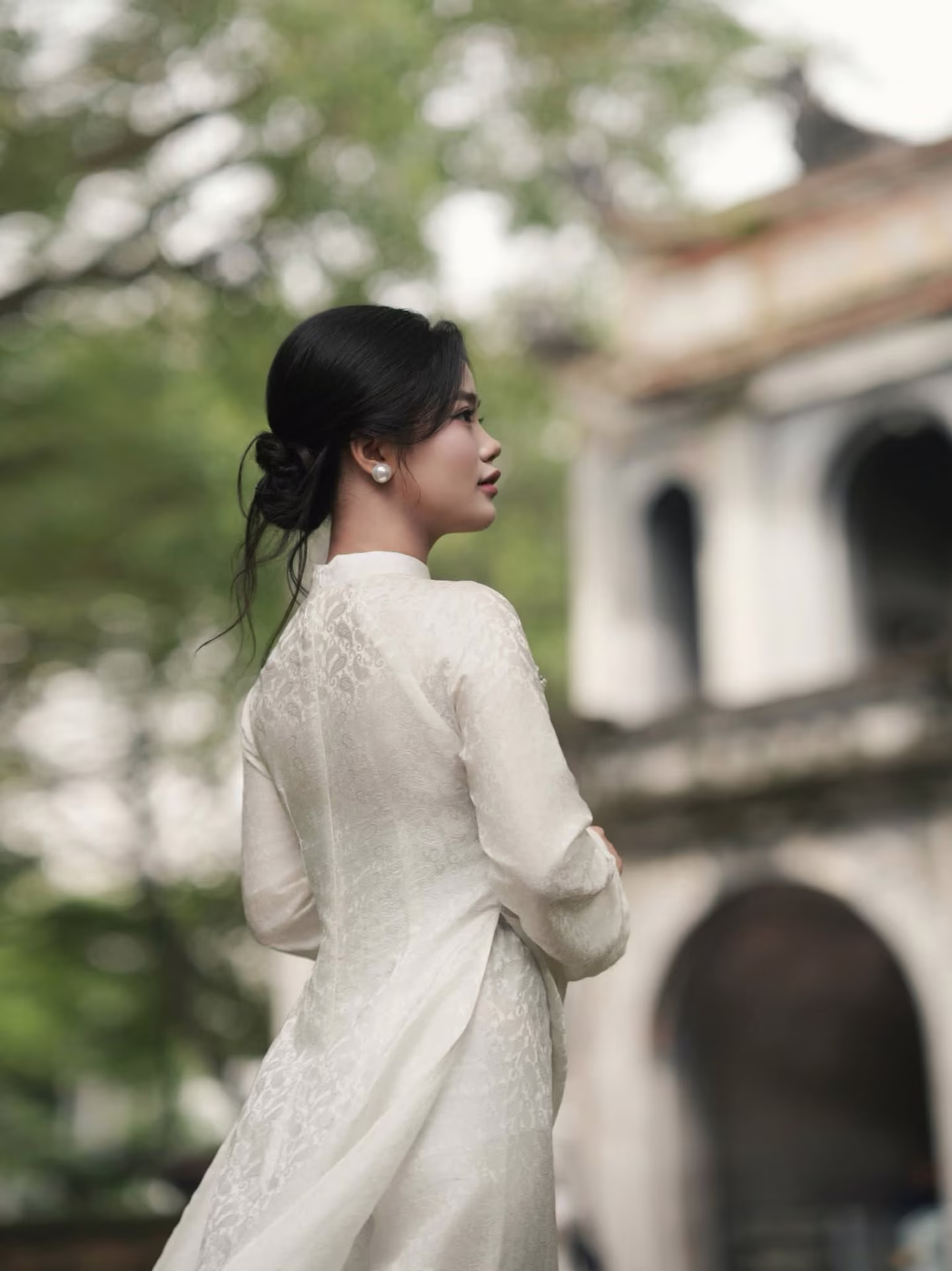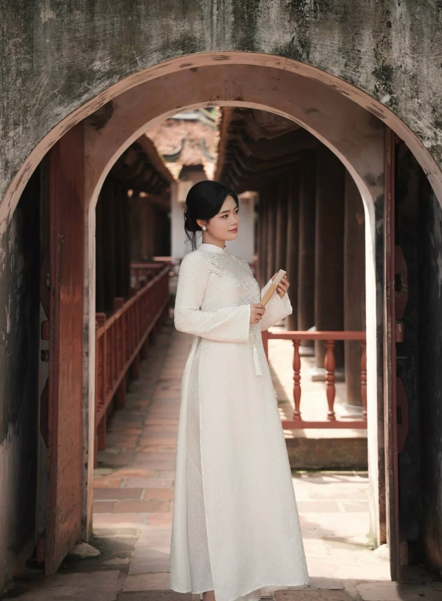 VGU No.87: Discover the captivating elegance of a Vietnamese girl in a pristine white Ao Dai.