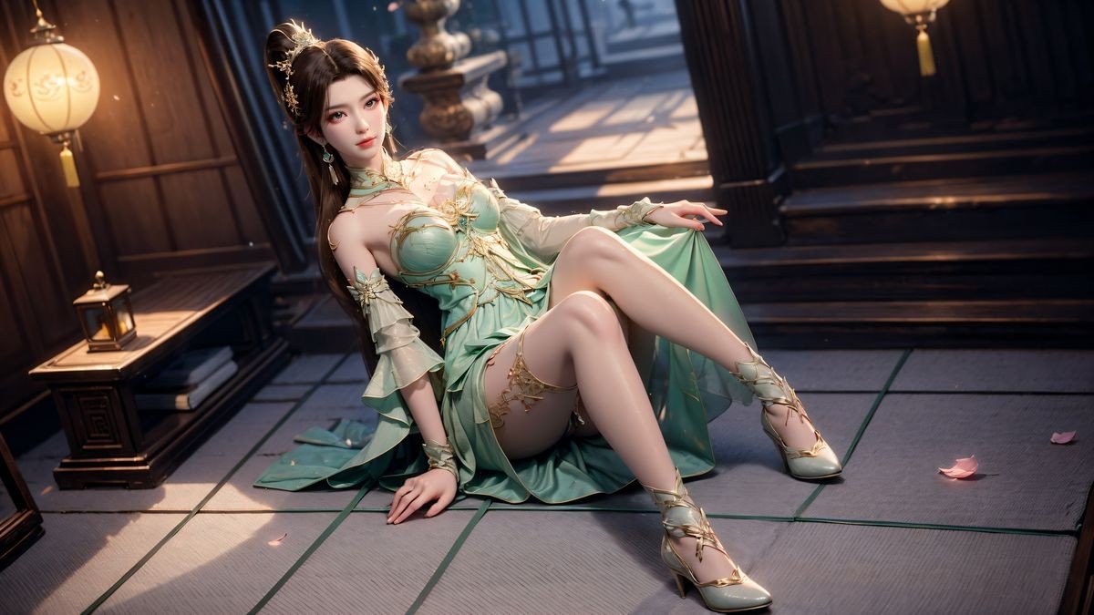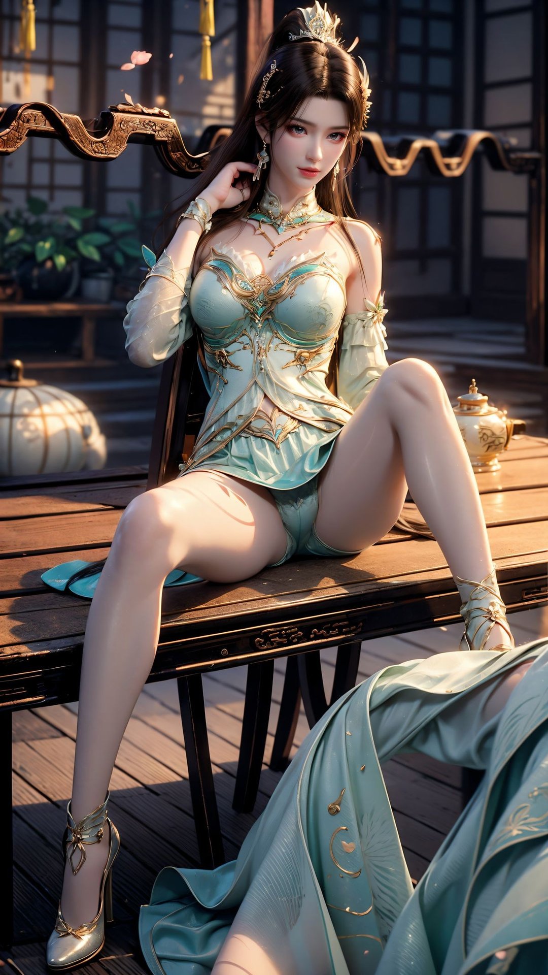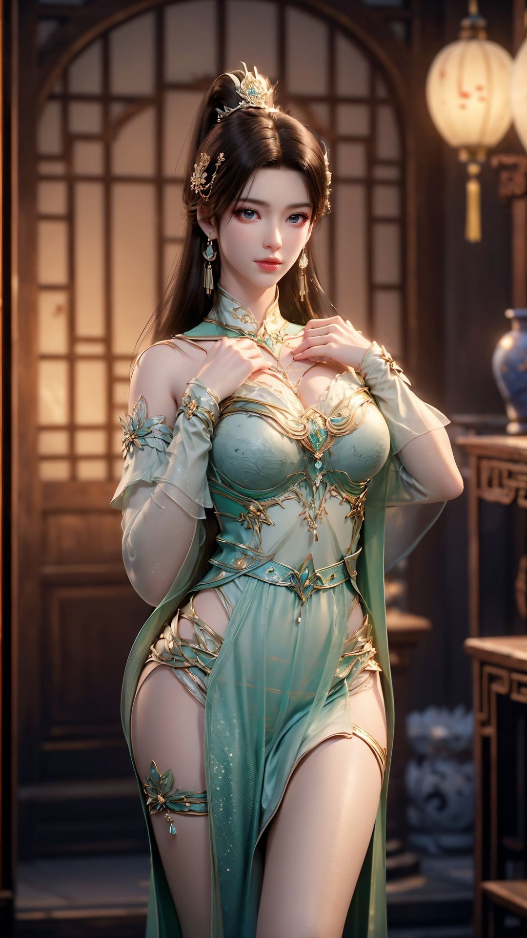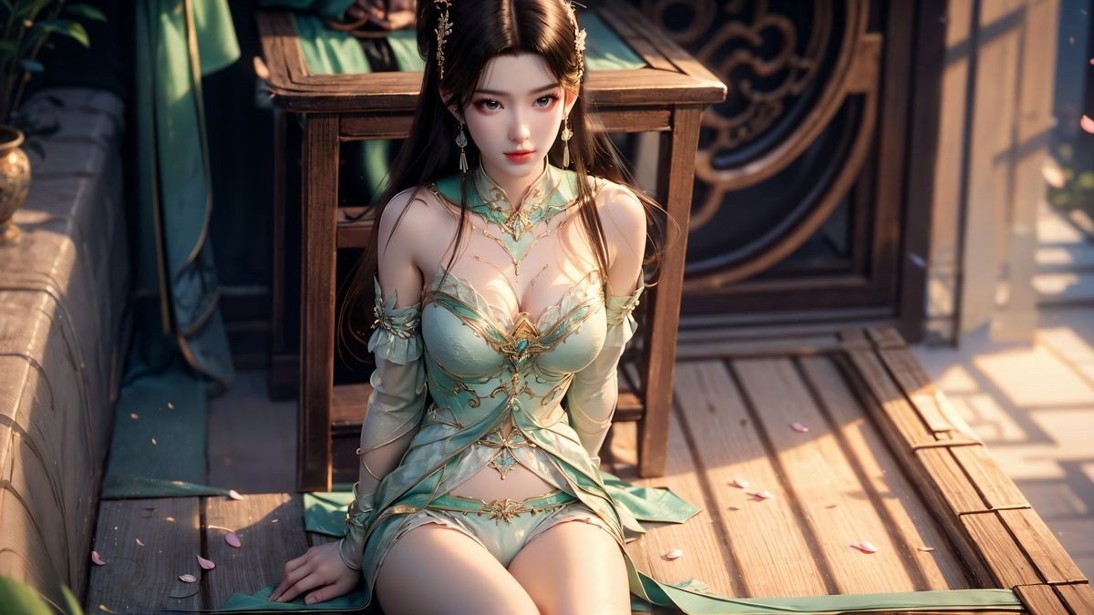 Discover the enchanting allure of Xiao Xun'er in this stunning AI Generated Part04 artwork. The image portrays an exquisite Eastern fantasy maiden, radiating captivating beauty and an alluring aura. She is adorned in an intricately designed traditional gown of jade green and gold, gracefully highlighting her elegant figure and delicate features. Her long dark hair flows softly, while her expressive eyes convey a sense of mystery and charm, drawing viewers into her world. This digital masterpiece seamlessly blends AI technology with imaginative artistry, resulting in an emotional and graceful depiction of the character. It is a must-see for enthusiasts of ethereal beauty and high-quality AI generated art.