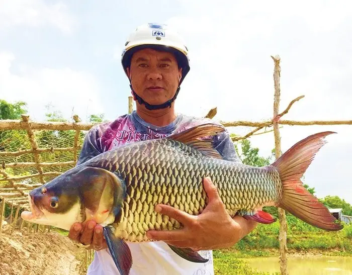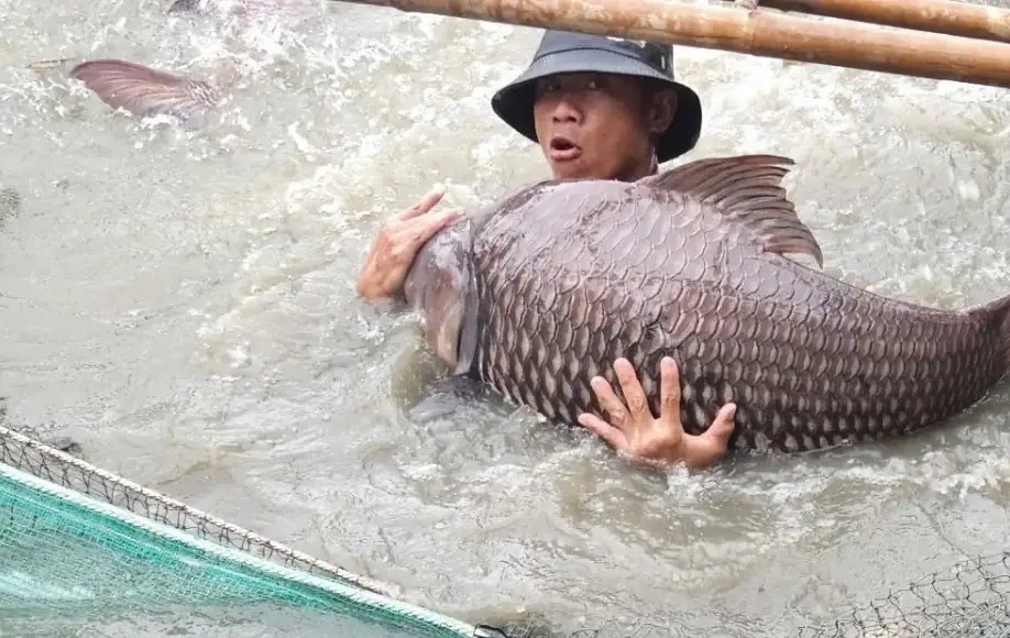 The image captures a close-up moment of a colossal giant barb (cá hô) being meticulously measured, its impressive size hinting at the immense value of this species. Dubbed a treasure of the Mekong River, the giant barb not only draws attention with its massive physique but also with its sky-high economic value, reaching up to 500,000 VND/kg, making traders eagerly seek it out. Thanks to effective commercial giant barb farming models in the Mekong Delta, this once rare species is gradually recovering, not only meeting the demand of the high-end fish market but also contributing to its conservation and the sustainable development of Vietnamese aquaculture.#GiantBarb #FishFarming #RareFishSpecies #MekongDelta #AquacultureVietnam