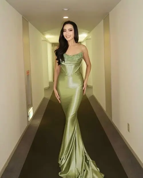 Thanh Thuy’s approach to beauty is deeply rooted in authenticity. Rather than chasing an unattainable standard of perfection, she focuses on staying true to herself—a message that resonates deeply with the international community. In these images, you can see her wearing the iconic Miss International crown, paired with exquisite evening gowns that highlight her poise and statuesque presence. Her fashion choices blend traditional elegance with contemporary flair, making her a significant figure in the world of high-fashion pageantry.
