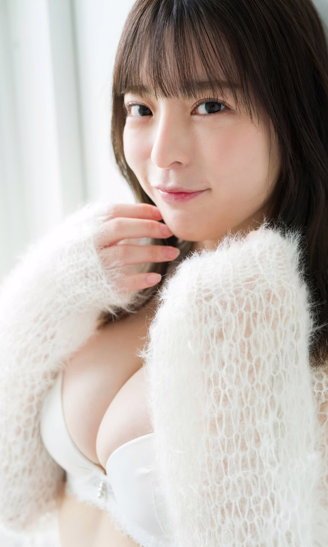 Immerse yourself in the captivating charm of JP Nagano Miyabi as she embarks on a heartwarming homecoming. This exquisite image, a highlight from her digital photo book, beautifully portrays her in a serene and intimate setting. With a gentle, inviting smile and eyes that sparkle with warmth, Miyabi exudes a comforting aura, perfectly embodying the essence of returning home. Her soft, fluffy white attire complements the cozy ambiance, creating a truly enchanting visual. This 'Homecoming Gravure' collection promises an emotional journey through Miyabi's grace and natural beauty, inviting fans to explore every delightful moment captured in this stunning digital photo book.