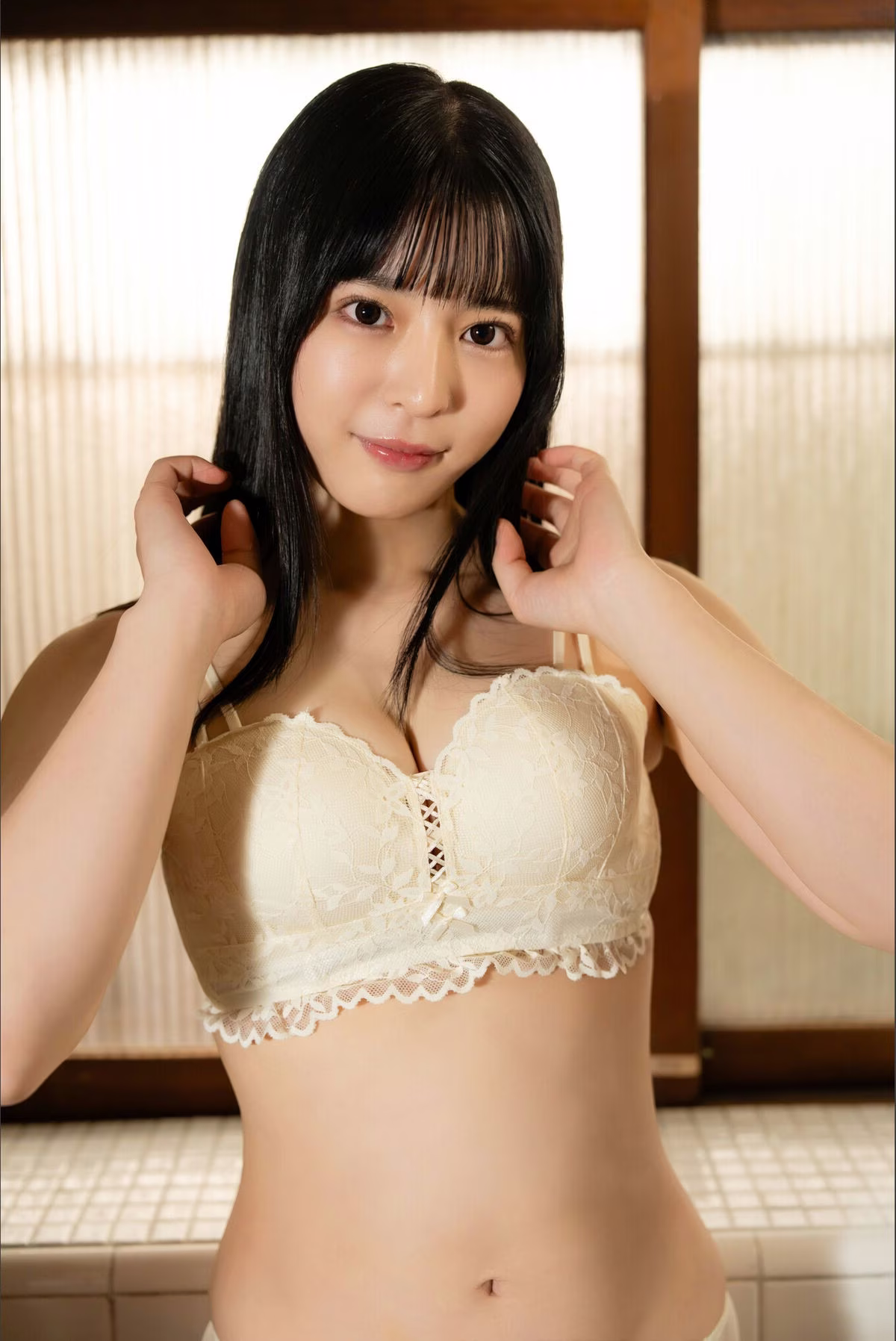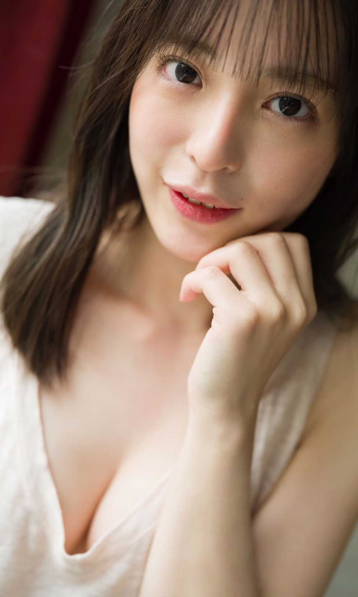 This image is part of Nagano Miyabi's 長野雅 exclusive digital photobook Hajimete offering an intimate glimpse into her natural and graceful beauty In the photo Nagano Miyabi appears with flowing dark hair a pure face and clear eyes her expression gentle yet captivating She wears a simple white tank top accentuating her slender figure and elegance Every detail from the soft lighting to her subtle head tilt evokes a sense of new beginnings innocence and a touch of shyness associated with a first time This is more than just a picture it's an artistic moment that genuinely captures Nagano Miyabi's hidden allure and unadorned beauty making it impossible for viewers to look awayStories