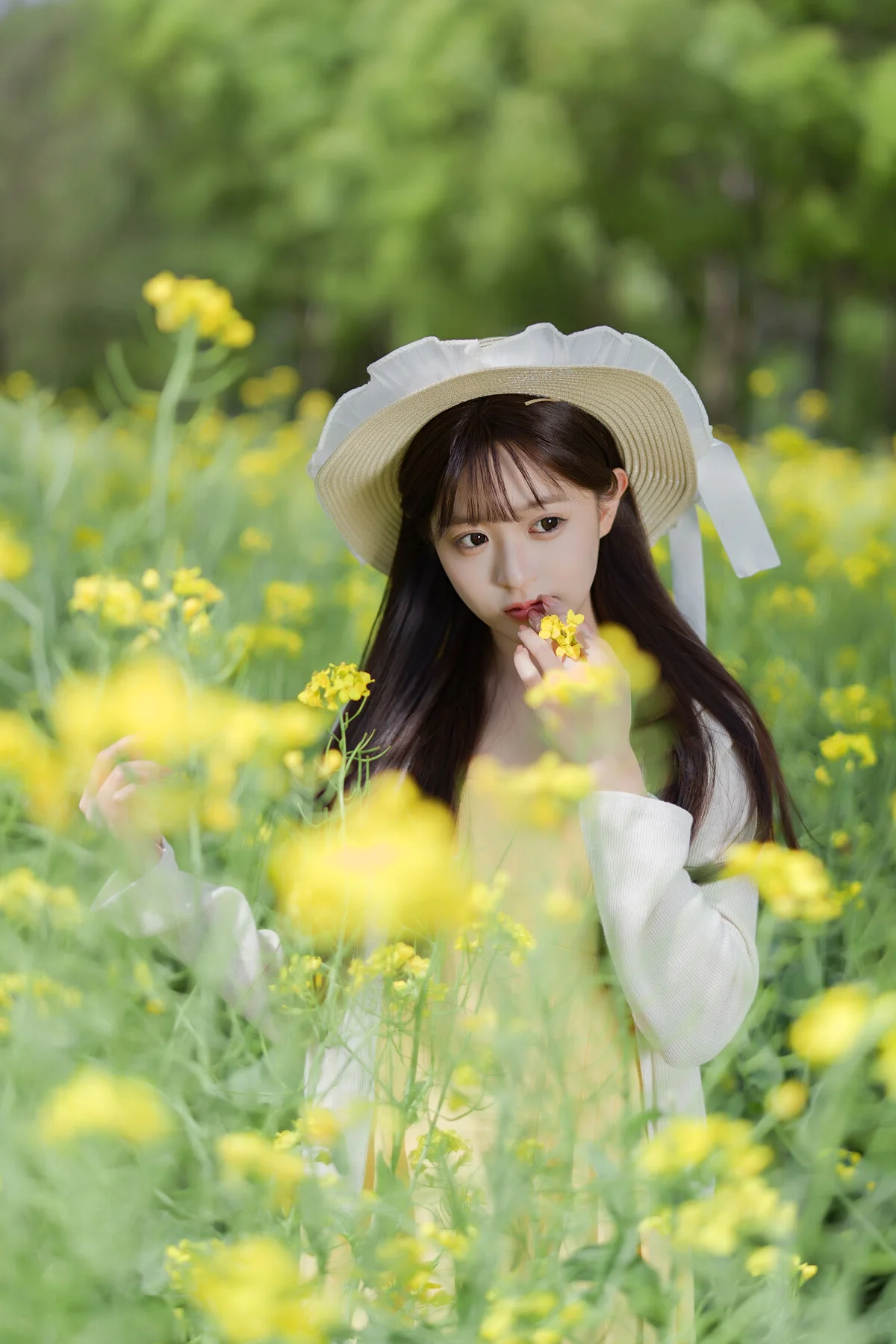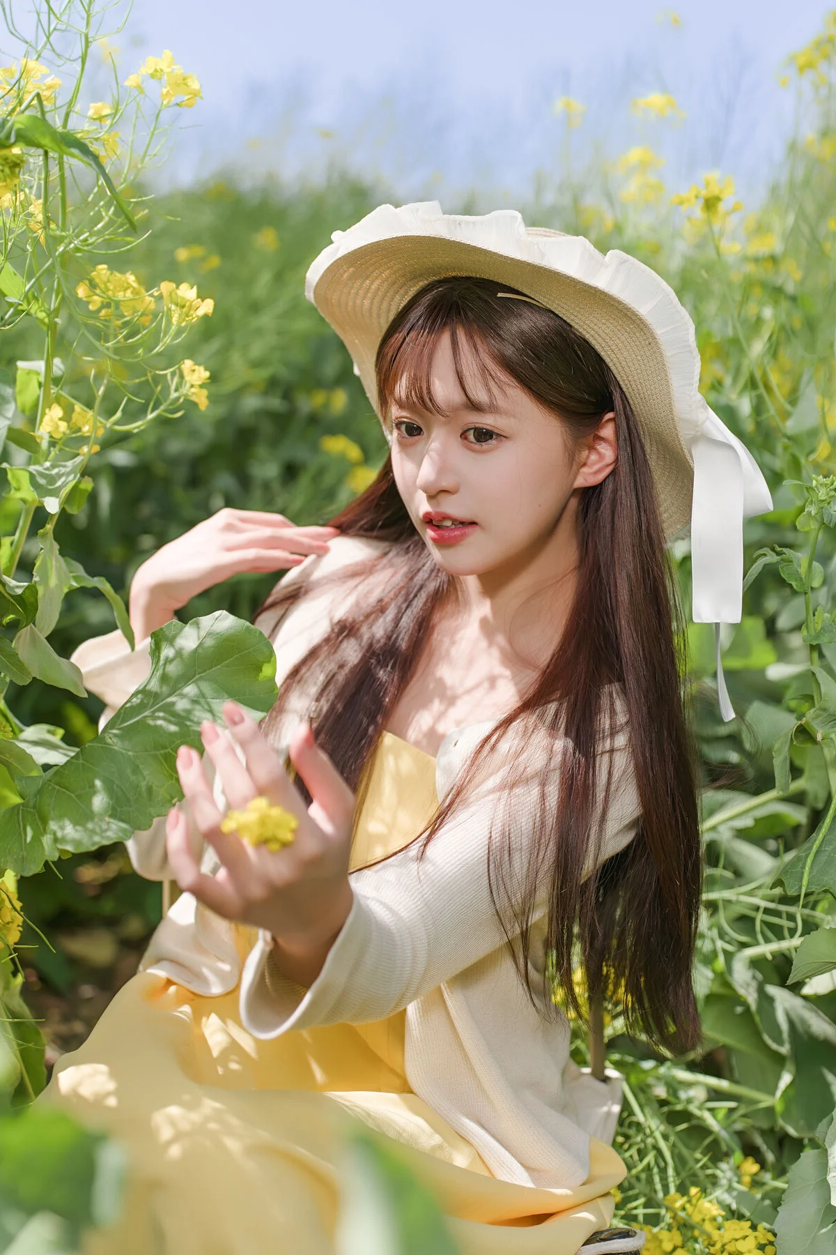 Experience the magic of the golden hour with this breathtaking photography collection. In Art Language Vol.9109, featuring the stunning model Xiao Yi, we are transported to a world where nature and beauty intertwine seamlessly. Set against a backdrop of brilliant, sun-drenched flower fields, these images capture a sense of ethereal grace and timeless elegance. The vibrant yellow blooms create a striking contrast against the soft, natural lighting, making every frame feel like a scene from a fairytale.Xiao Yi embodies the spirit of a woodland elf, moving through the tall stalks with an effortless charm that defines this entire series. Whether you are a photography professional looking for composition inspiration or a travel enthusiast dreaming of your next countryside escape, this set offers a masterclass in outdoor portraiture. The Art Language Vol.9109 collection emphasizes high-quality aesthetics, focusing on the delicate balance between the subject and the vast, open landscape.