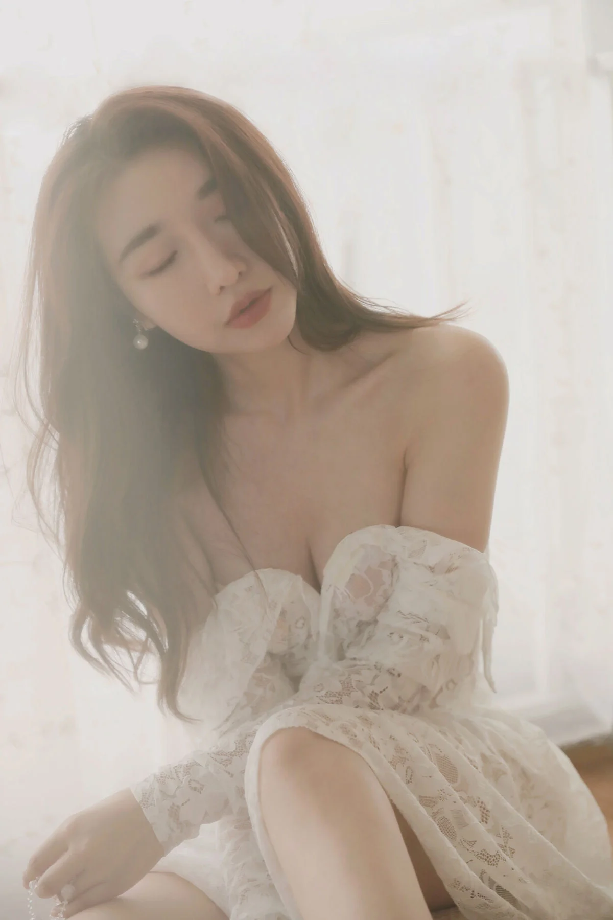 Discover the perfect blend of grace and high-fashion elegance with this exquisite photography collection featuring model Li Ling Yu. In this release of YiTuYu Art Language Vol.9394, the spotlight is on a magnificent white lace fishtail dress that redefines sophisticated style. This mermaid-style gown, known for its figure-hugging silhouette and dramatic flare, is captured in stunning detail, making it a masterpiece of visual storytelling.Consisting of 15 high-resolution images, this set explores the delicate textures of premium lace and the timeless beauty of Li Ling Yu. The Art Language series is renowned for its minimalist yet impactful aesthetic, and Vol.9394 is no exception. The soft, natural lighting enhances the intricate patterns of the dress, creating an ethereal atmosphere that resonates with lovers of fine art and luxury fashion.
