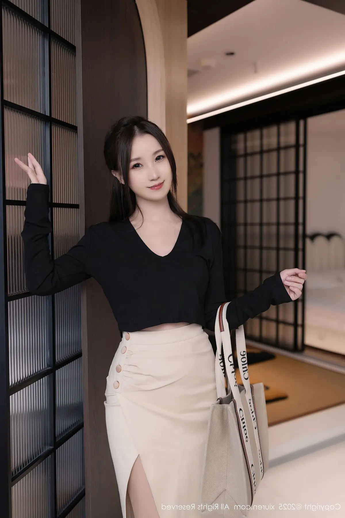 In the XiuRen No.10576 collection, model Xing Ya Da shines with a captivating and elegant beauty. She exudes confidence and sophistication while seated on a plush black sofa, creating an enchanting scene. Dressed in a chic ensemble featuring a sensual V-neck black top and a soft cream skirt, Xing Ya Da gracefully highlights her slender figure and natural charm. Her mesmerizing gaze and subtle smile seem to tell a story, inviting viewers to immerse themselves in this world of exquisite fashion and style. This collection perfectly blends modern allure with traditional Asian aesthetics.#XingYaDa #XiuRen #AsianBeauty #ElegantFashion #ModelPhotography