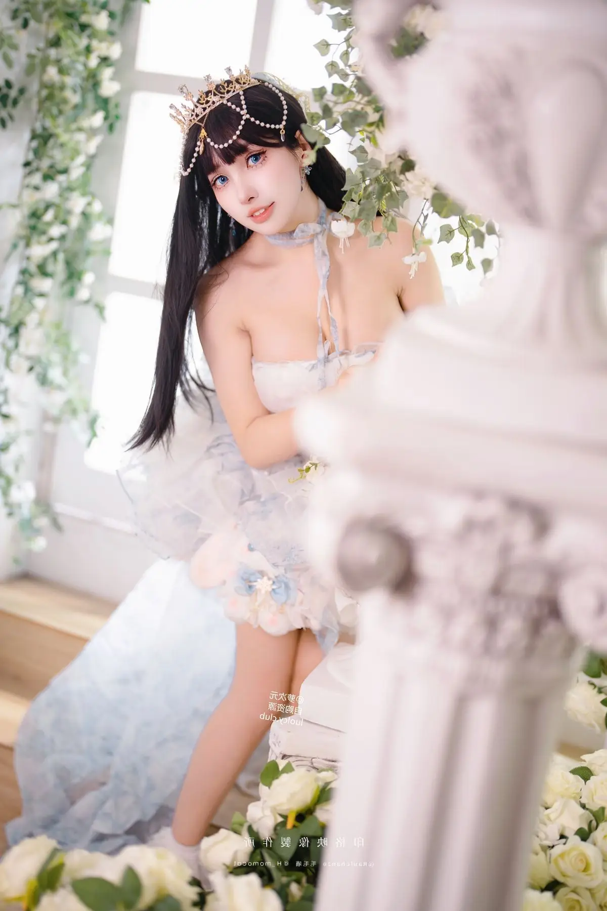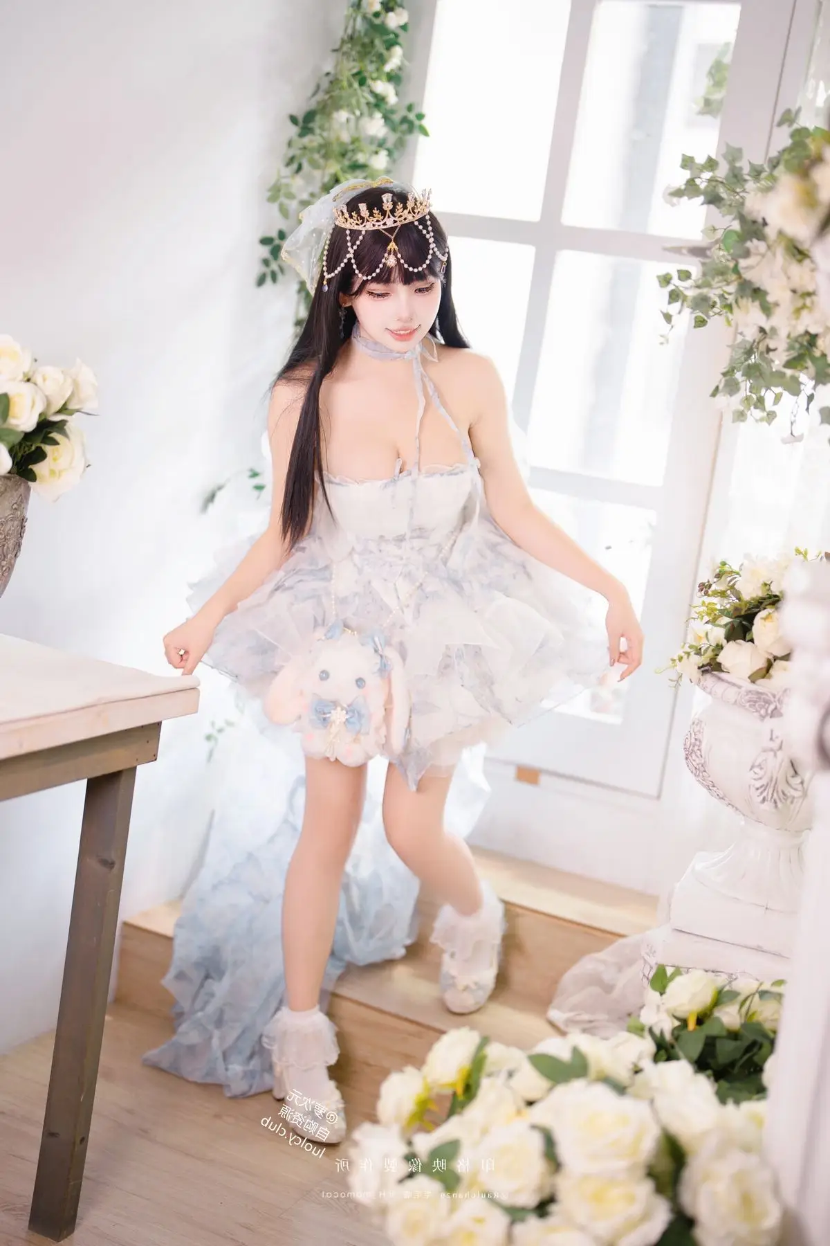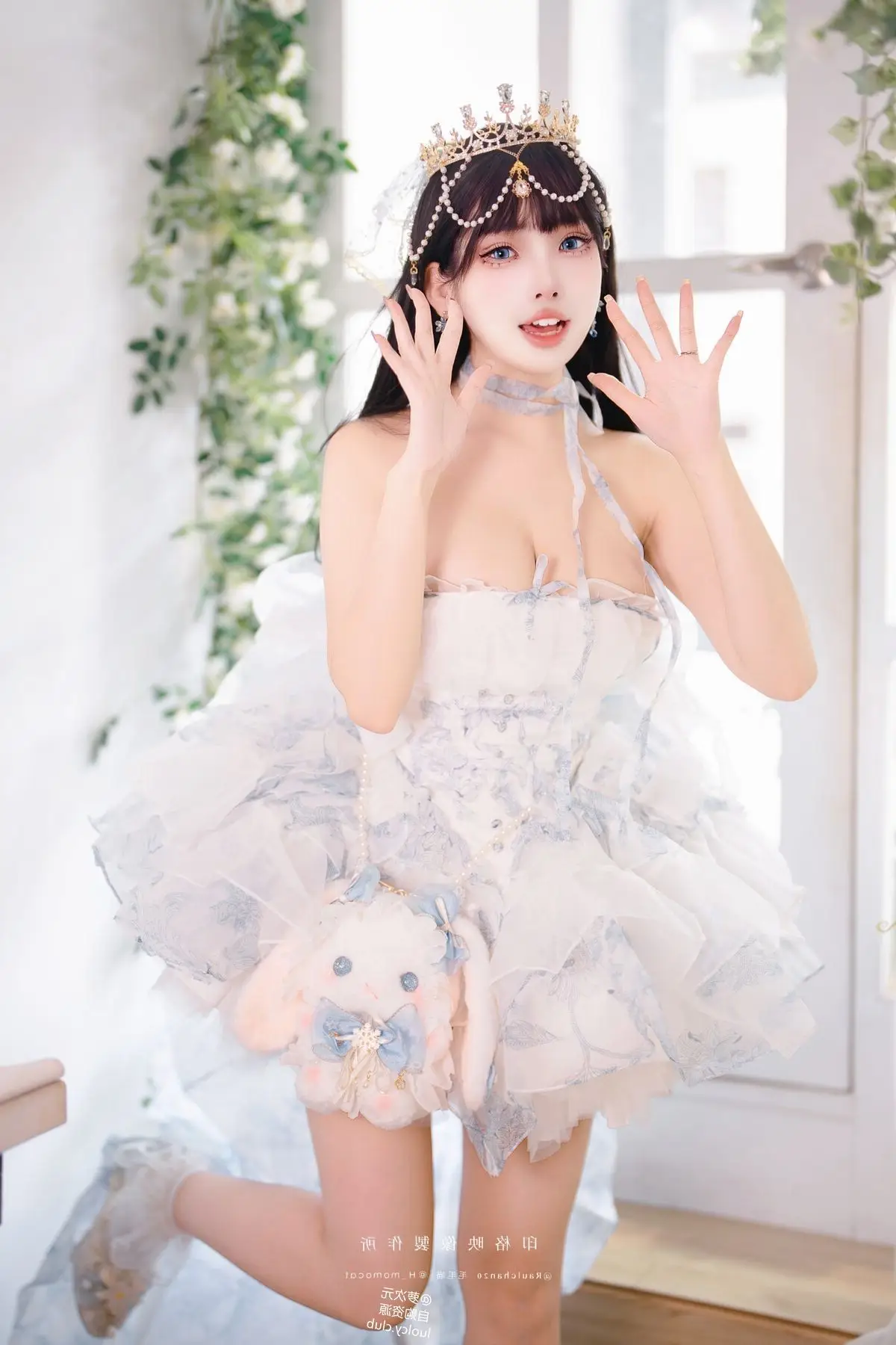 Step into a fairytale realm with Coser Mumu Momo in her captivating "Eternal Little Princess" birthday photoshoot. Mumu Momo embodies a sweet and ethereal princess adorned in a voluminous pastel white and blue dress complemented by a sparkling crown. Each photograph radiates a dreamy innocence and graceful charm as if she stepped right out of a storybook. The floral-decorated setting creates a romantic and mystical ambiance enhancing her pure beauty. This collection is more than just a birthday shoot it is an emotional and artistic cosplay masterpiece. Join us in admiring Mumu Momo's adorable and enchanting moments.