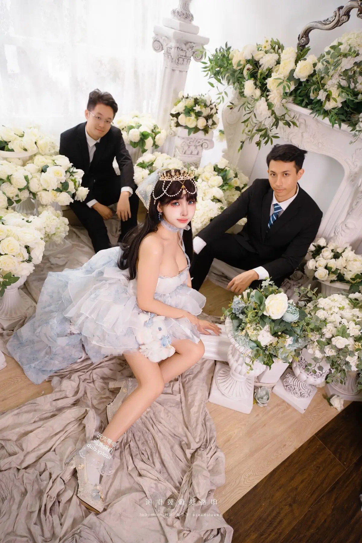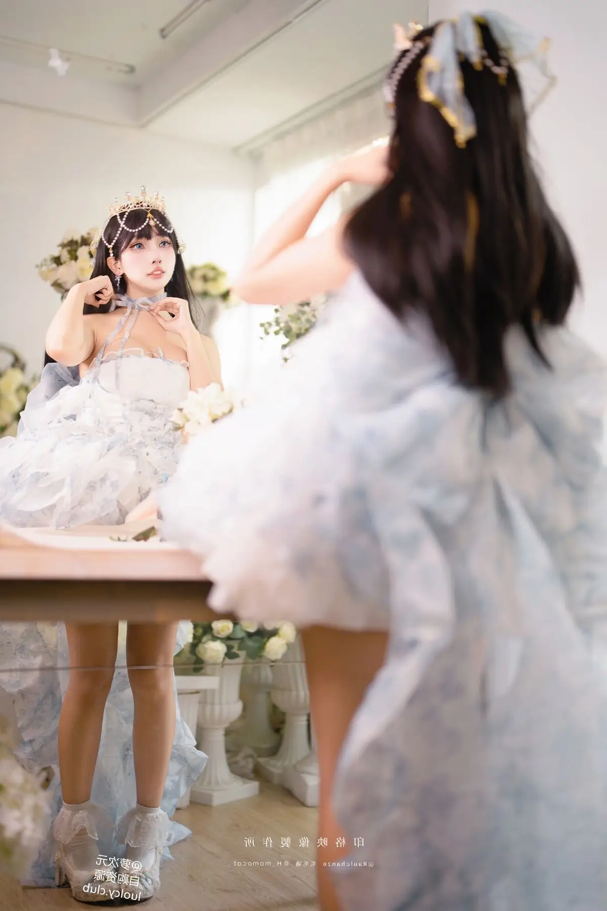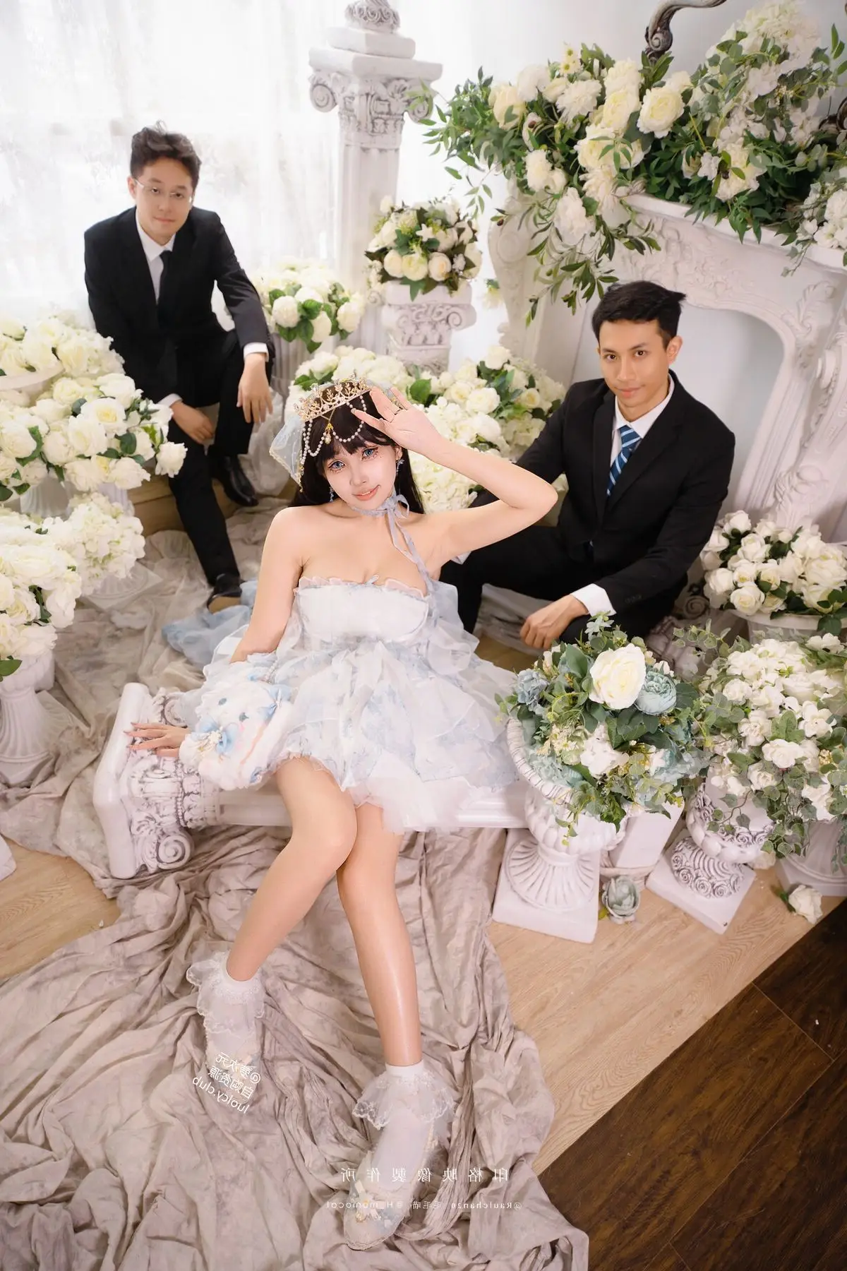 Step into a fairytale realm with Coser Mumu Momo in her captivating "Eternal Little Princess" birthday photoshoot. Mumu Momo embodies a sweet and ethereal princess adorned in a voluminous pastel white and blue dress complemented by a sparkling crown. Each photograph radiates a dreamy innocence and graceful charm as if she stepped right out of a storybook. The floral-decorated setting creates a romantic and mystical ambiance enhancing her pure beauty. This collection is more than just a birthday shoot it is an emotional and artistic cosplay masterpiece. Join us in admiring Mumu Momo's adorable and enchanting moments.