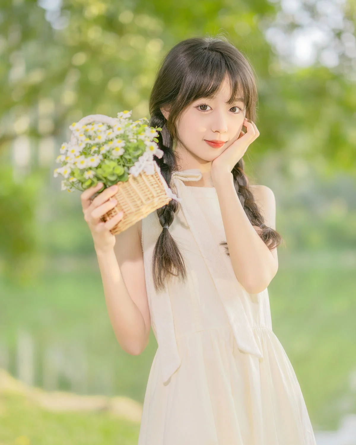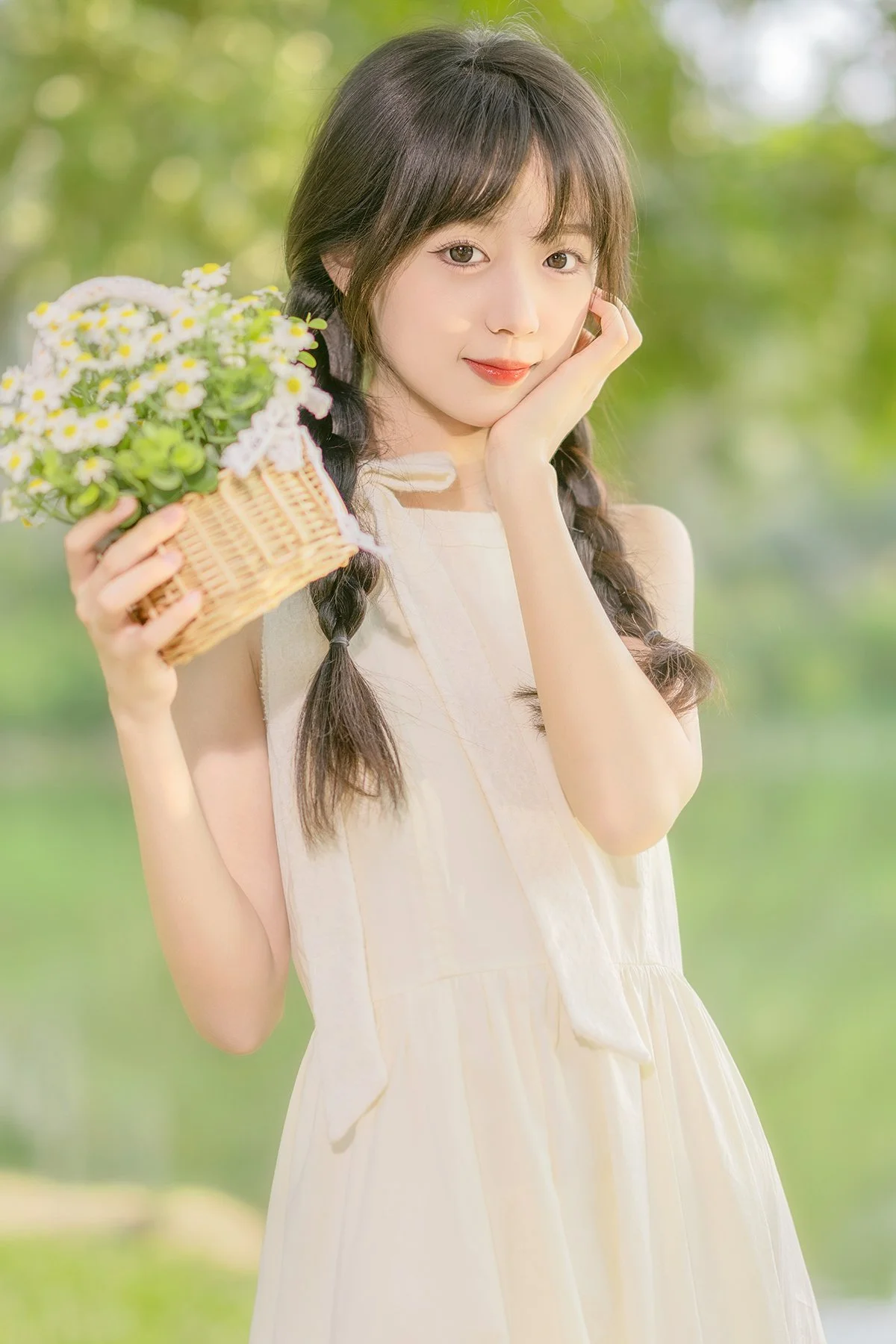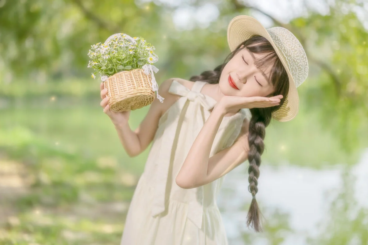 Immersed in the lush greenery of early spring, Mei Mei Xiao Yu radiates a gentle charm in this YiTuYu Art Language Vol.8896 collection. Her soft gaze and delicate features perfectly capture the essence of a peaceful morning spent in a sun-drenched garden where the grass just begins to sprout. Adopting a minimalist yet elegant Mori Girl aesthetic, she wears a light cream-colored dress that flows naturally, reflecting a sense of purity and grace. The choice of braided hair paired with a small basket of wildflowers adds a nostalgic and whimsical touch to the overall visual composition. The artistic language of this shoot relies heavily on soft pastel tones and natural bokeh, creating a dreamy, ethereal atmosphere that feels like a scene from a classic romantic novel. It is a beautiful celebration of youth and nature, providing endless inspiration for those who appreciate poetic and feminine photography styles.