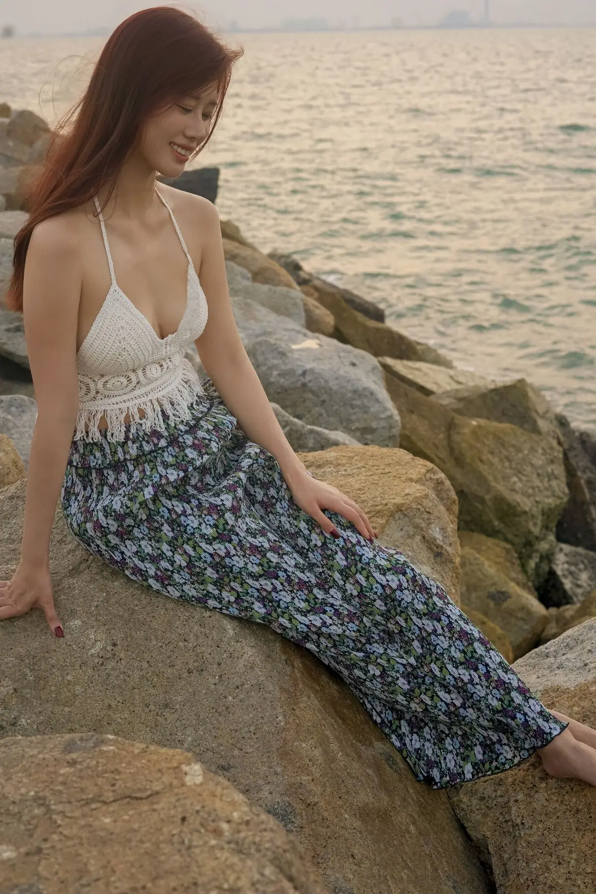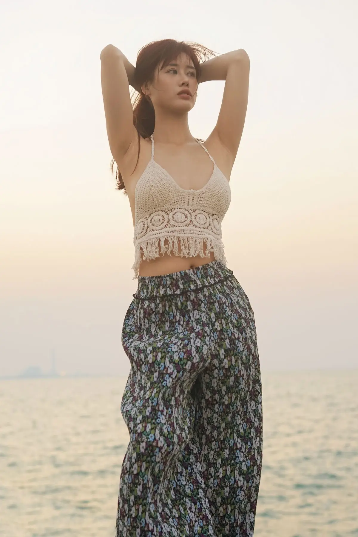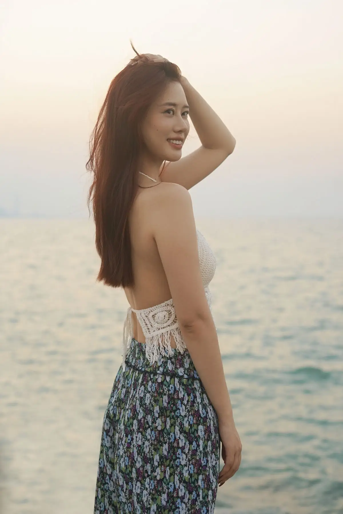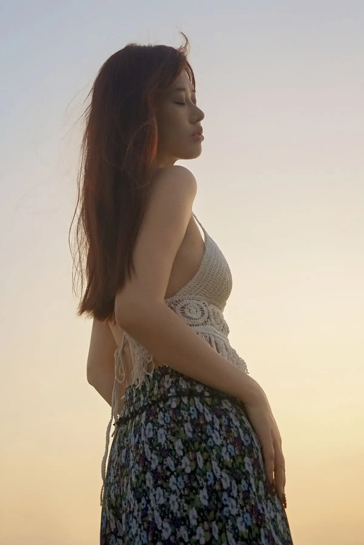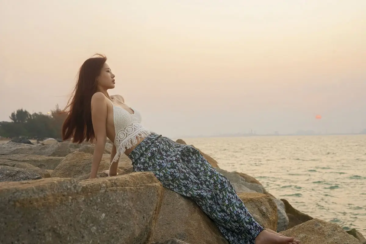 In the YiTuYu Vol.8725 collection, Chenaling_CL emerges as a pure and utterly captivating muse. With her flowing reddish-brown hair and a demure gaze over her shoulder, she creates an enchanting moment. The delicate backless lace top and gentle floral skirt accentuate the model's natural ethereal beauty. The backdrop of a sunset or sunrise sky with soft light further highlights her graceful features and dreamy aura. This photograph not only captures physical allure but also conveys profound emotion a perfect blend of Asian beauty and nature's romance. It is a true work of art where every detail tells a story of elegance and charm.#ChenalingCL #YiTuYu #AsianMuse #SunsetVibes #NaturalBeauty