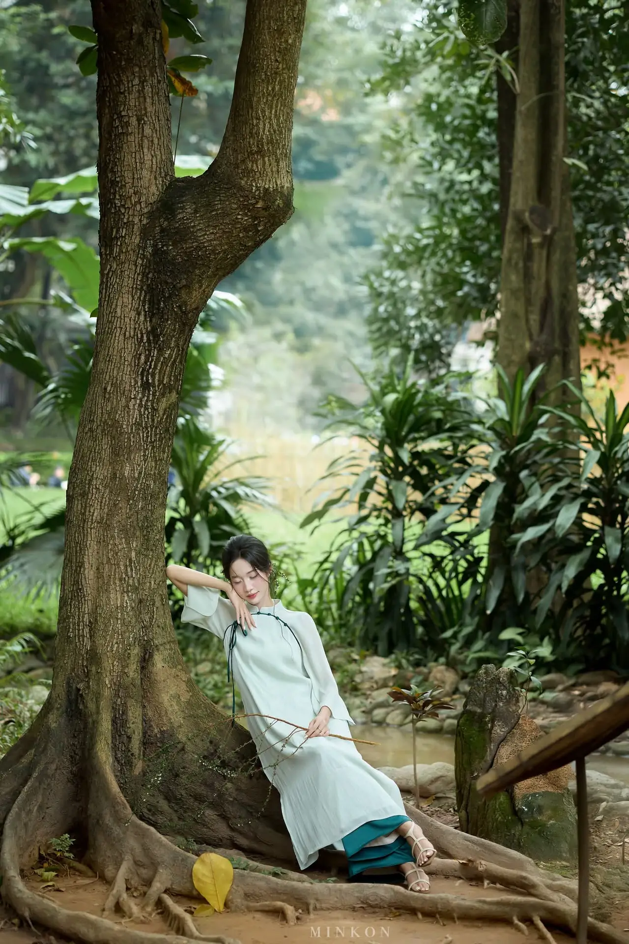 Vietnamese Grace: Elegant Portrait of a Young Woman in Lush Nature