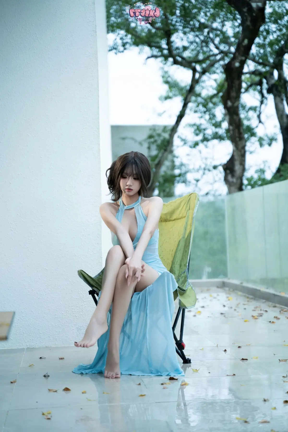 Immerse yourself in the captivating world of Coser Qi Qi Yao Guai O with her stunning Green Wilderness (绿野) photo collection. In this particular frame, she exudes an elegant and gentle charm, dressed in a soft, flowing aquamarine gown that gracefully highlights her slender figure. Her relaxed pose on a simple chair, coupled with a dreamy gaze, creates an emotionally rich tableau. The natural setting, bathed in soft light, further accentuates her pristine beauty, evoking a sense of tranquility and irresistible appeal. This is an artistic and serene moment, showcasing the coser's grace and captivating presence.#Coser #QiQi #YaoGuaiO #GreenWilderness #BlueDress #ArtisticPhotography #NaturalBeauty