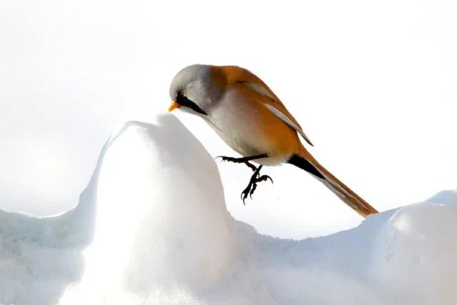 Experience the enchanting beauty of nature with these breathtaking images of Bearded Reedlings (Panurus biarmicus) navigating the frost-covered wetlands of Daqing, Heilongjiang. Known for their distinctive facial markings and acrobatic movements, these small, social birds—often called Bearded Tits—create a striking visual contrast against the pristine white snow and golden reed beds of northern China. This collection captures the essence of winter survival as these resilient creatures forage for seeds amidst the ice and wind.For birdwatching enthusiasts and professional wildlife photographers, the sight of a Bearded Reedling in its natural snowy habitat is a rare and rewarding find. The soft, natural lighting of the Heilongjiang winter perfectly highlights the warm, tawny plumage and delicate features of these birds, making every frame a work of art. These photographs not only showcase the unique biodiversity of the region but also offer a peaceful glimpse into the quiet life of avian species in extreme climates.