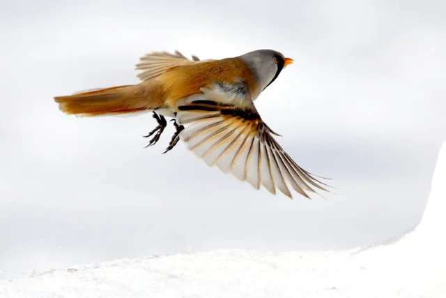 #BeardedReedling , #WinterWildlife , #BirdPhotography , #NatureLovers , #DaqingHeilongjiang , #WildlifeInSnow , #BirdWatching , #NaturePhotography