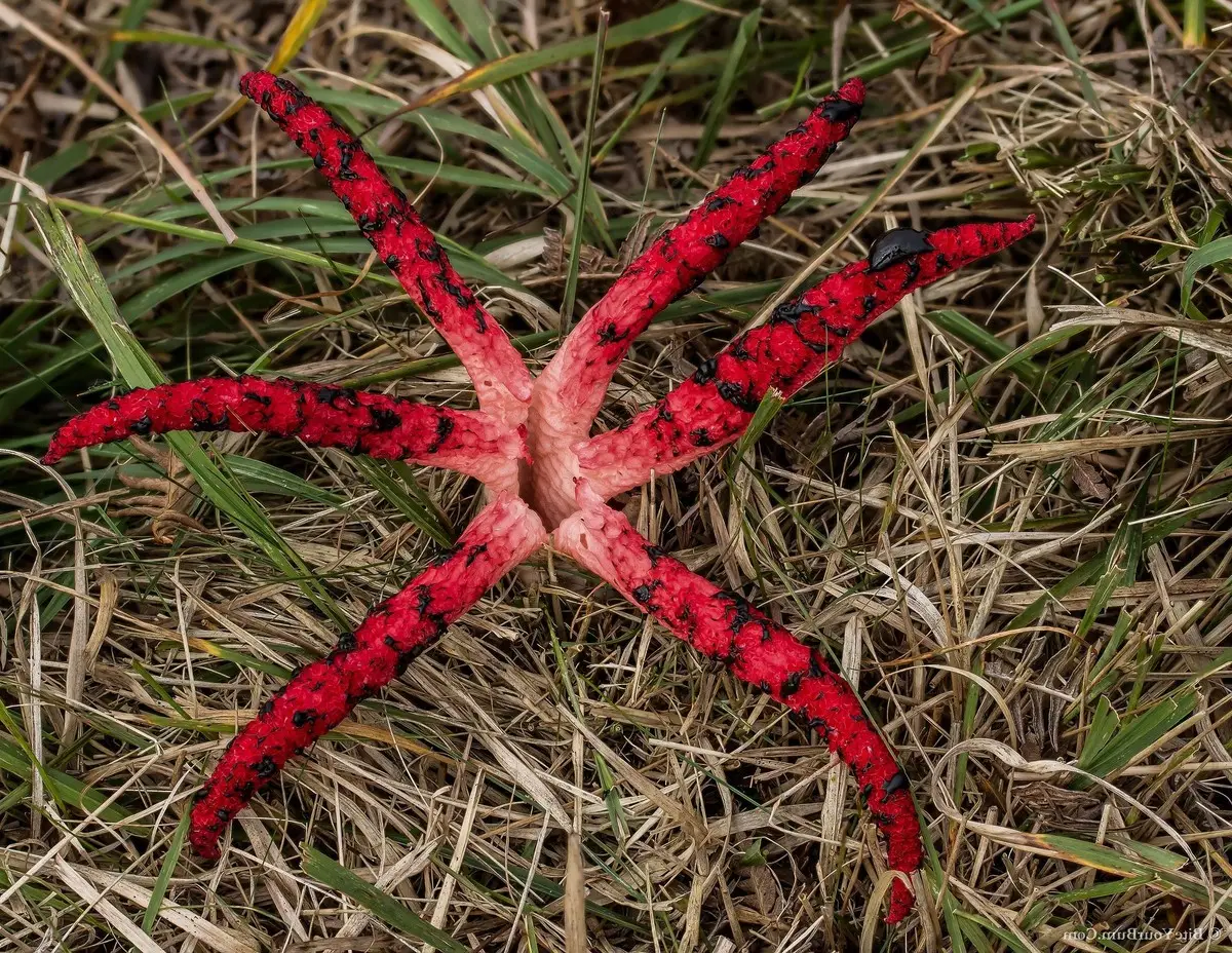 Deep within the damp cool forests of Europe a striking red organism emerges from the earth resembling monstrous tentacles This is the Devil's Fingers mushroom or Clathrus archeri This peculiar fungus boasts an eerie surreal appearance with vibrant red arms that evoke images of a devil's hand Beyond its visual impact the Devil's Fingers is renowned for its unique spore dispersal strategy It emits a pungent foul odor akin to decaying carrion which effectively attracts flies These insects then inadvertently carry and spread its spores throughout the forest While not considered poisonous it is generally advised to avoid consumption It truly stands as a captivating subject for nature photography enthusiasts and those eager to explore the forest's strange inhabitants#DevilsFingersMushroom #ClathrusArcheri #BizarreFungi #ForestCreatures #NatureWonders