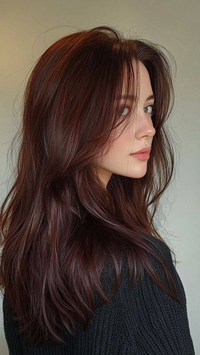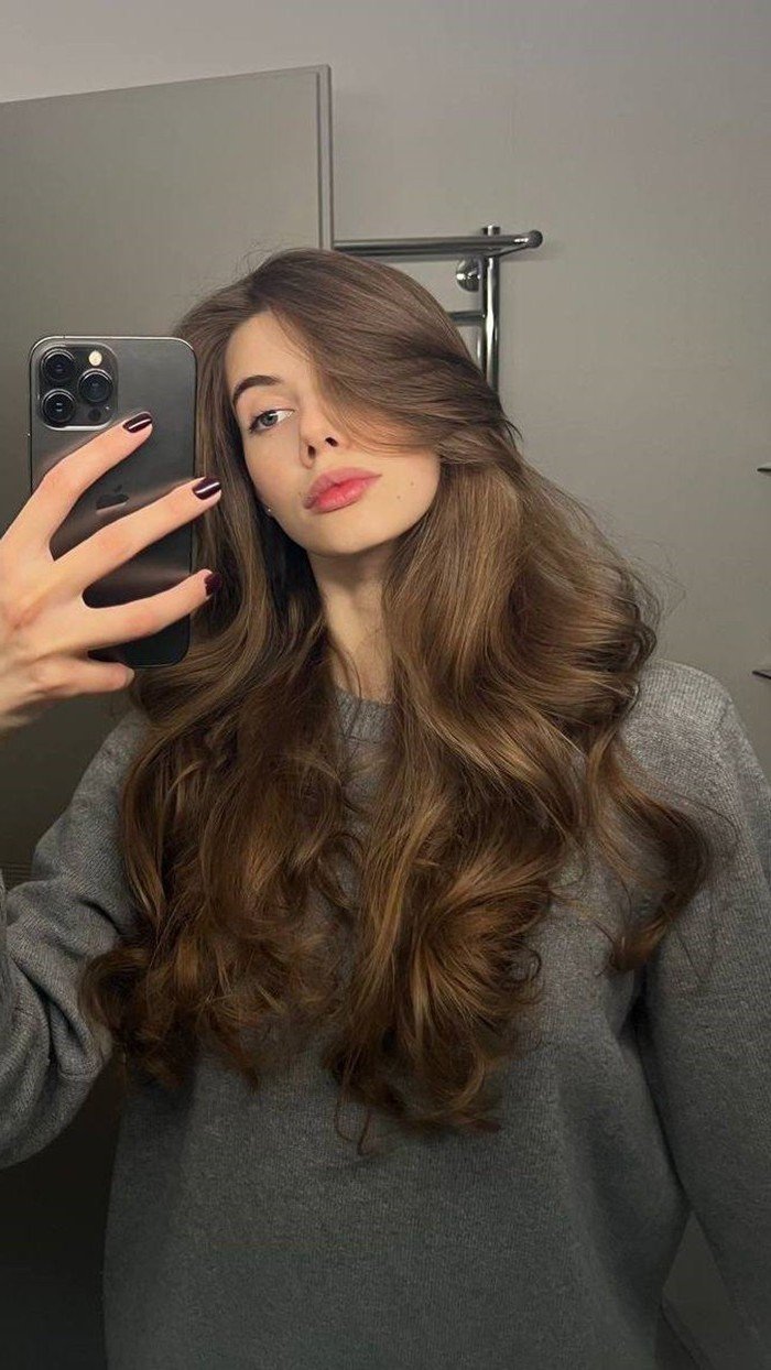 This photo perfectly showcases the natural and captivating beauty of brown hair With its warm deep brown shade subtly infused with a gentle Korean orange tint the girl's long smooth hair not only highlights her fair skin but also brings an elegant and gentle appearance This is an ideal choice for anyone wanting to change their look while maintaining a refined touch This hairstyle easily pairs with various fashion styles from dynamic casual to elegant office wear helping you always feel confident and radiant This skin-tone enhancing brown hair will surely be a popular trend among girls this year bringing a beautiful Korean girl look