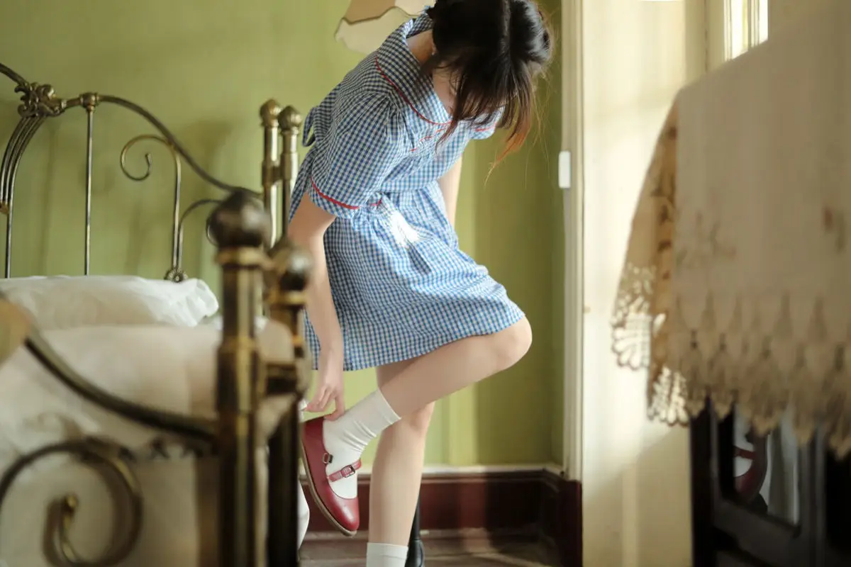 In this enchanting capture from the YiTuYu Vol.8610 collection, model Dian Dian radiates a gentle charm. Her elegant striped dress paired with the delicate string of pearls she gracefully holds creates an aura of innocent allure. The soft, ambient lighting beautifully highlights her expressive features and delicate silhouette, inviting viewers into her captivating world. This pose is more than just a photograph; it's a timeless narrative of beauty. As the original sentiment suggests, she might fade or wither, but her presence remains captivating to the beholder. Dian Dian truly embodies a muse, bringing grace and subtle elegance that makes her an unforgettable highlight in this artistic series.