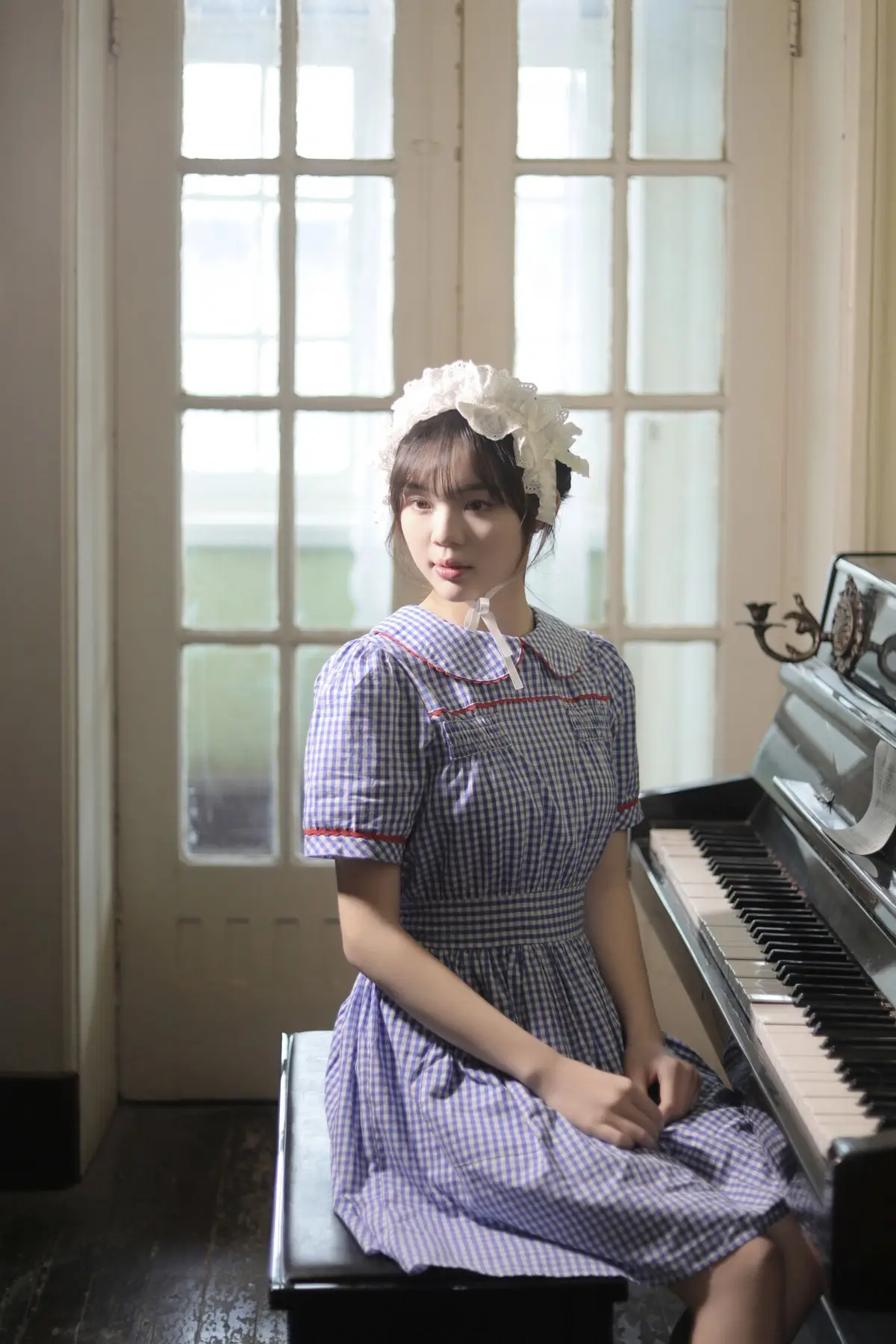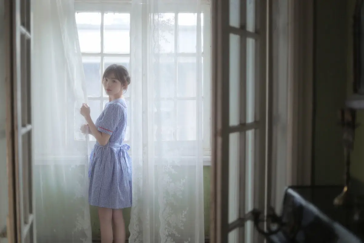 Bathed in the soft, diffused light of a quiet afternoon, Qian An An captures the essence of sophisticated mystery in her latest Black Pearl series. The minimalist black ensemble, featuring daring cut-outs and a sleek silhouette, perfectly accentuates her graceful posture and poetic expression. There is a beautiful harmony between the architectural lines of the window and the fluid curves of her form, creating a visual narrative that feels both intimate and cinematic. This piece of visual art transcends simple fashion photography, leaning into a moody and nostalgic vibe where every shadow seems to tell a story. Her effortless charm and the monochromatic palette evoke a sense of timeless elegance, making this a truly captivating moment of artistic inspiration for those who appreciate the intersection of bold style and soulful expression. It is a celebration of femininity and modern aesthetic captured in a single, breathless moment.