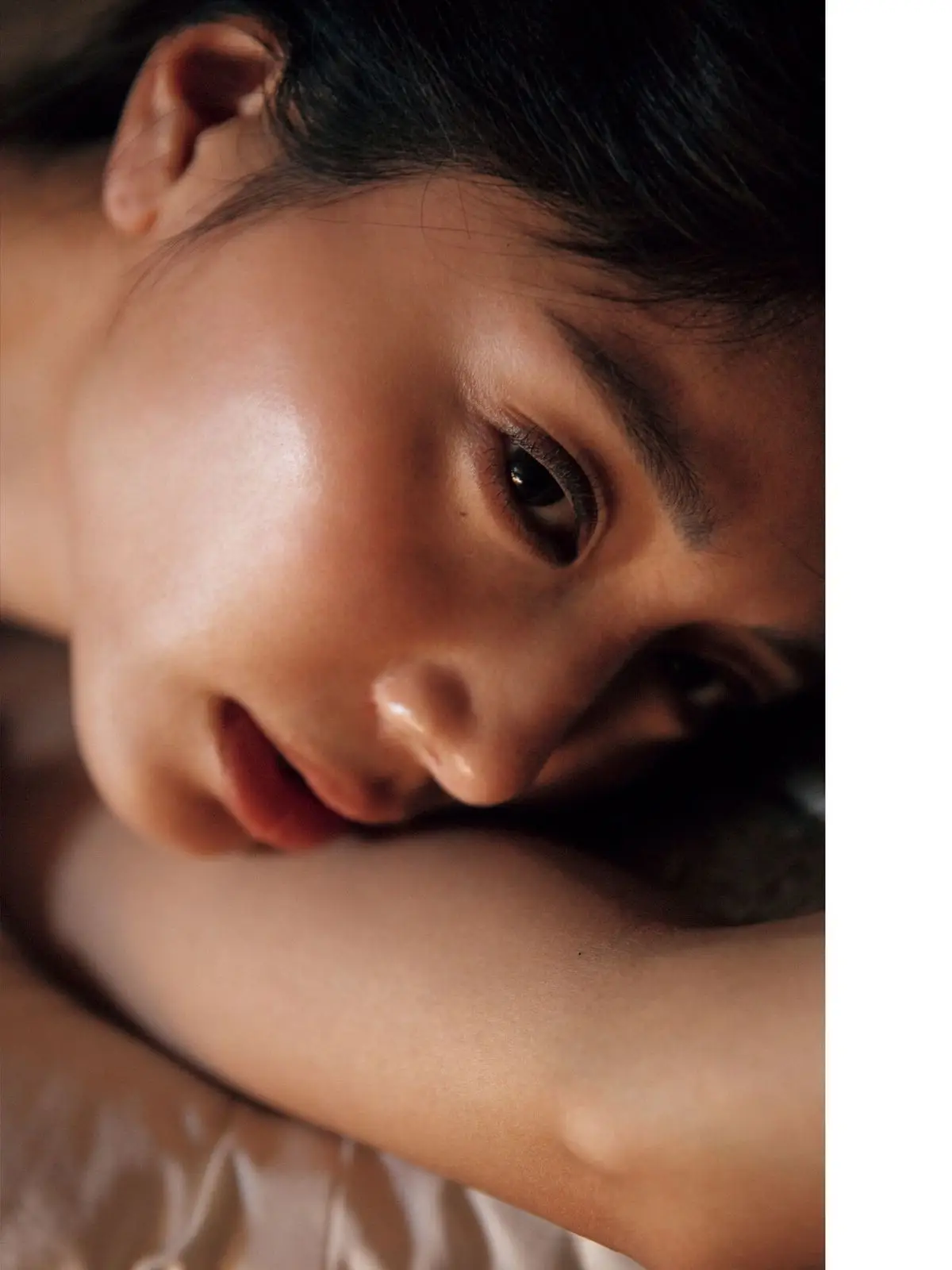 This exquisite close-up photograph reveals the serene and captivating beauty of Saito Yasuyo 斎藤恭代. Her dewy skin slightly parted lips and gentle gaze create a moment of quiet allure. Soft lighting accentuates every facial feature from her deep eyes to her lustrous dark hair highlighting her natural charm and appeal. This image is part of the special photo collection Part02 offering an intimate glimpse into Saito Yasuyo's grace and charisma. Viewers will appreciate the authentic and engaging presence she projects in this stunning portrait.#SaitoYasuyo #JapaneseModel #Portrait #Beauty #PhotoCollection