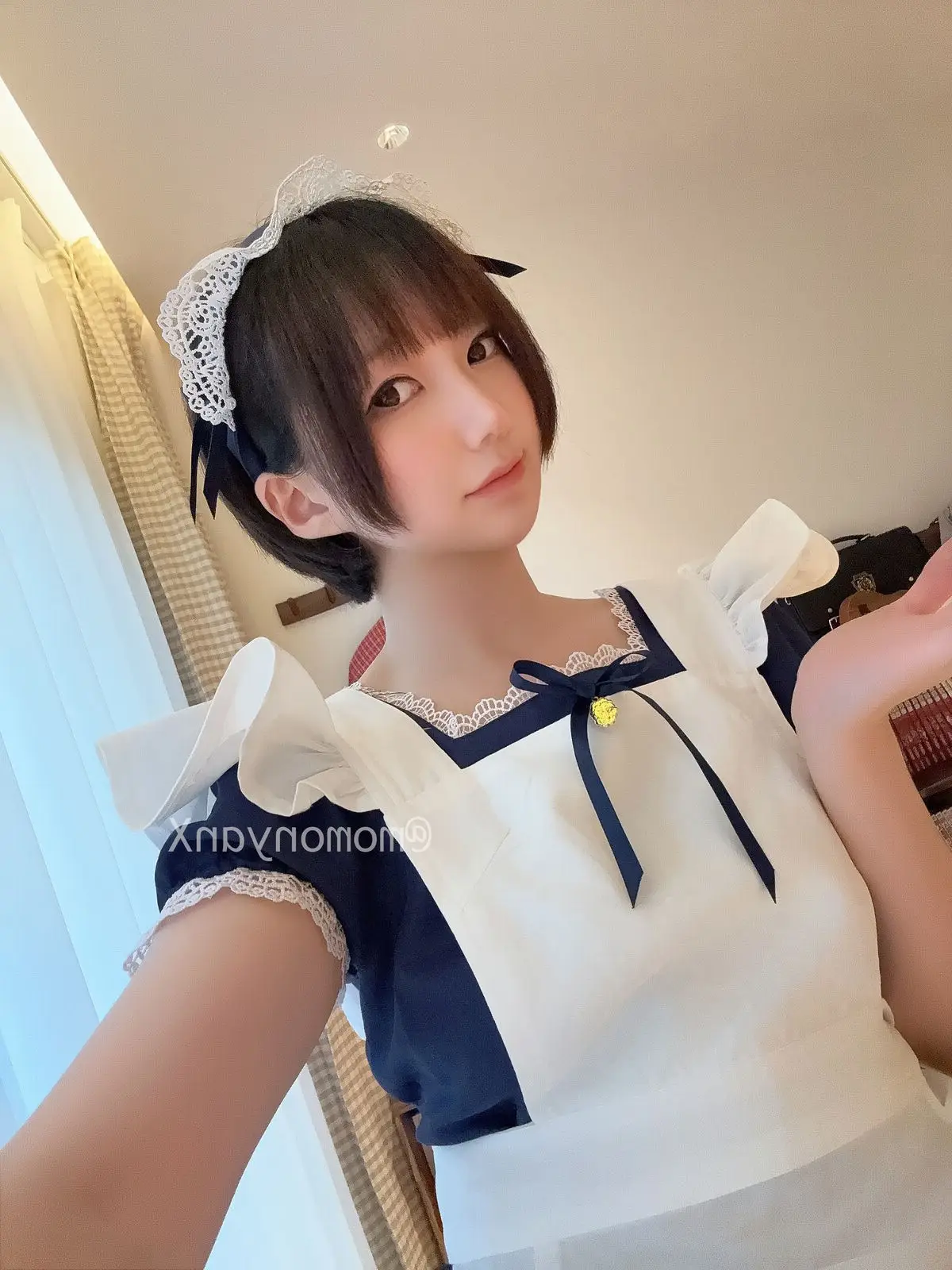 Immerse yourself in the world of cosplay with NAGISA魔物喵 in this special Part02 photo collection. The talented coser transforms into a maid with an irresistible gentle and captivating beauty. The classic maid uniform is exquisitely designed with navy blue and pristine white adorned with soft lace highlighting an elegant charm. NAGISA魔ut喵's short shoulder-length hair and large clear eyes exude innocence leaving viewers enchanted. Every detail from the apron to the lace headband contributes to a perfect image showcasing meticulous effort. This is definitely an unmissable part of the impressive Part02 compilation.#NAGISA #maidcosplay #maiduniform #cosplaygirl #photocollection