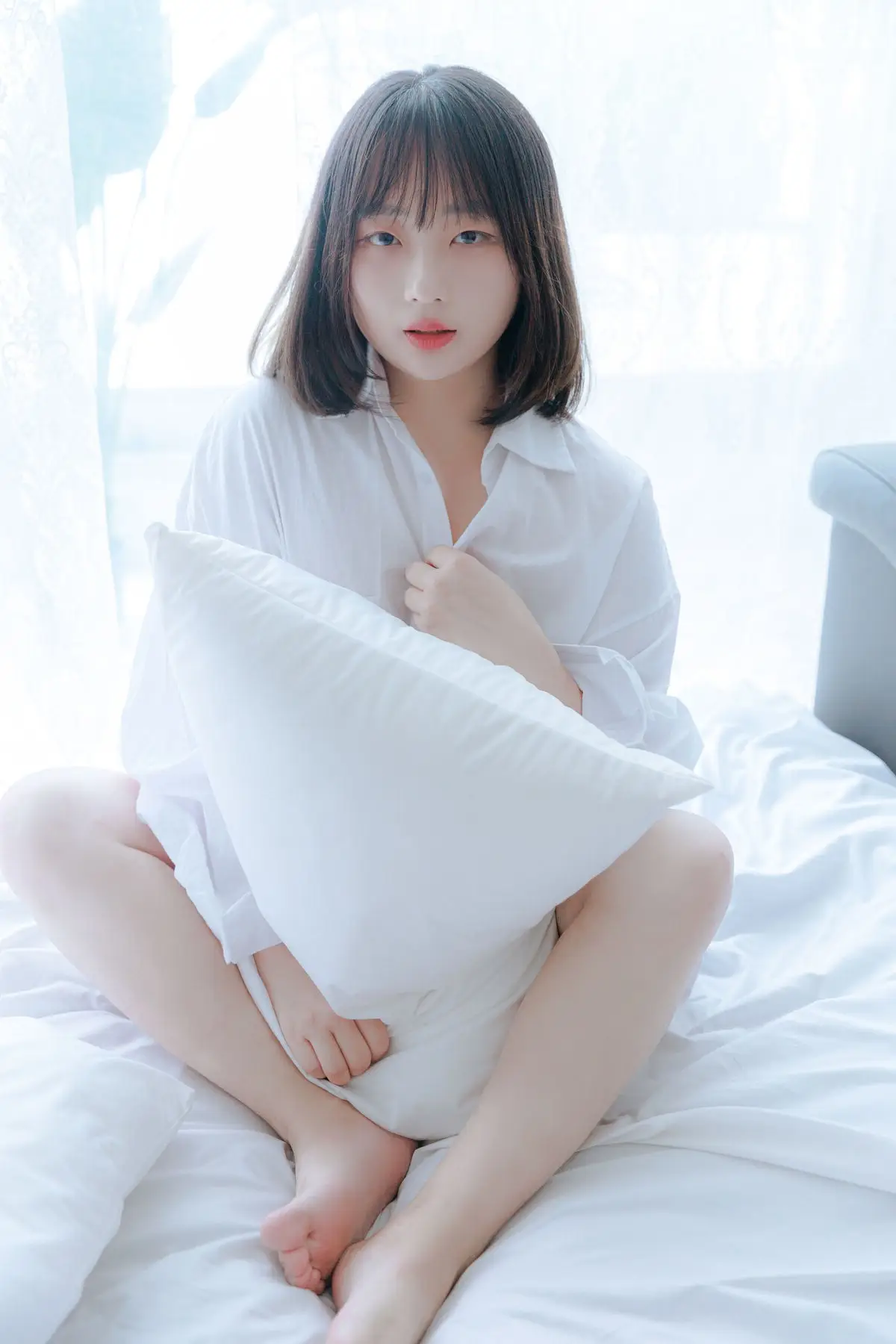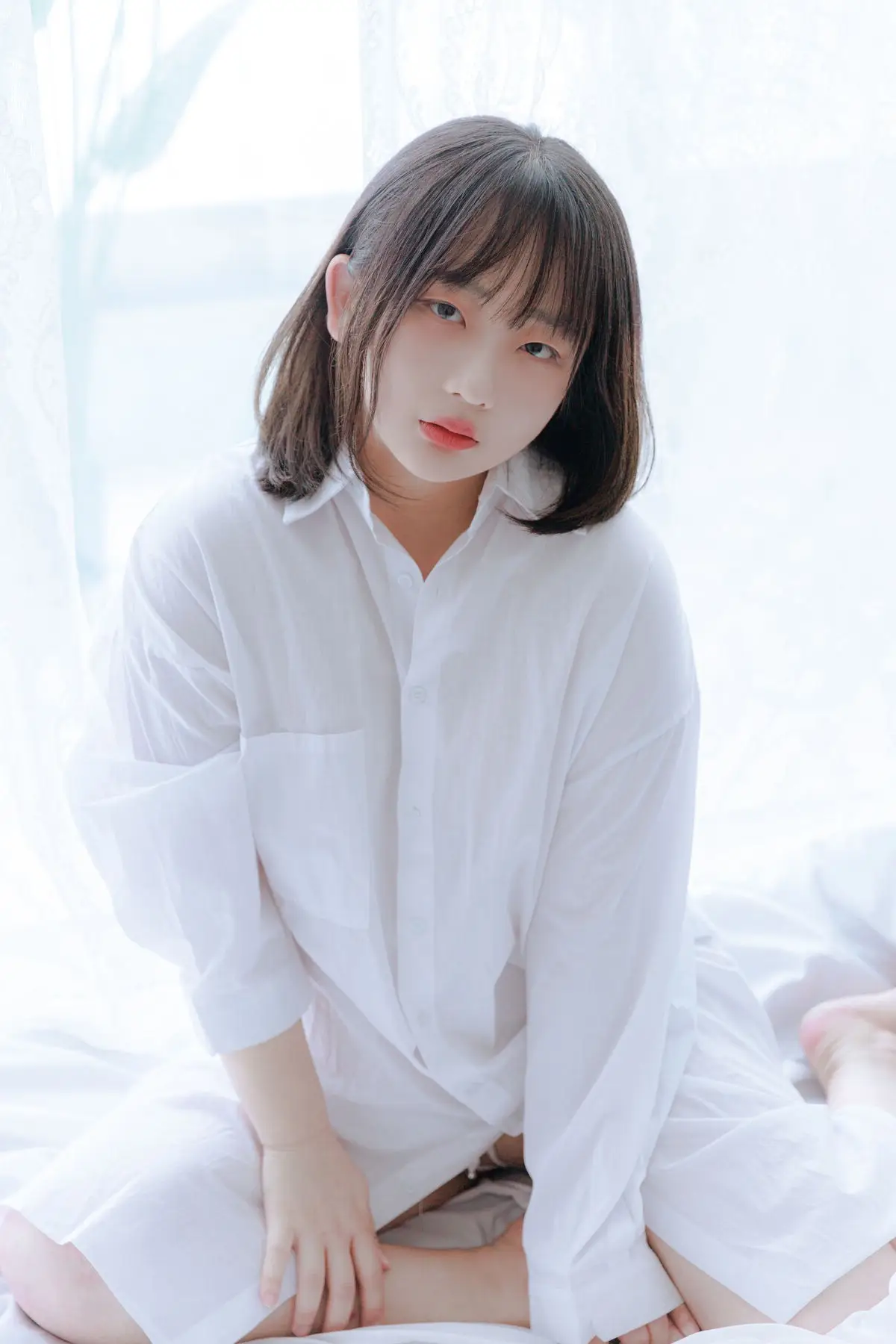 Immerse yourself in A Wet Day with Mozzi 모찌 where pure and gentle beauty is subtly expressed. In a space filled with soft light Mozzi appears with a serene demeanor her eyes gently closed as if lost in private contemplation. Her pristine white top gracefully accentuates her form creating an image that is both alluring and modest. This collection is more than just photographs it is a narrative of inner peace and the natural beauty of a woman on a romantic rainy day. Discover the authentic and emotional moments captured from Mozzi.#Mozzi #AWetDay #GentleBeauty #PhotoCollection #FemaleFashion