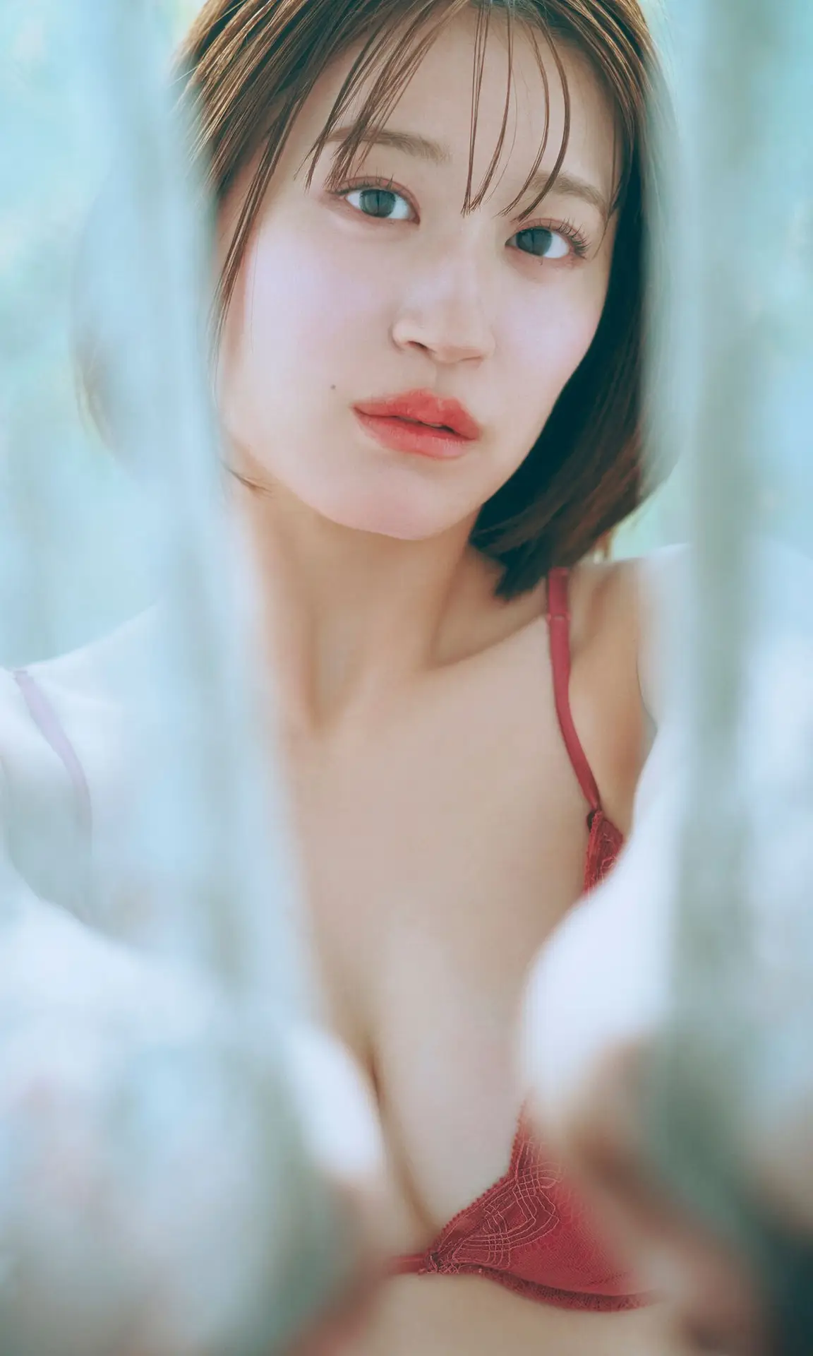 This captivating image offers a delicate glimpse into Kaede Kimura's (木村楓) digital photo book titled "Koihsuru Ekubo," released by FRIDAY. The Japanese model exudes a gentle and ethereal beauty, her long flowing hair and flawless skin illuminated by soft, natural light. Her gaze, directed subtly to the side, conveys a thoughtful yet undeniably alluring expression. The exquisite white lace bra gracefully accentuates her feminine contours, adding a touch of subtle sensuality. The entire composition emanates a sense of serene purity and understated charm, inviting viewers to delve deeper into Kaede Kimura's captivating allure and graceful presence within each page of this remarkable photo collection. A truly emotional photographic artwork.#KaedeKimura #JapaneseModel #FRIDAYPhotobook #KoihsuruEkubo #AsianBeauty