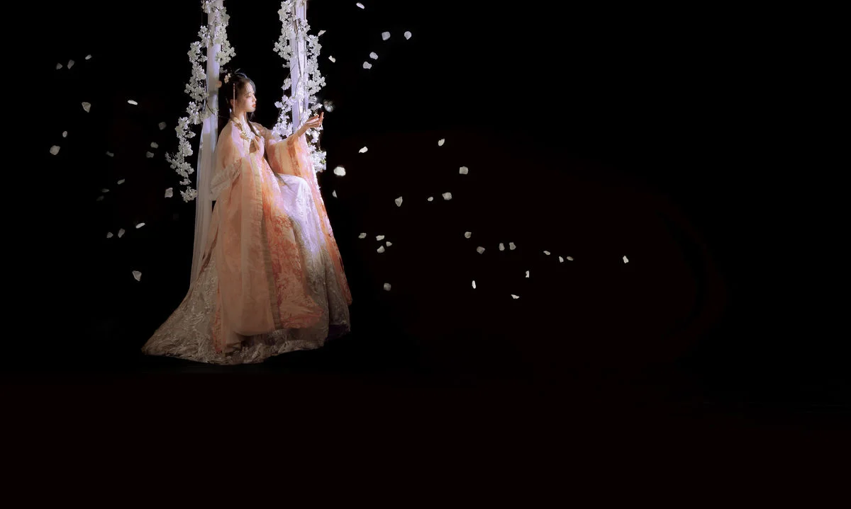 Ethereal Garden Portrait Photography: Art Language Vol.9116 Featuring Model Zhi on a Floral Swing – Aesthetic Outdoor Photoshoot Inspiration