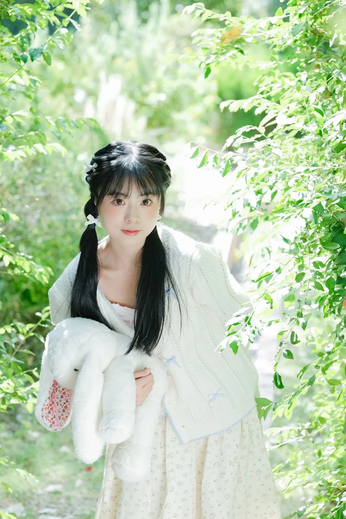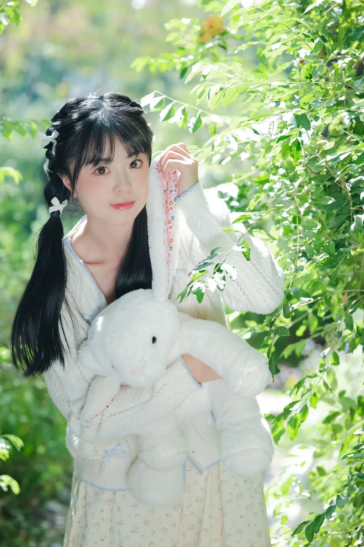 Discover the breathtakingly poetic beauty of Yi Zhi Nuan Nuan in this Vol.8651 photo collection. Amidst a lush green natural setting the muse appears with a gentle and pure charm like a sweet dream. Her dark hair elegantly braided combined with light attire creates a truly poetic image. Holding a pristine white plush rabbit Yi Zhi Nuan Nuan exudes a sense of peace and innocence. Each moment is subtly captured portraying a world full of dreams where natural beauty and childlike purity intertwine captivating every gaze.#YiZhi #NuanNuan #PoeticBeauty #DreamyVibes #Muse #NaturePortrait #YiTuYu