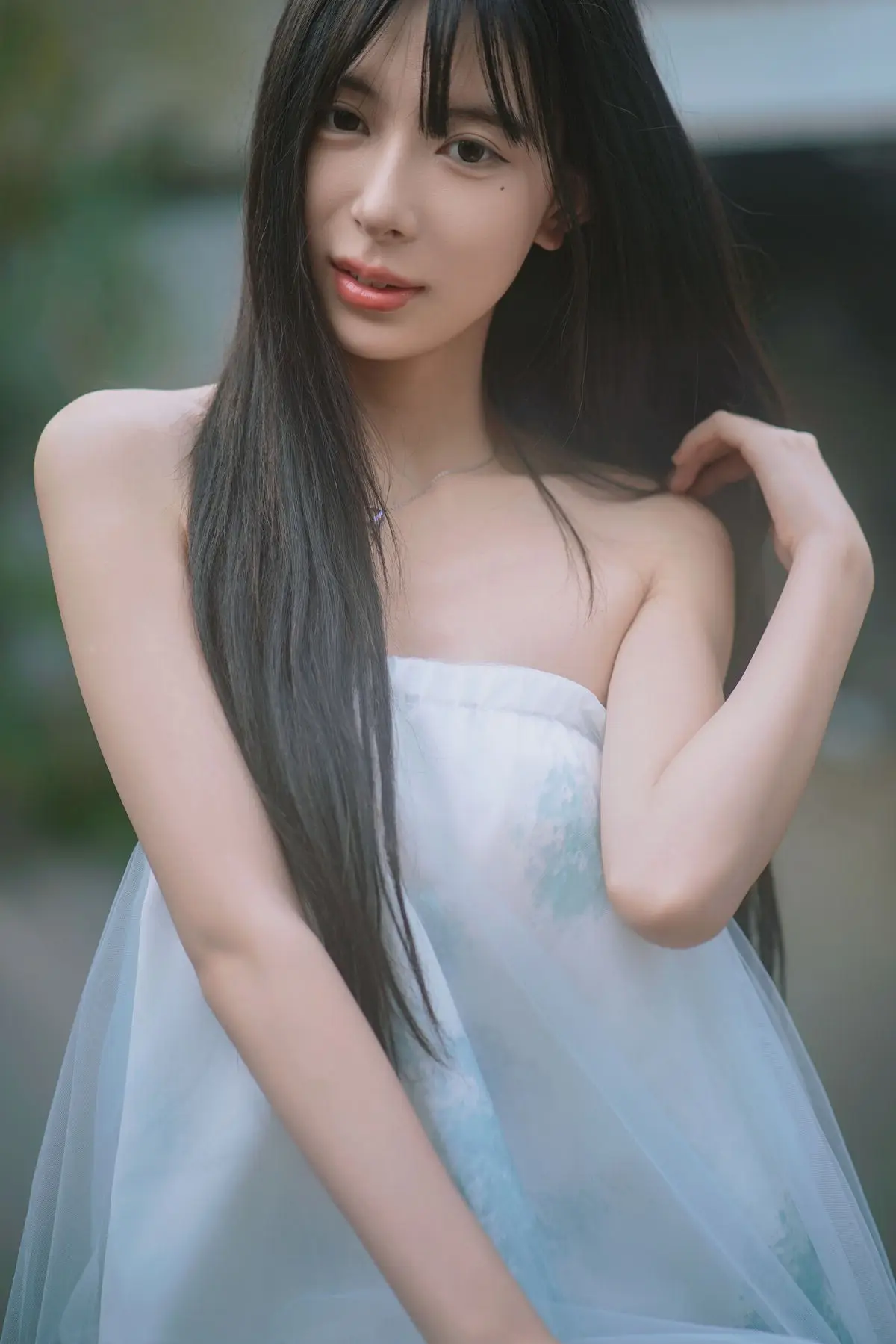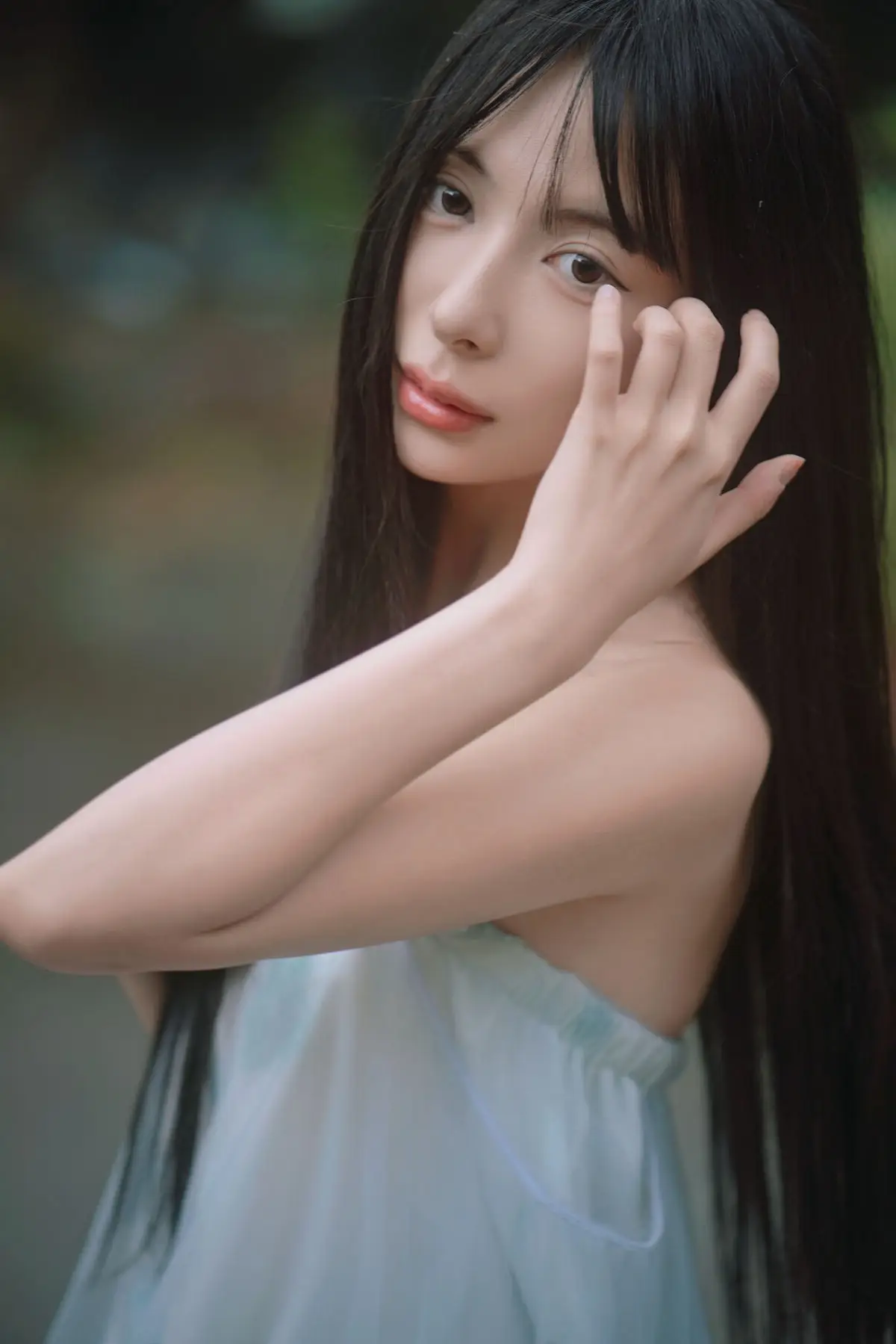 Immerse yourself in the captivating world of Shika小鹿鹿 from the enchanting Dokidoki2 collection. This photograph beautifully captures her pristine and gentle charm, a sight that truly melts hearts. Shika小鹿鹿 appears with flowing long hair, partially framing her face, creating an alluring sense of mystery. Her eyes are clear and innocent, yet hold a hint of playful mischief that is irresistible. The simple white top further enhances her pure and ethereal beauty. Every detail, from the soft natural lighting to her delicate expression, blends harmoniously to form an emotionally rich artistic moment. This is more than just a picture; it is an invitation to explore the exquisite nuances of Asian beauty, leaving viewers deeply moved and utterly unforgettable.#Shika #Dokidoki2 #BeautifulGirl #AsianBeauty #PureBeauty