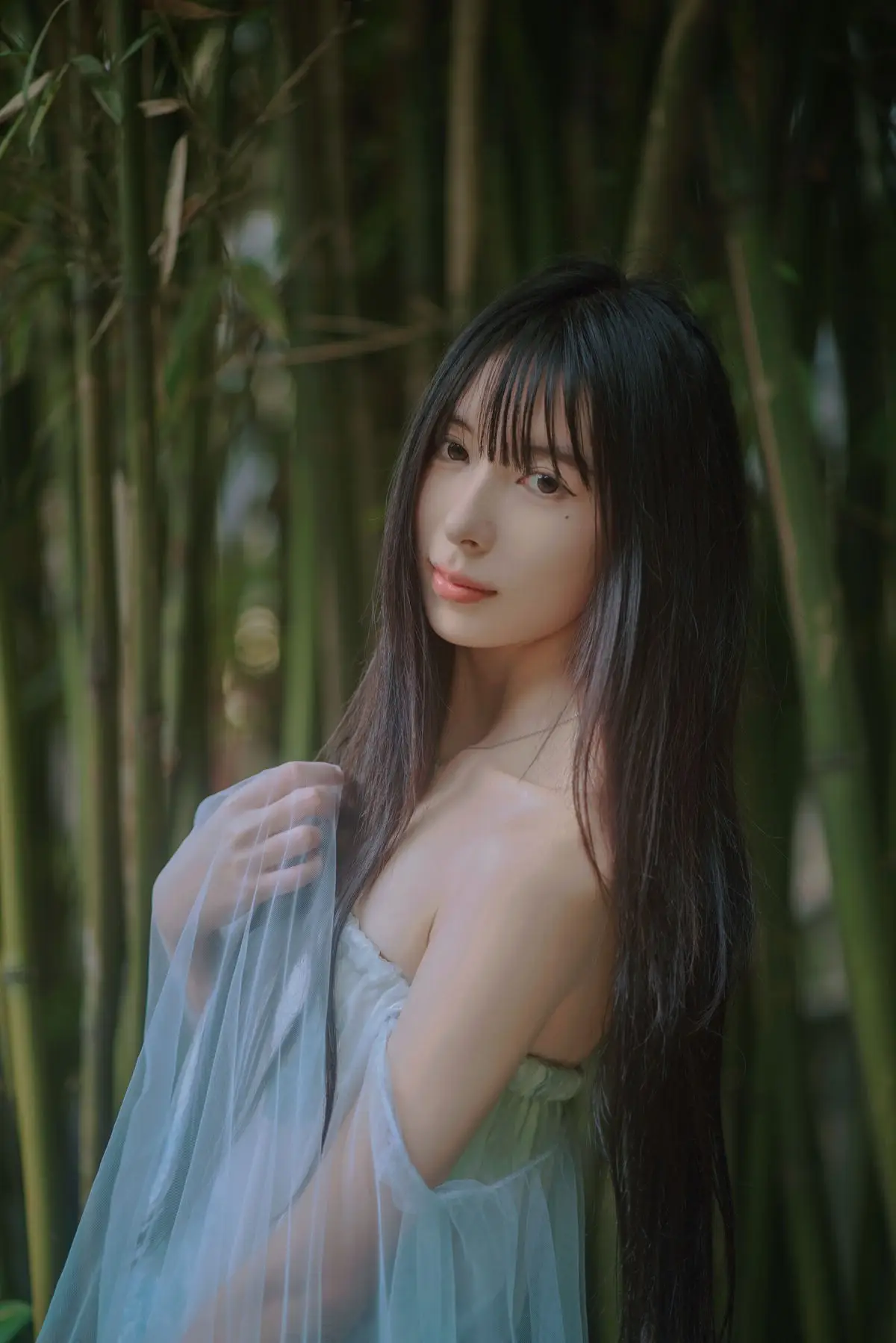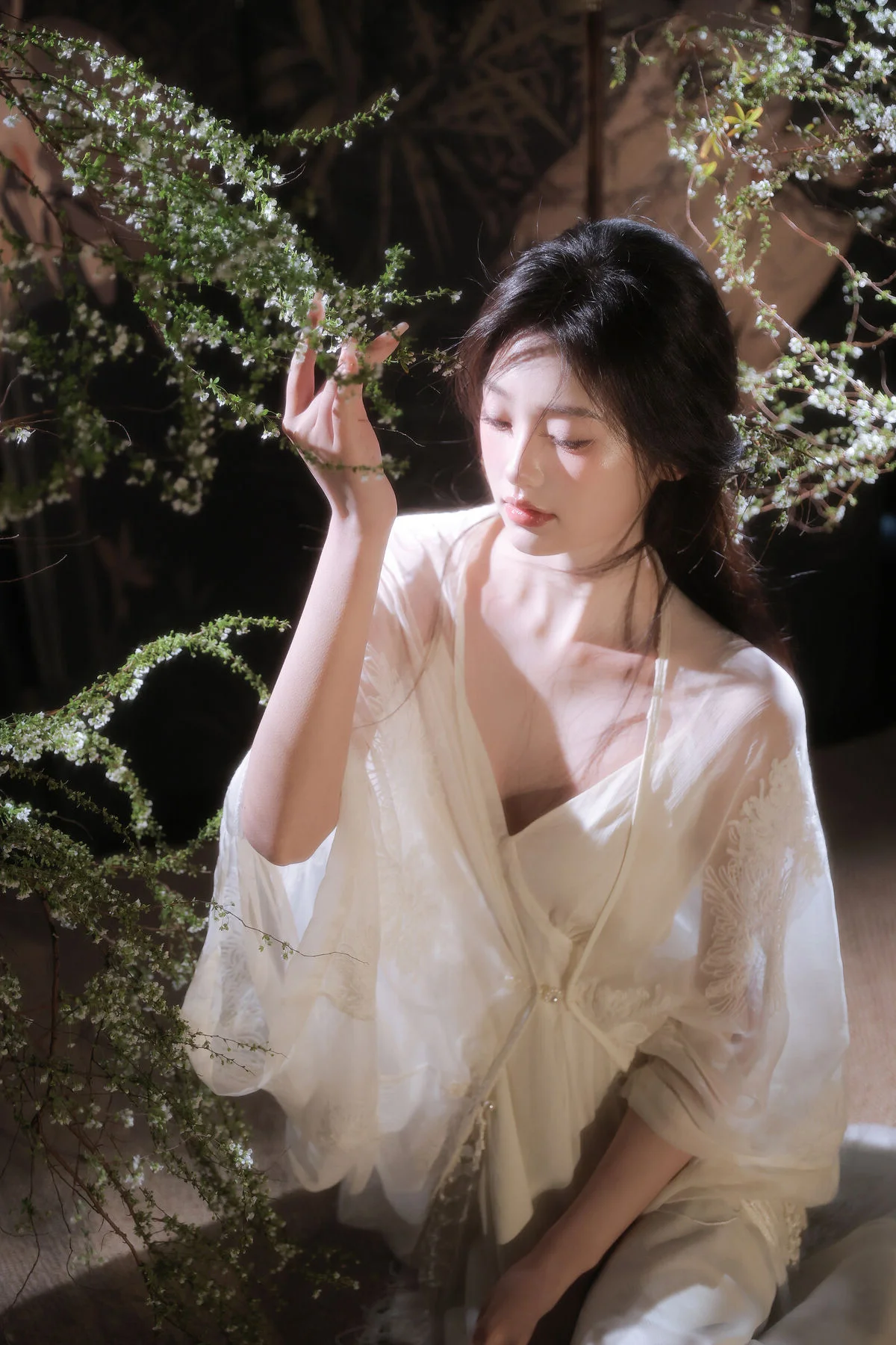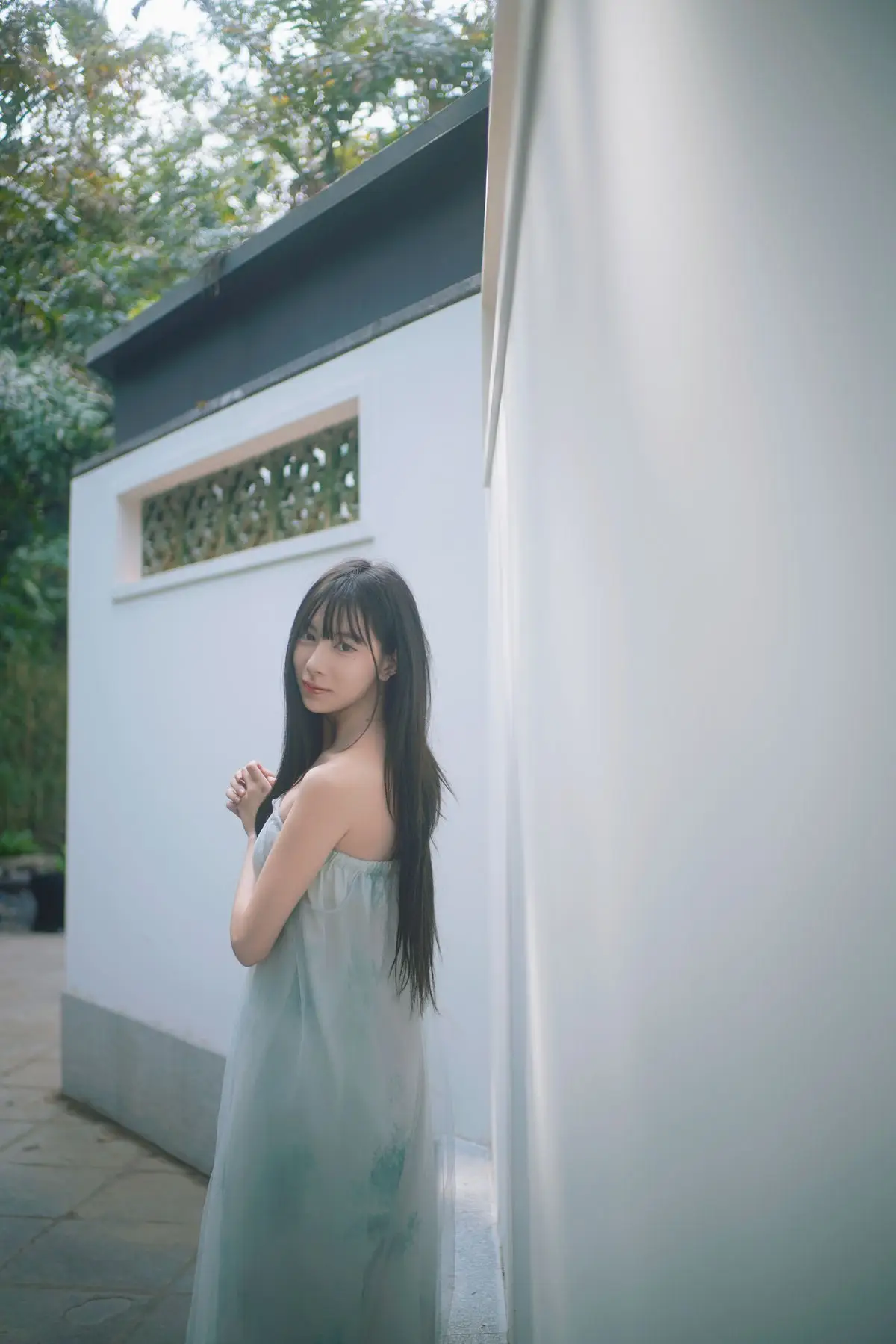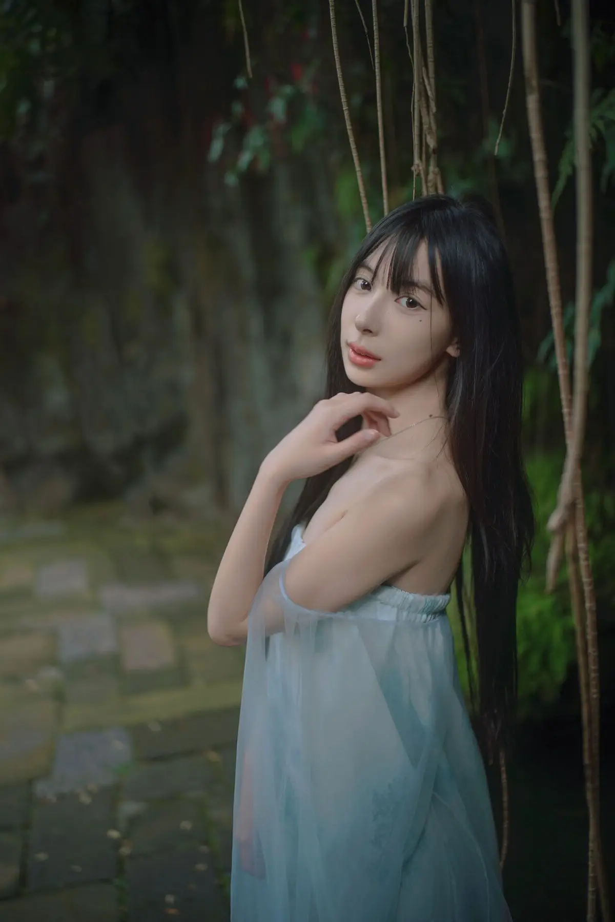 In the YiTuYu Vol.8827 collection model Jia Yi emerges as an otherworldly muse exuding pure and captivating beauty. She dons a flowing ivory-white dress its soft silk fabric embracing her figure creating an ethereal and refined elegance. Gentle light cleverly illuminates her highlighting her fair skin and dreamy aura. Every detail in the photograph speaks of meticulous artistry from her lustrous dark hair to her deep alluring gaze. The surrounding lush green foliage further enhances her natural charm allowing viewers to perceive a perfect harmony between art and humanity a tranquil moment filled with emotion.#JiaYi #EtherealMuse #PureBeauty #YiTuYu #ArtPhotography