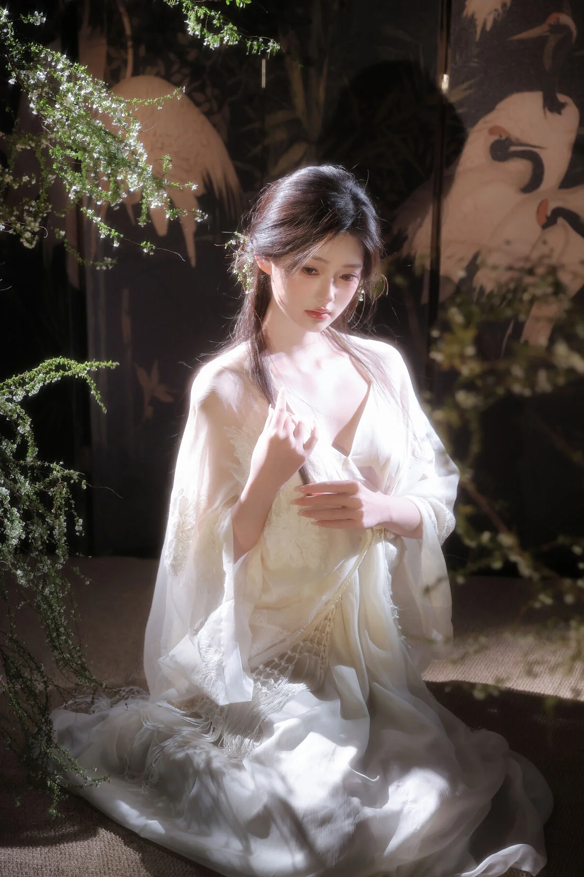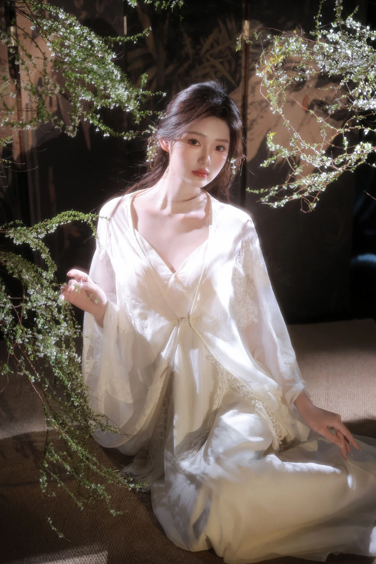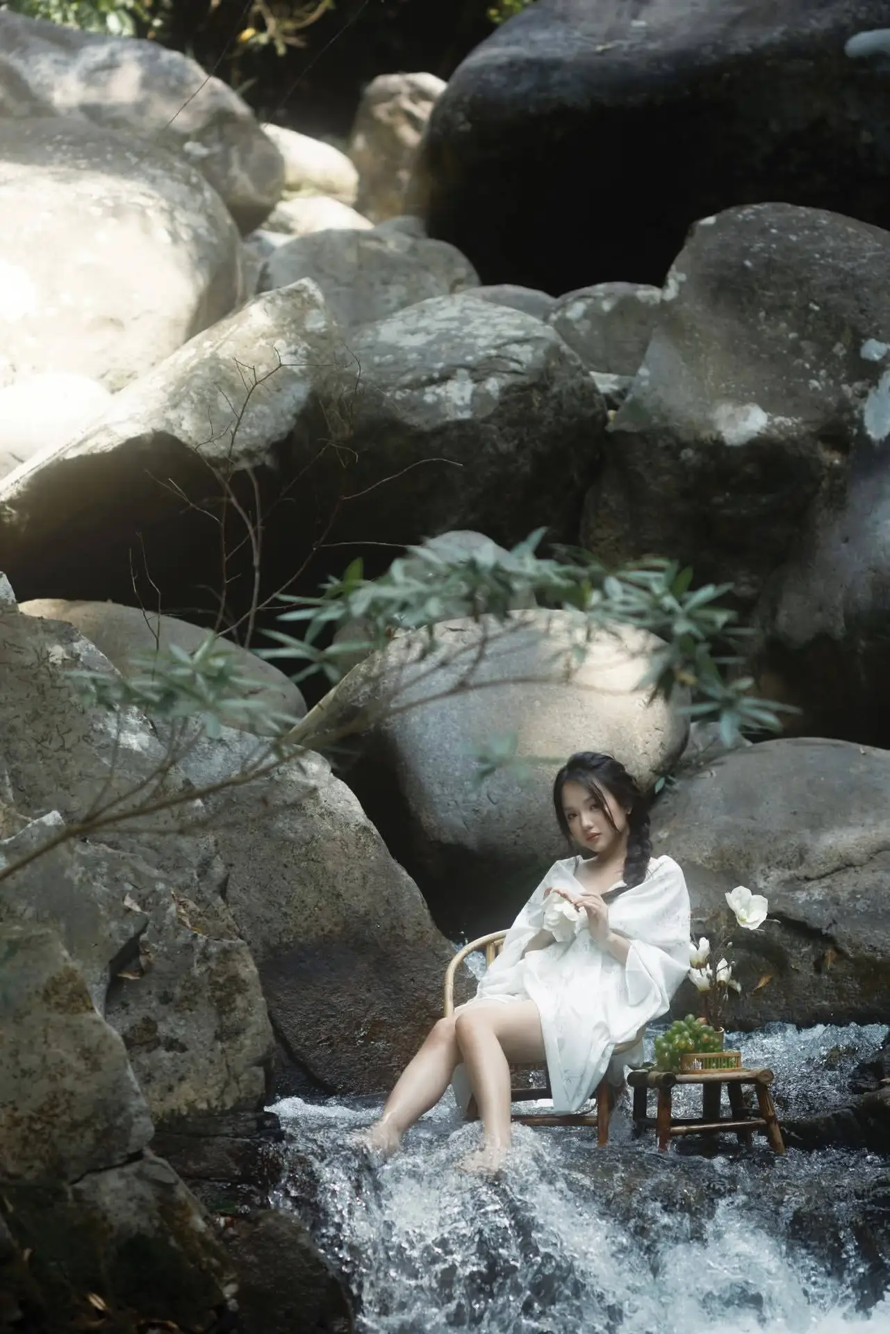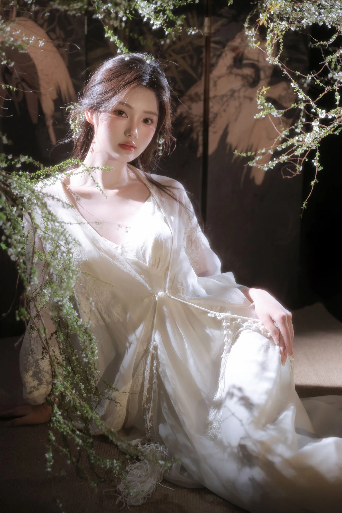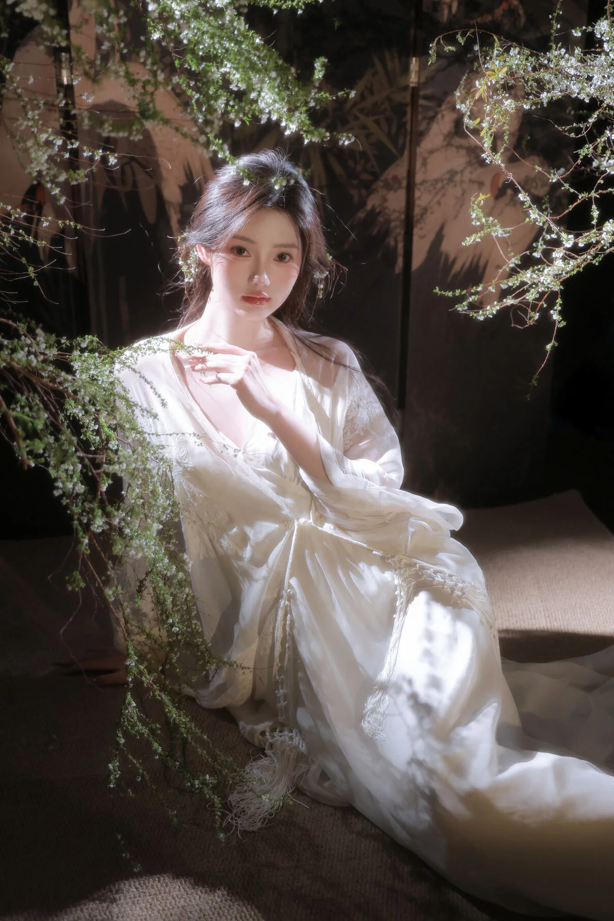 In the YiTuYu Vol.8827 collection model Jia Yi emerges as an otherworldly muse exuding pure and captivating beauty. She dons a flowing ivory-white dress its soft silk fabric embracing her figure creating an ethereal and refined elegance. Gentle light cleverly illuminates her highlighting her fair skin and dreamy aura. Every detail in the photograph speaks of meticulous artistry from her lustrous dark hair to her deep alluring gaze. The surrounding lush green foliage further enhances her natural charm allowing viewers to perceive a perfect harmony between art and humanity a tranquil moment filled with emotion.#JiaYi #EtherealMuse #PureBeauty #YiTuYu #ArtPhotography