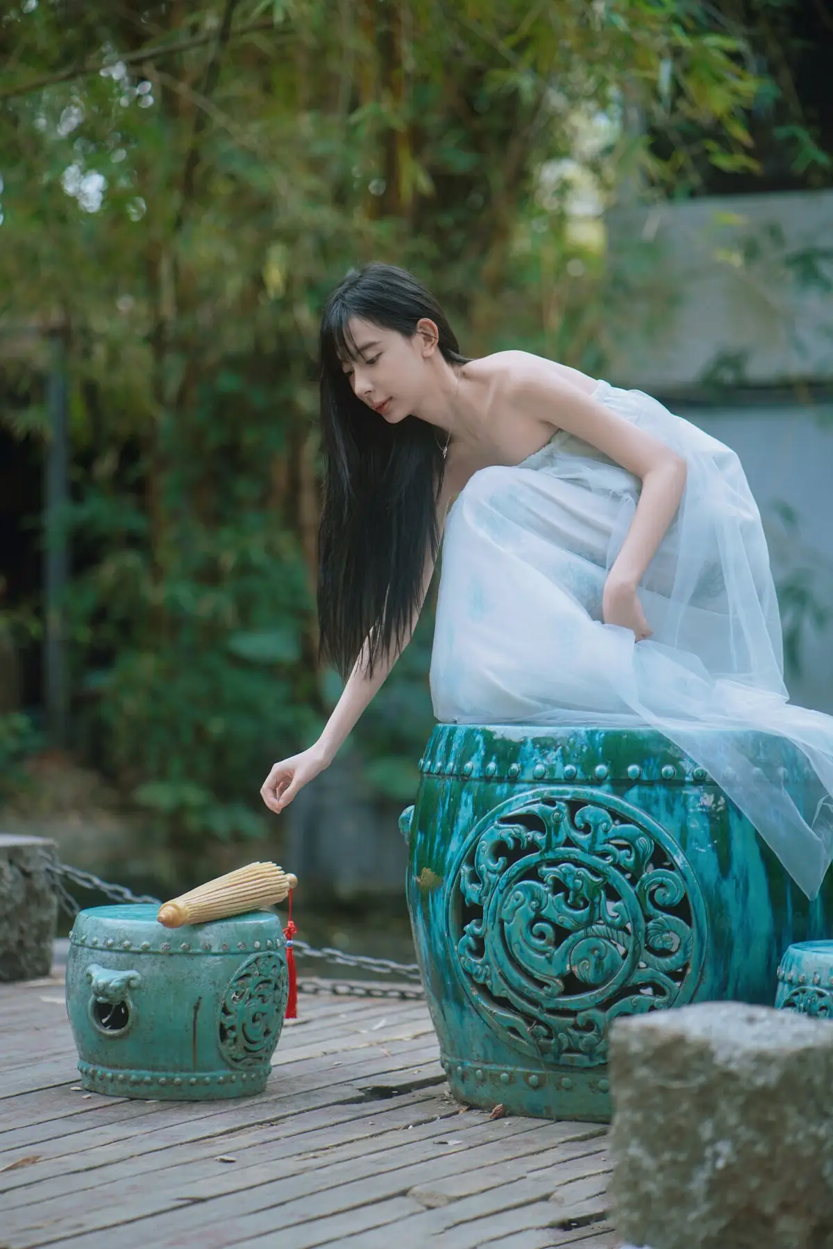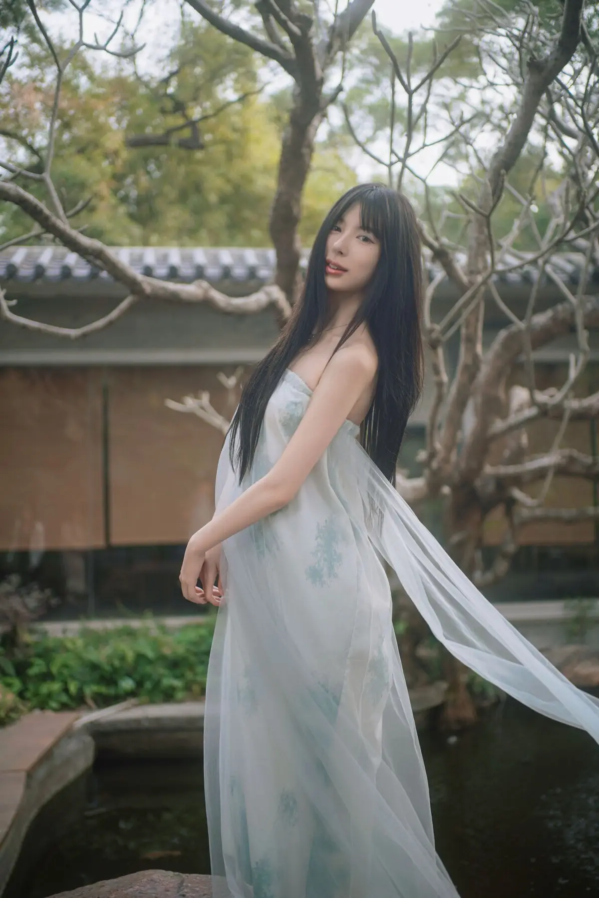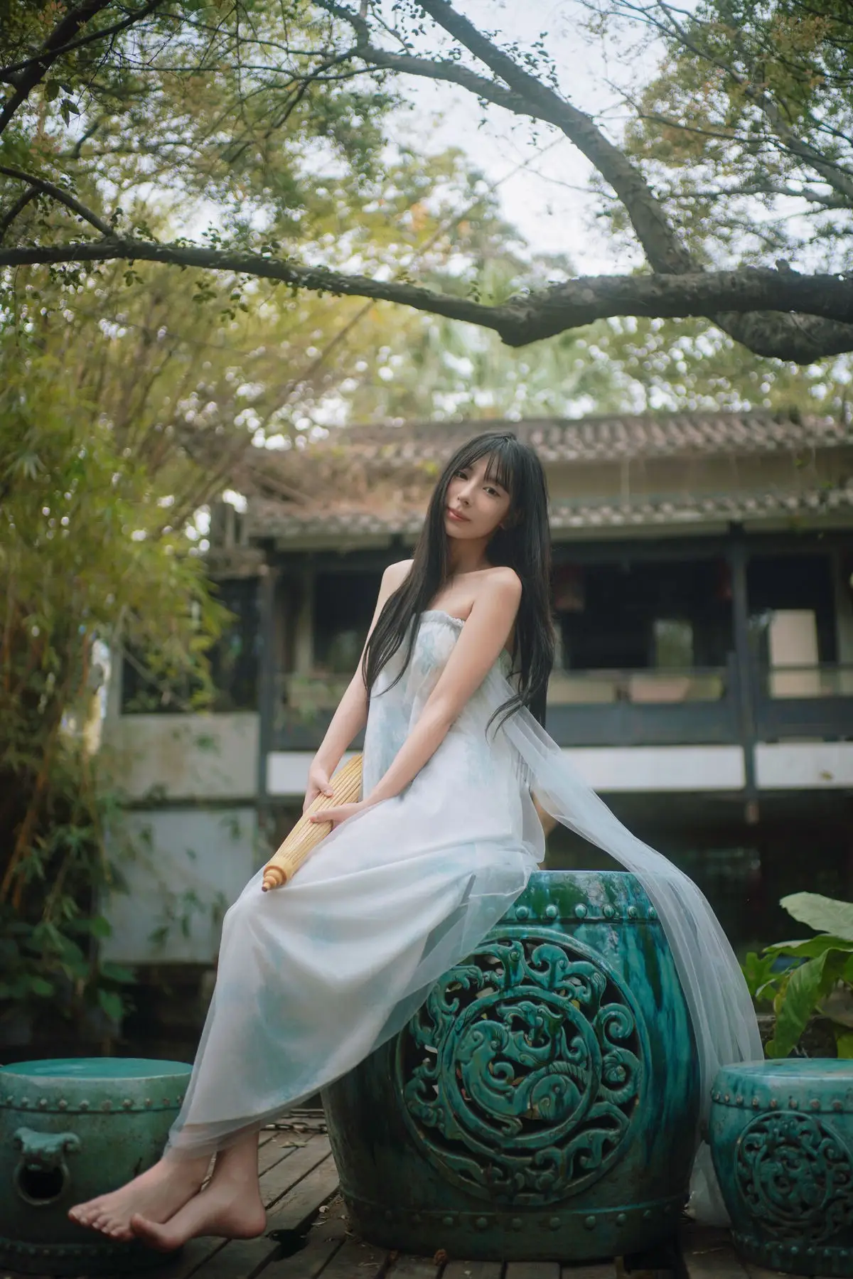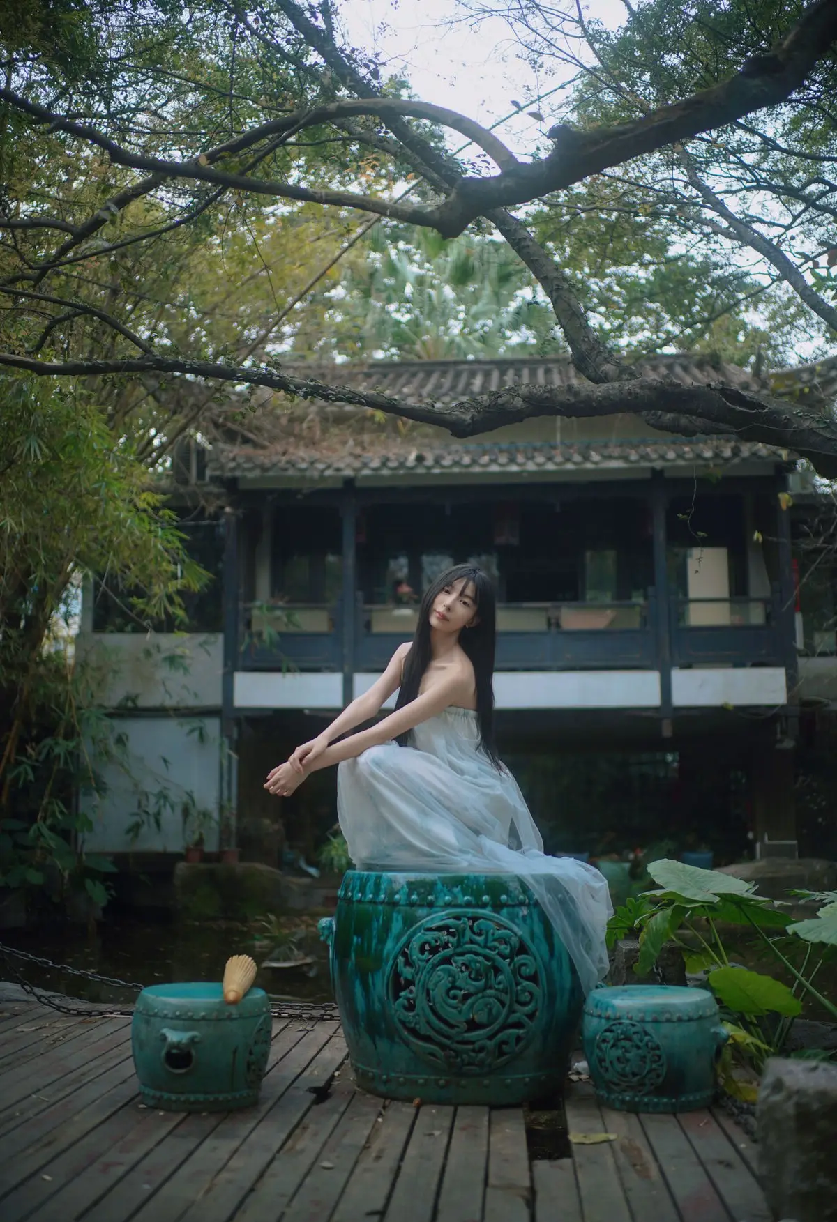 In the YiTuYu Vol.8827 collection model Jia Yi emerges as an otherworldly muse exuding pure and captivating beauty. She dons a flowing ivory-white dress its soft silk fabric embracing her figure creating an ethereal and refined elegance. Gentle light cleverly illuminates her highlighting her fair skin and dreamy aura. Every detail in the photograph speaks of meticulous artistry from her lustrous dark hair to her deep alluring gaze. The surrounding lush green foliage further enhances her natural charm allowing viewers to perceive a perfect harmony between art and humanity a tranquil moment filled with emotion.#JiaYi #EtherealMuse #PureBeauty #YiTuYu #ArtPhotography