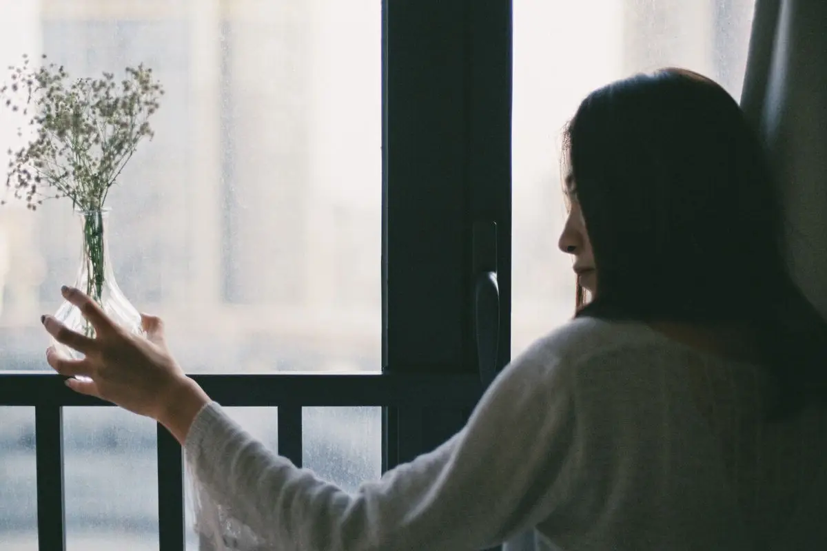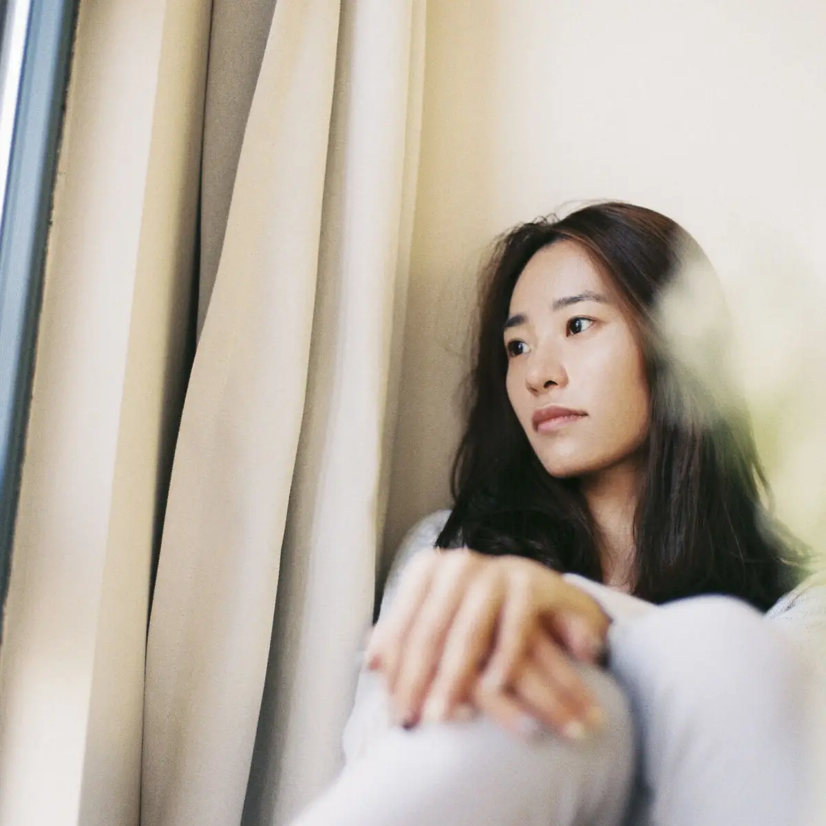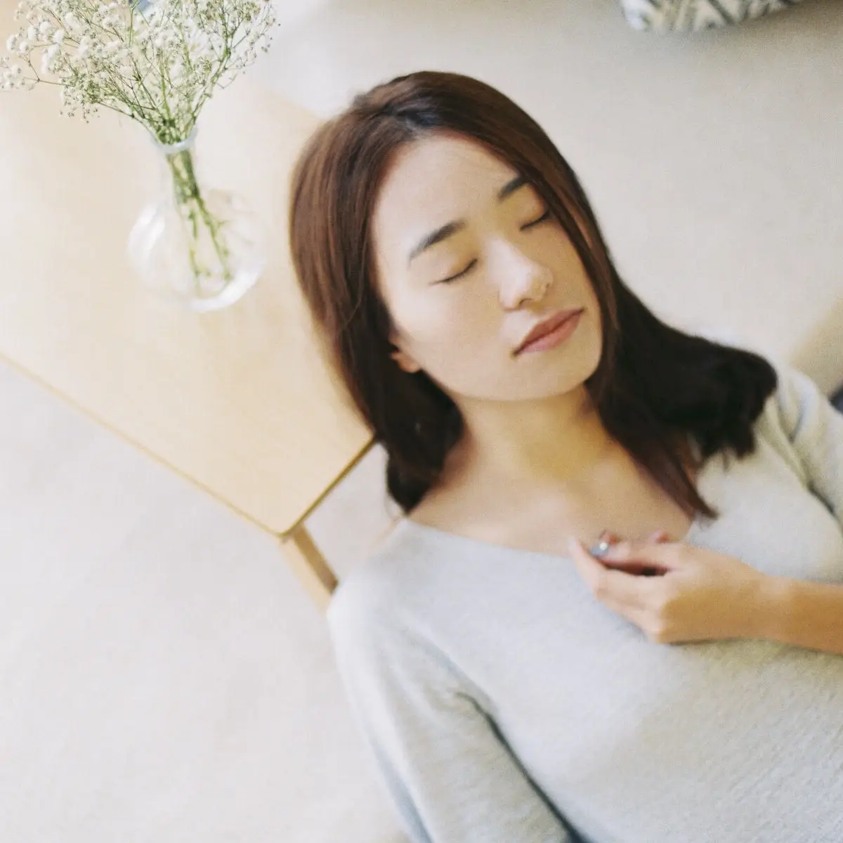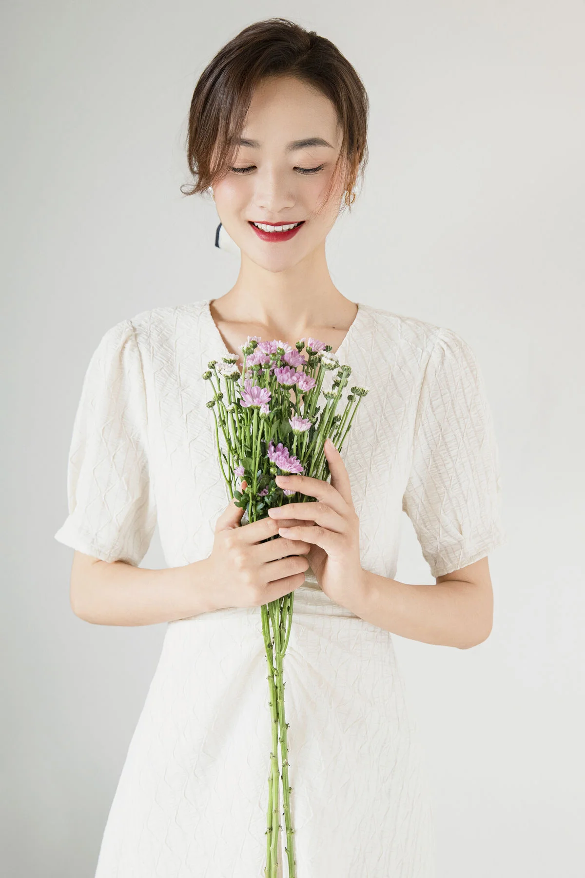 Serene Asian Beauty: A Delicate Moment with a White Flower