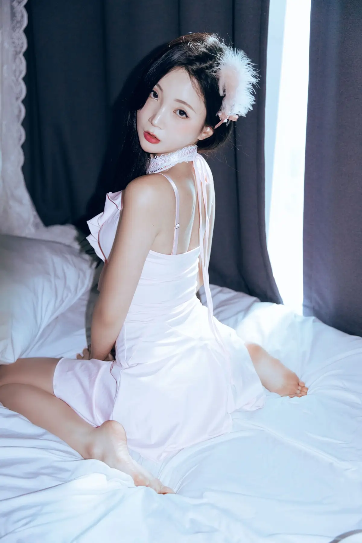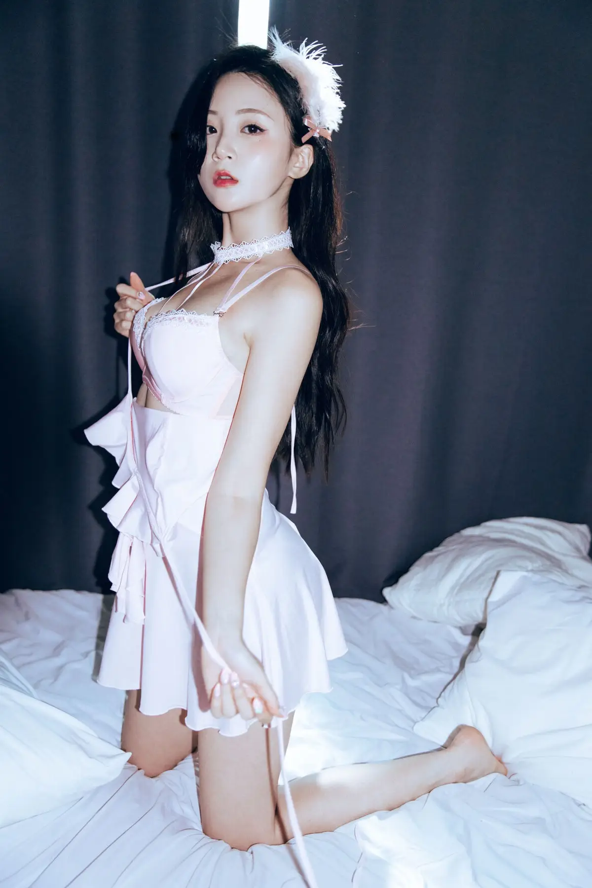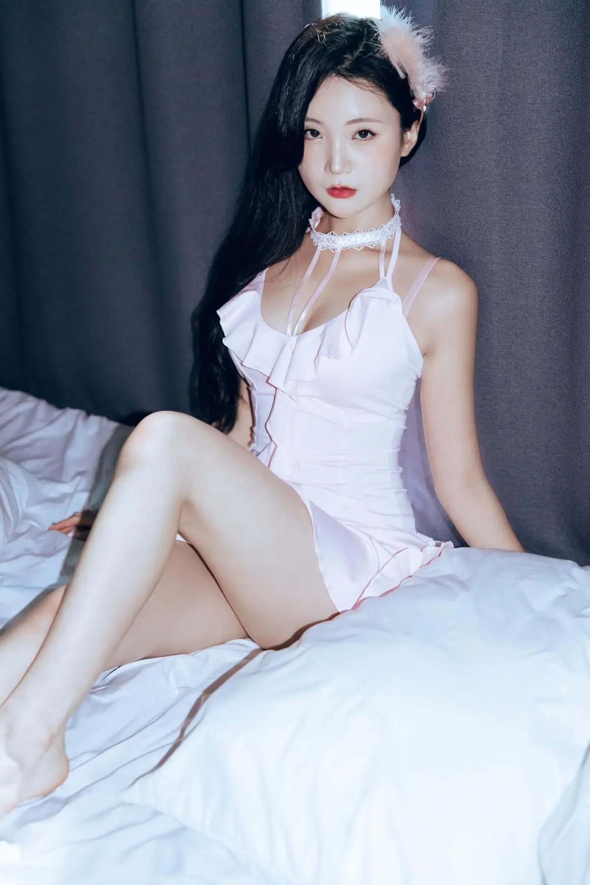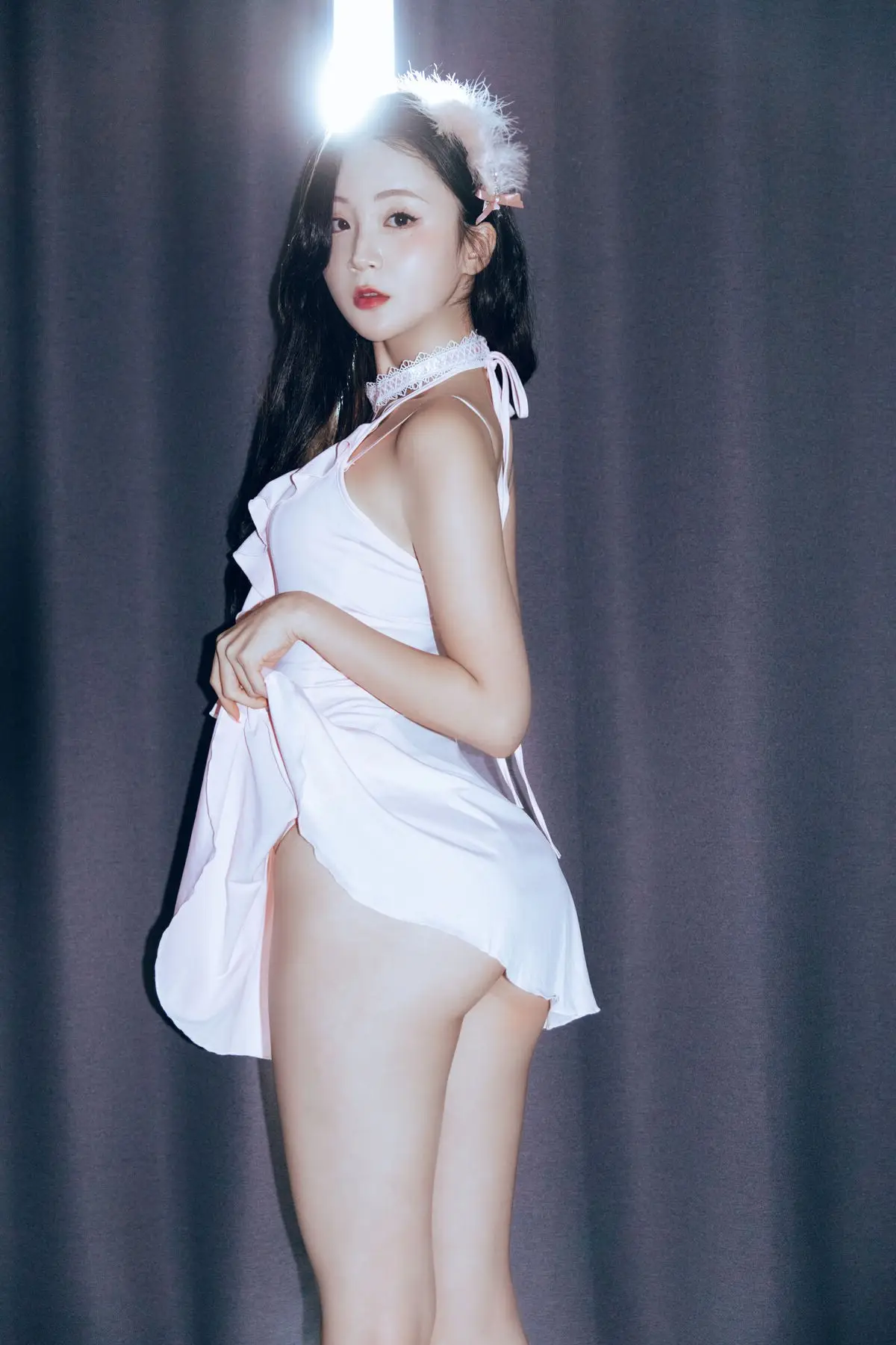 Hanseul captivates in her Black Swan photoshoot exuding an ethereal and pristine beauty. With her long flowing dark hair and a delicate light pink or white dress she embodies an angelic presence amidst a mysterious backdrop. The dramatic lighting creates a halo effect accentuating her refined features and captivating expression. This blend of innocence and confident enigmatic aura evokes the intriguing duality of a white swan harboring the allure of a black swan. This collection promises to enthrall viewers with Hanseul's graceful poise and captivating charm.#Hanseul #BlackSwan #AsianModel #PureBeauty #UniqueConcept