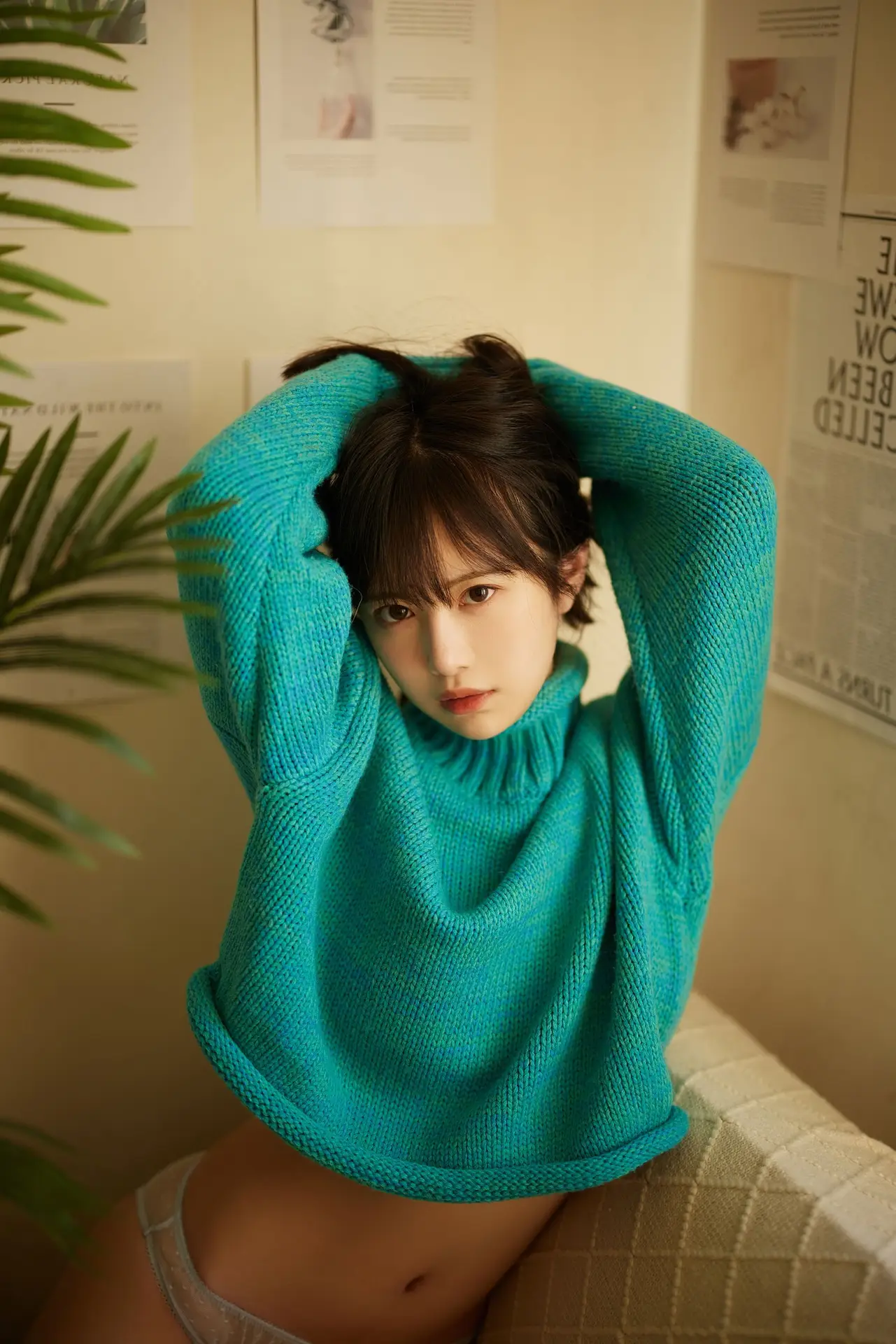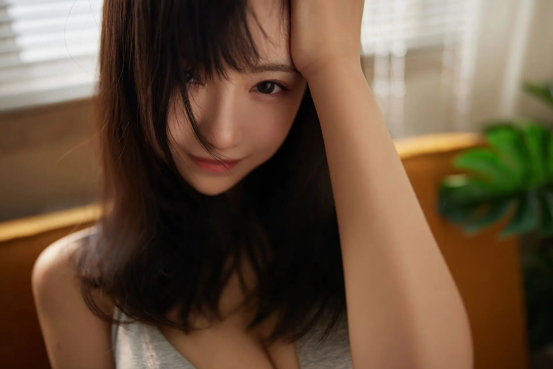 Captured in a moment of serene beauty, Miku Tanaka shines under the soft sunlight filtering through delicate window blinds. Dressed in a vibrant magenta bodysuit, she embodies a perfect blend of modern fashion and nostalgic charm reminiscent of a peaceful Japanese afternoon. Her pensive gaze and graceful posture create an artistic atmosphere that resonates with peace and intimacy. The cinematic interplay between light and shadow adds a profound depth to the frame, highlighting the fine textures and her natural allure. Miku Tanaka has always been celebrated for her versatile aura, and here she masterfully balances maturity with a sense of innocent wonder. This visual story is more than just a portrait; it is an exploration of femininity and the quiet strength found in moments of reflection. It invites the audience to slow down and appreciate the delicate harmony of color, light, and emotion in contemporary photography.#MikuTanaka #FashionPortrait #CinematicLighting #JapaneseStyle #PureBeauty