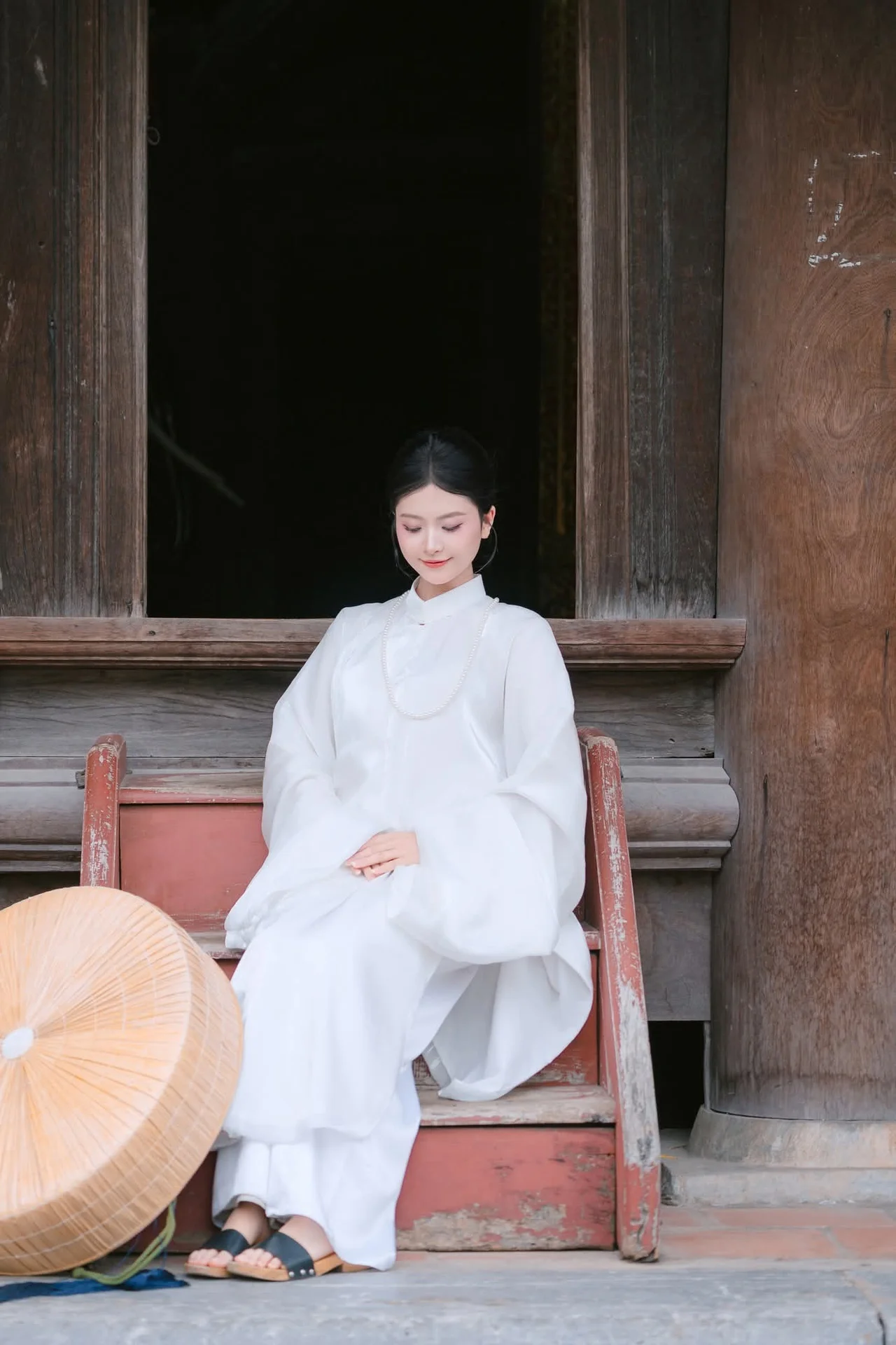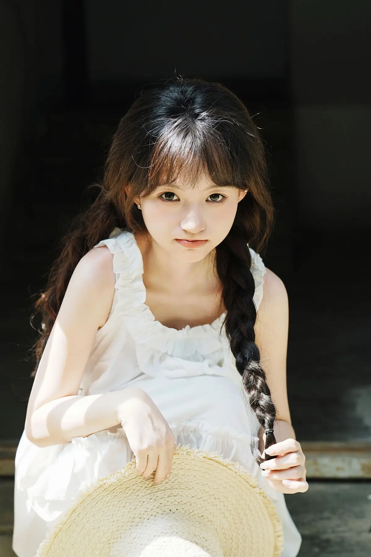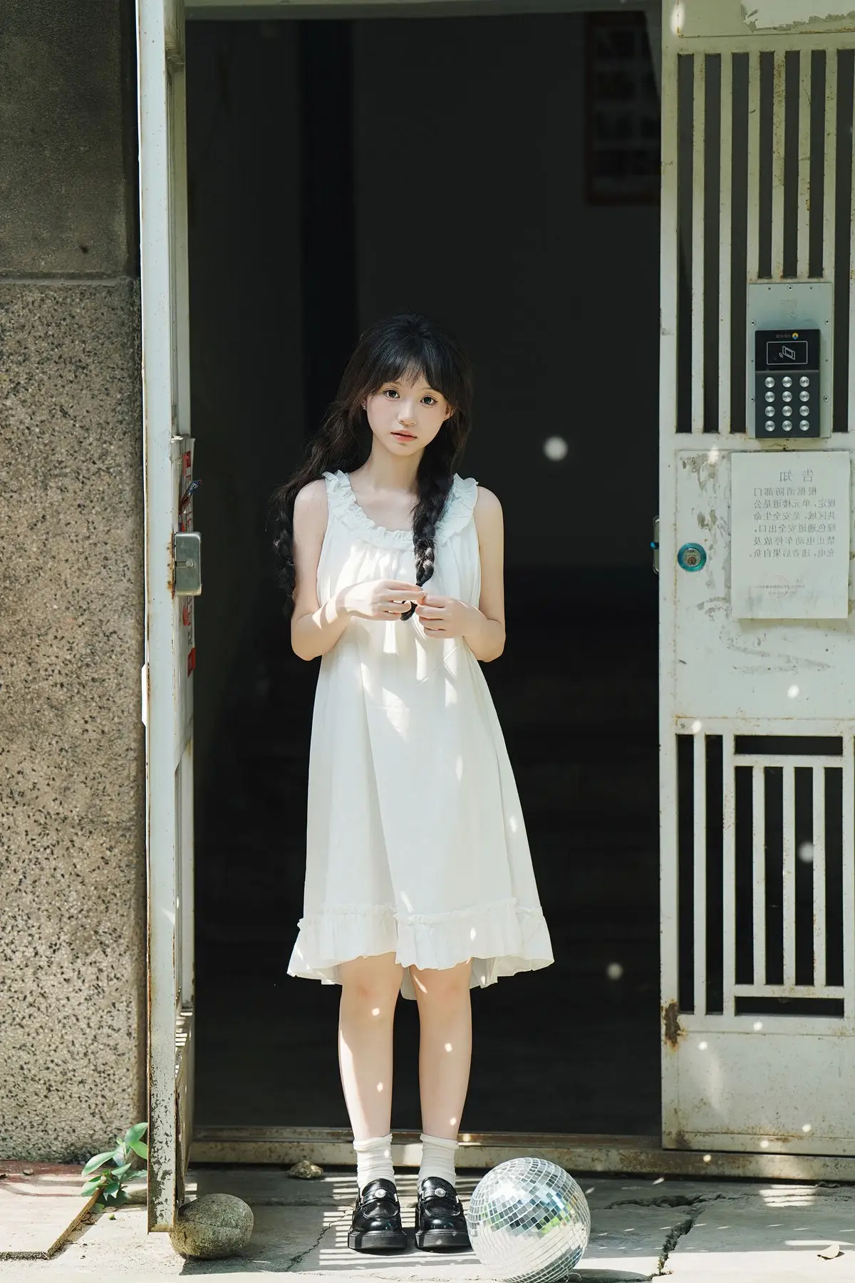 This image captures a serene moment of Qi E Luo Bo Guai a model featured in the YiTuYu Vol.8726 collection She stands gracefully within an ancient doorway bathed in soft morning light that embraces her figure in a pristine white dress The rustic straw hat and her gentle gaze create a pure nostalgic beauty evoking memories of tranquil summer days The simple yet vibrant scenery of an old community is beautifully portrayed through this muses image It tells a story of peace and natural charm unpretentious yet captivating#QiELuoBoGuai #YiTuYu #PureBeauty #RusticCharm #AsianModel