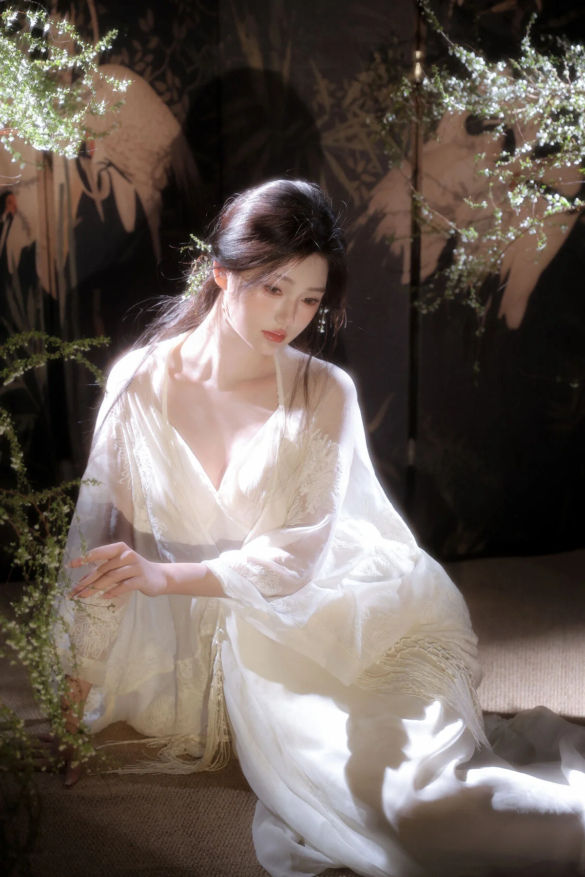 YiTuYu Vol.8699: Xiao Jing's Serene Beauty with Baby's Breath – A Glimpse into Tranquil Moments