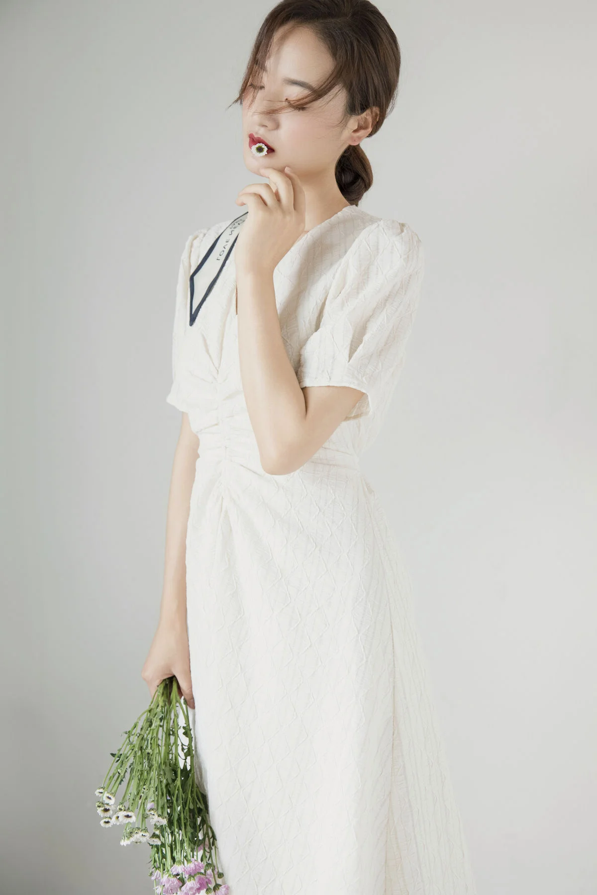 Discover the graceful allure of Zhou Xu Xu in this captivating YiTuYu Vol.8758 photoshoot. Model Zhou Xu Xu radiates gentle charm, showcasing a radiant smile and clear, serene eyes that embody pure elegance. Dressed in a simple yet refined cream-colored dress, she delicately holds a small, exquisite bouquet of blooming flowers, enhancing her natural and fresh beauty. The petite bouquet, with its blossoming florets, symbolizes vitality and subtle grace. The entire image conveys a moment of tranquility, rich in emotion and ethereal charm. Zhou Xu Xu presents a soft, captivating presence, leaving a lasting impression of understated beauty that shines brightly.#ZhouXuXu #YiTuYu #PureBeauty #ModelWithFlowers #ElegantStyle