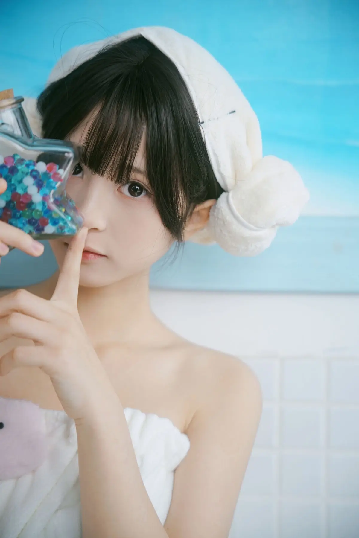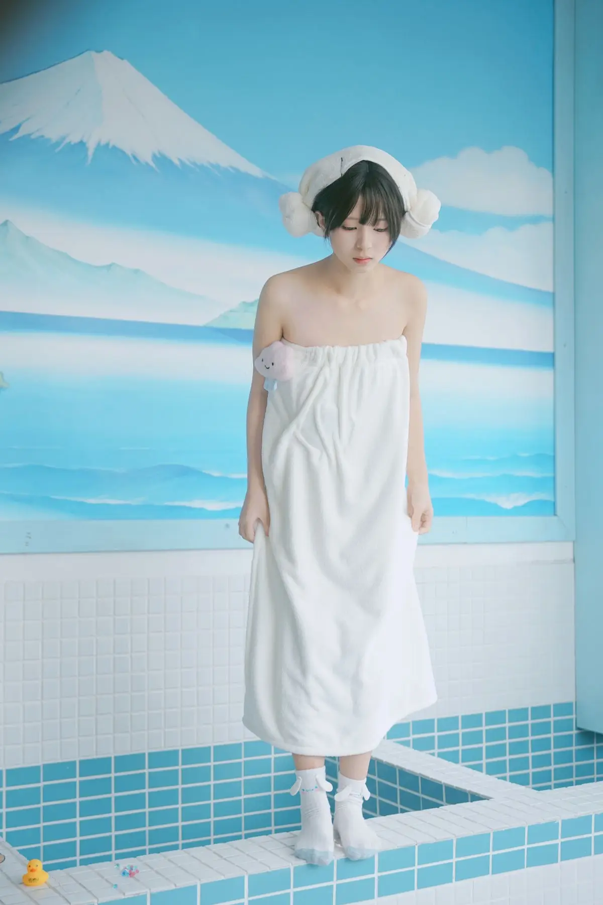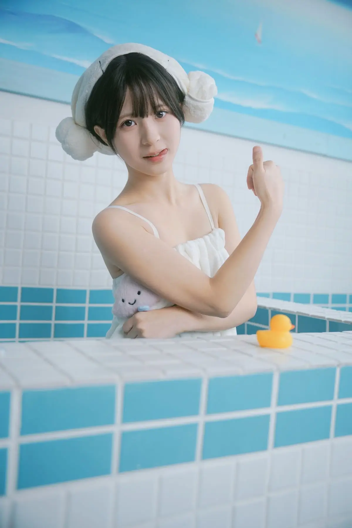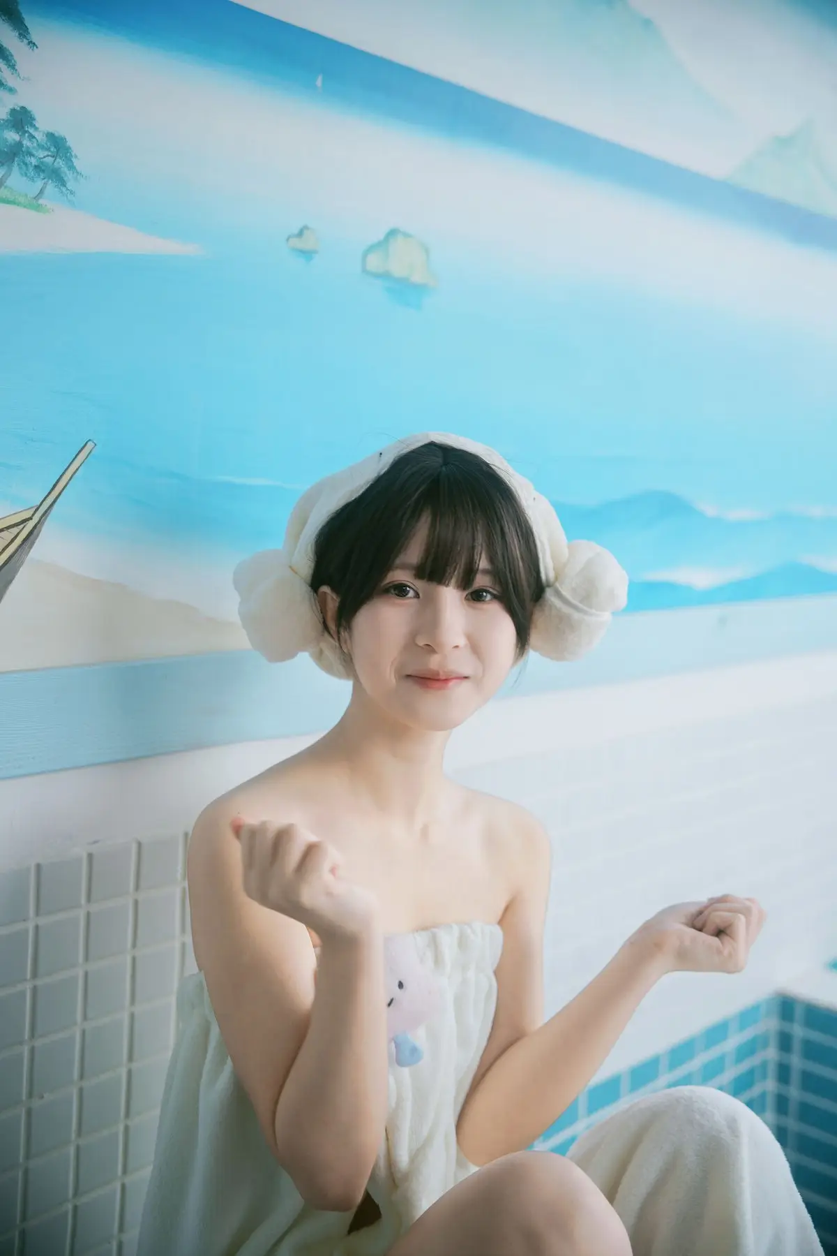 This exquisite photo captures model Xiao Yu from the YiTuYu Vol.8554 collection, embodying a moment of serene purity and natural beauty. Set against the soft blue tones reminiscent of a traditional Japanese bathhouse, Xiao Yu is elegantly draped in a crisp white towel, exuding a fresh and relaxed aura. Her gentle, slightly pensive gaze invites viewers to appreciate the delicate charm and peaceful aftermath of a warm bath. From her neatly towel-wrapped hair to her smooth skin, every detail speaks of rejuvenation and tranquility. This image, a highlight of YiTuYu's artistic vision, tells a story of serenity and inner beauty. Discover more captivating moments featuring Xiao Yu in this exclusive series.#XiaoYu #YiTuYu #PureBeauty #JapaneseBathhouse #RelaxingVibes