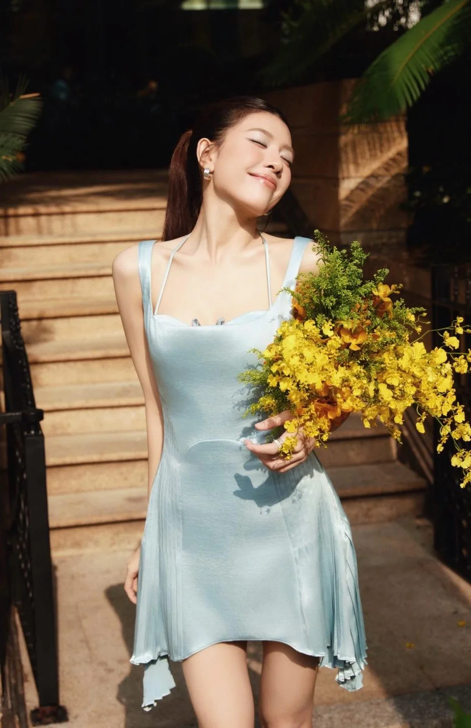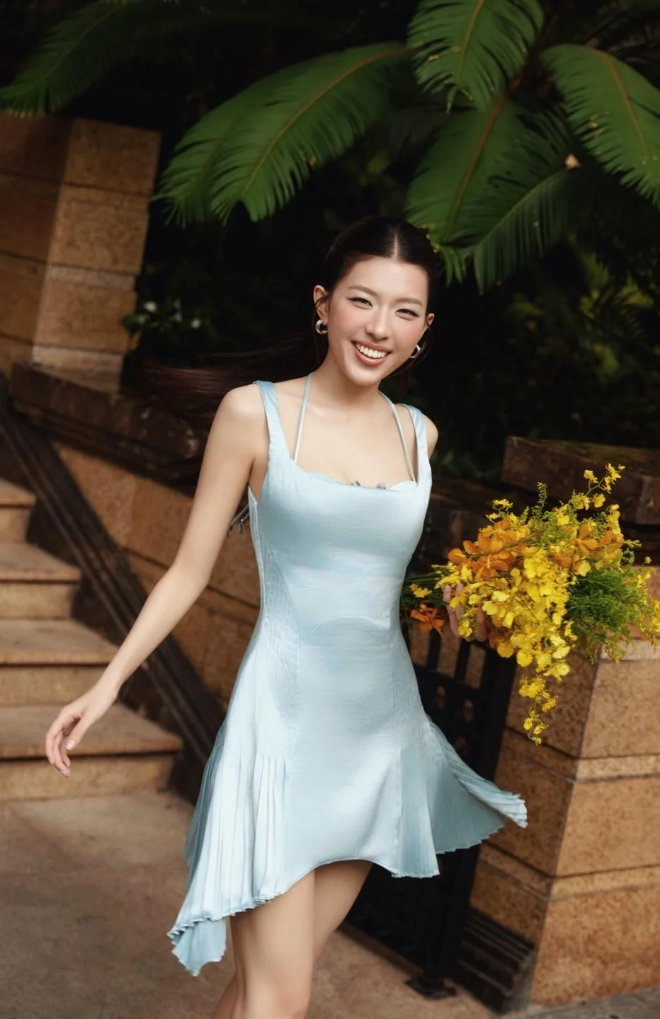 LAMOON radiates as she appears in a space bathed in golden sunlight bringing forth a pure beauty and an unusually captivating aura Her gentle pastel blue dress paired with a vibrant yellow bouquet in hand highlights her pristine charm and graceful figure A bright smile and sparkling eyes convey a confident and vibrant charisma Amidst the beautiful natural scenery LAMOON not only showcases her beauty but also exudes the unique essence of a talented star The perfect combination of sunlight floral hues and her natural elegance creates a truly gentle enchanting and emotional feeling leaving anyone who beholds her captivated#LAMOON #PureBeauty #CaptivatingCharisma #VietnameseBeauty #LightBlueDress